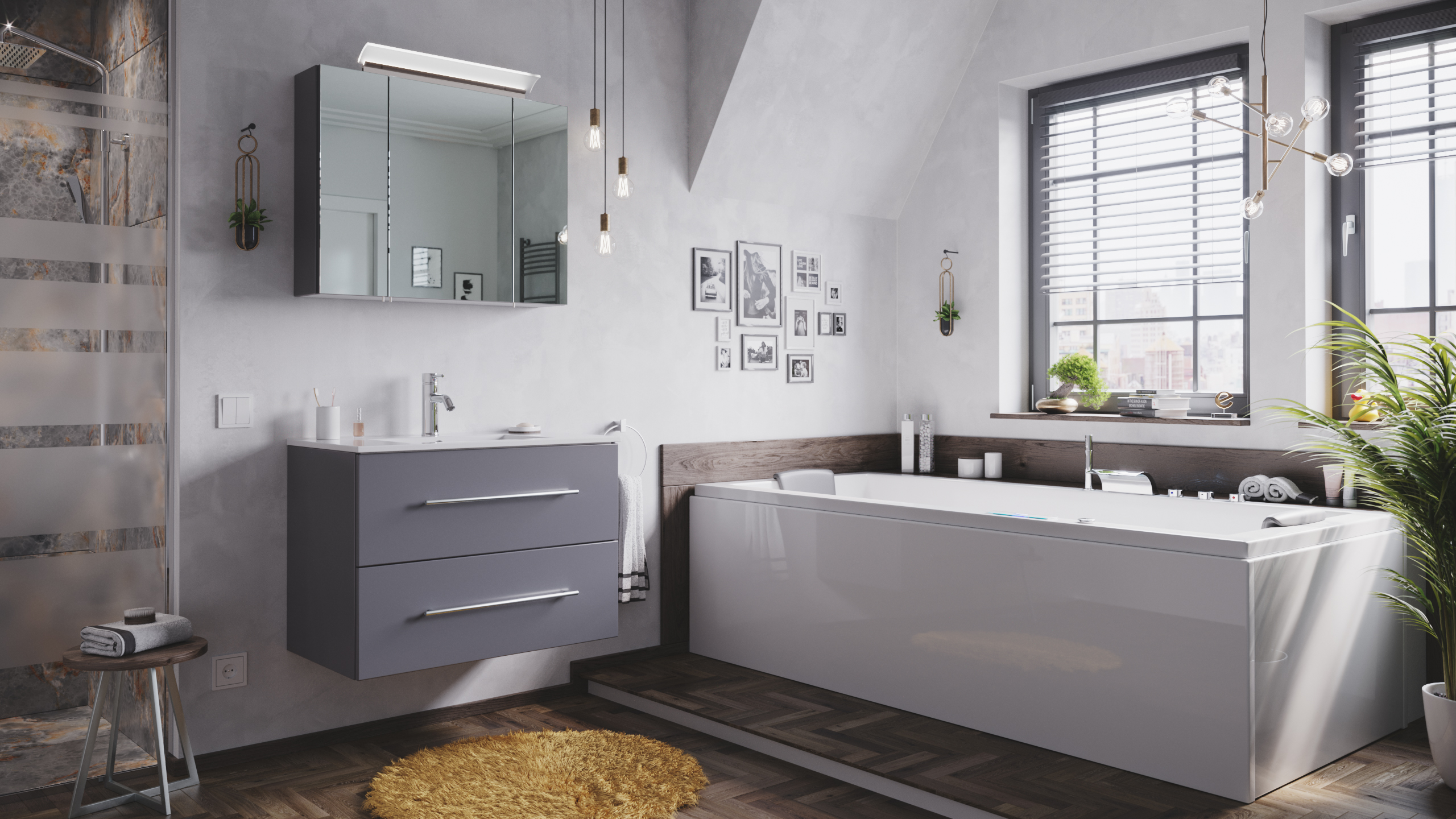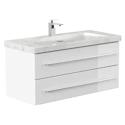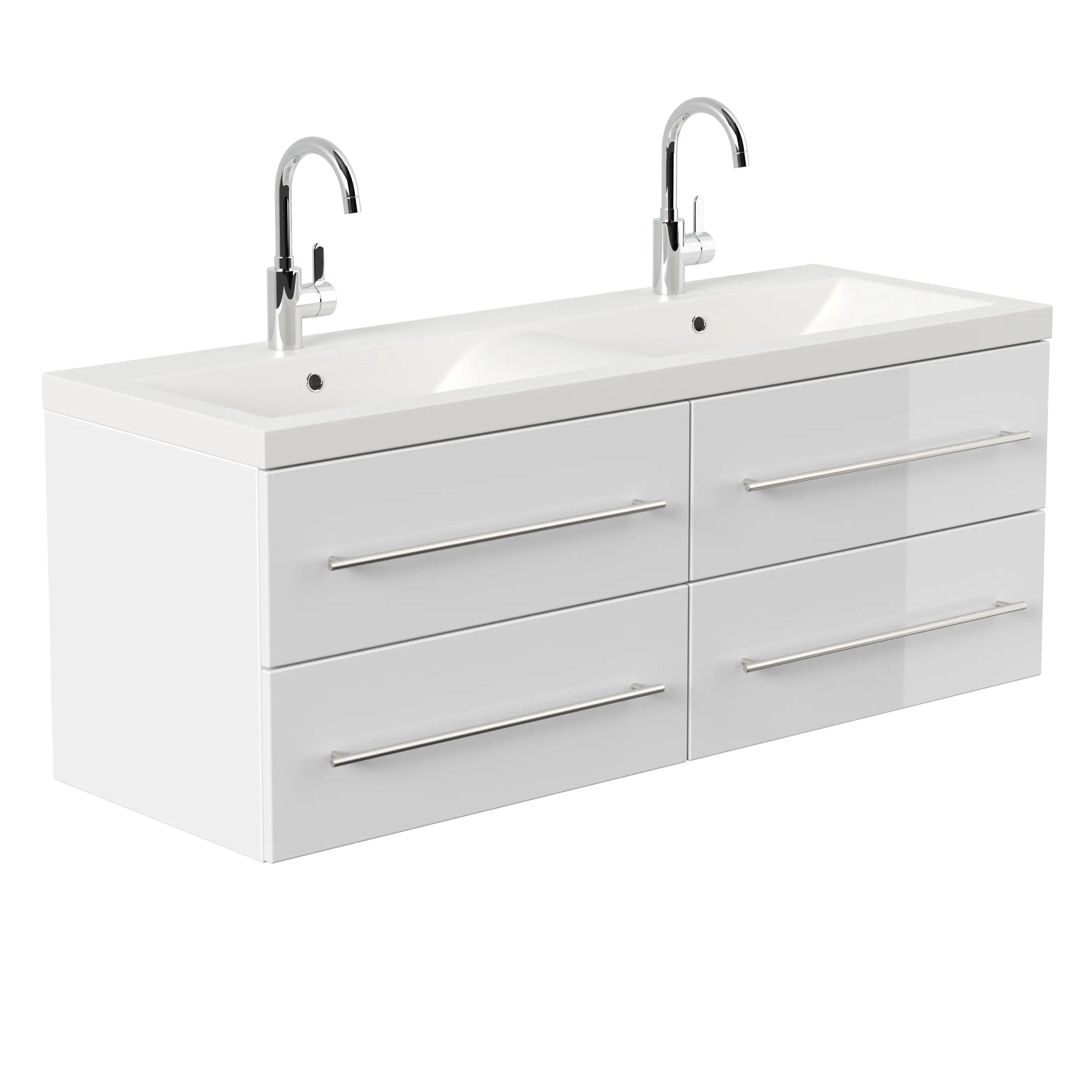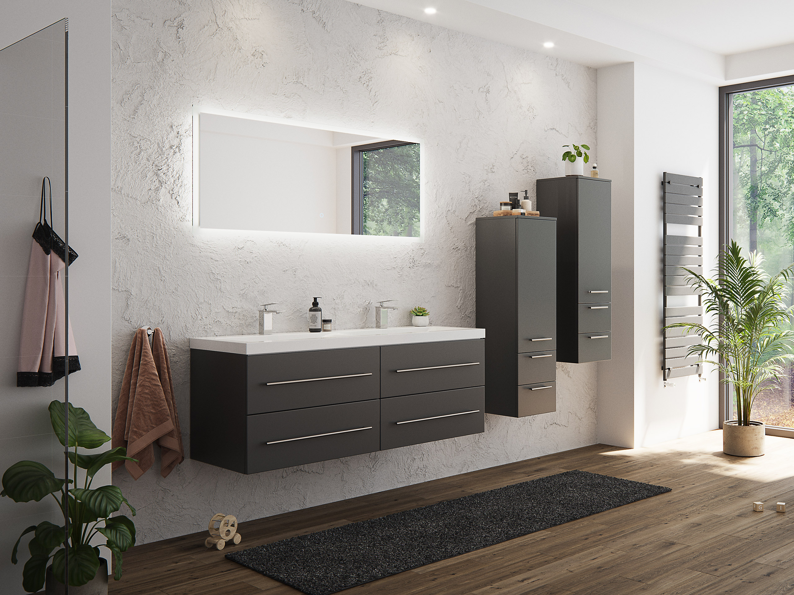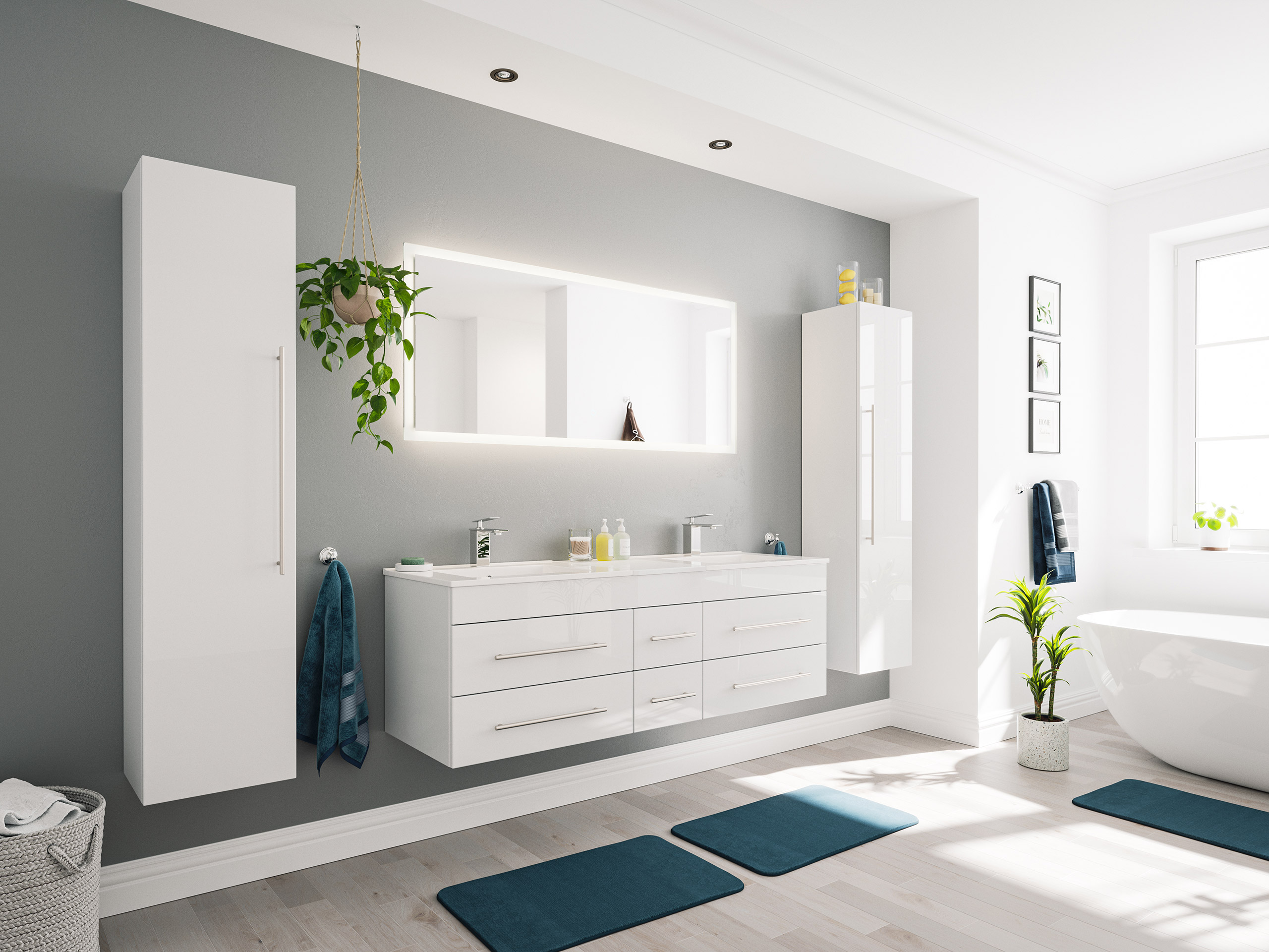 Badmöbelset Komplett Roma XL 4-teilig inkl. LED-Spiegel weiss hochglanz