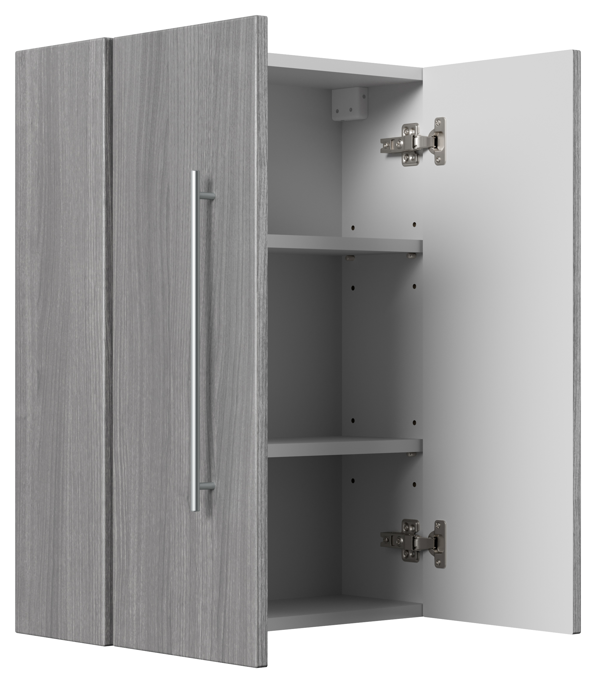 Badschrank mit Softclose-Tür/en, Regalböden, Edelstahl-Griffe.Montage-Empfehlung: