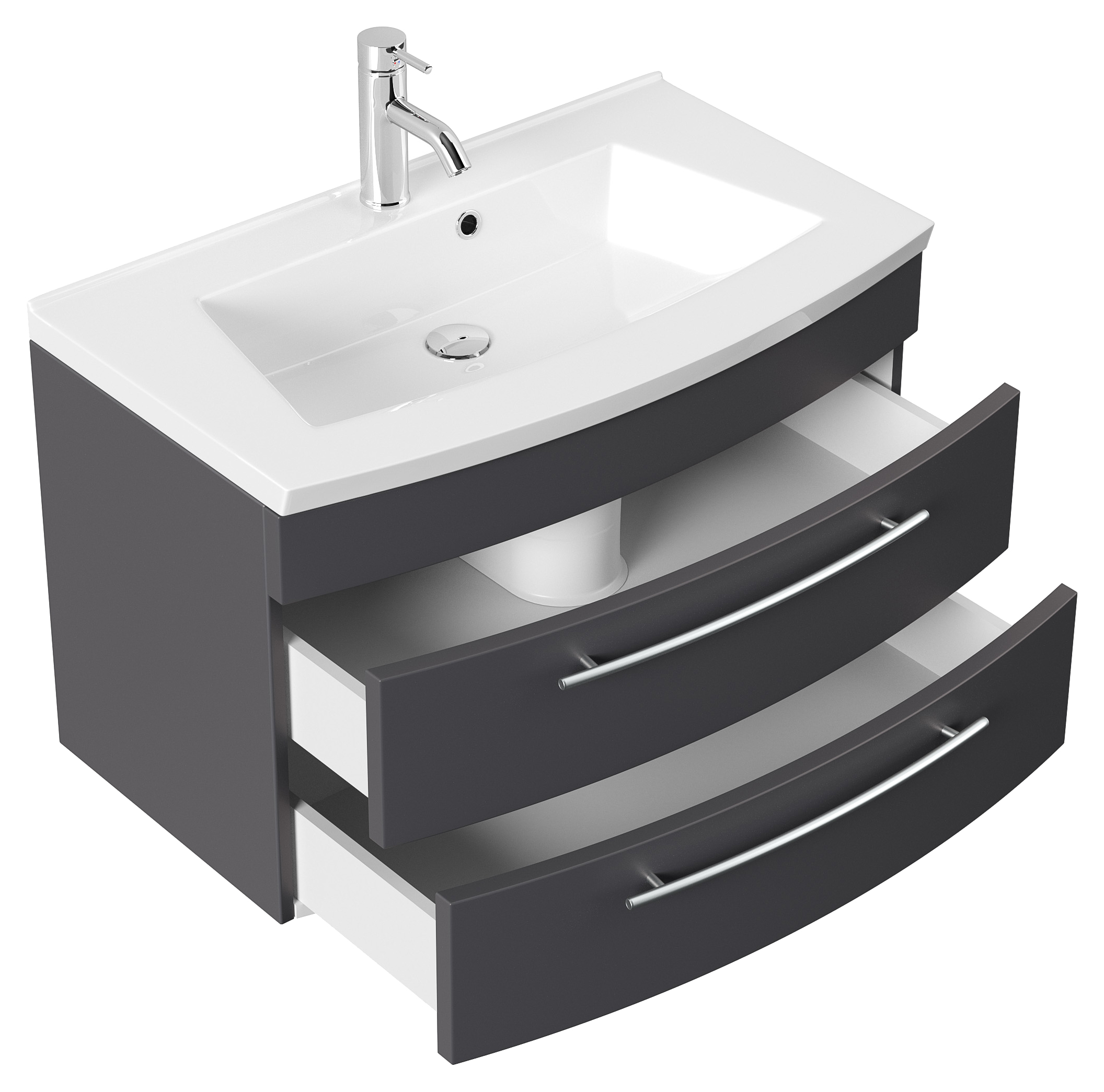Badmöbel Bella 80 mit runder Front SoftClose anthrazit LED Spiegel