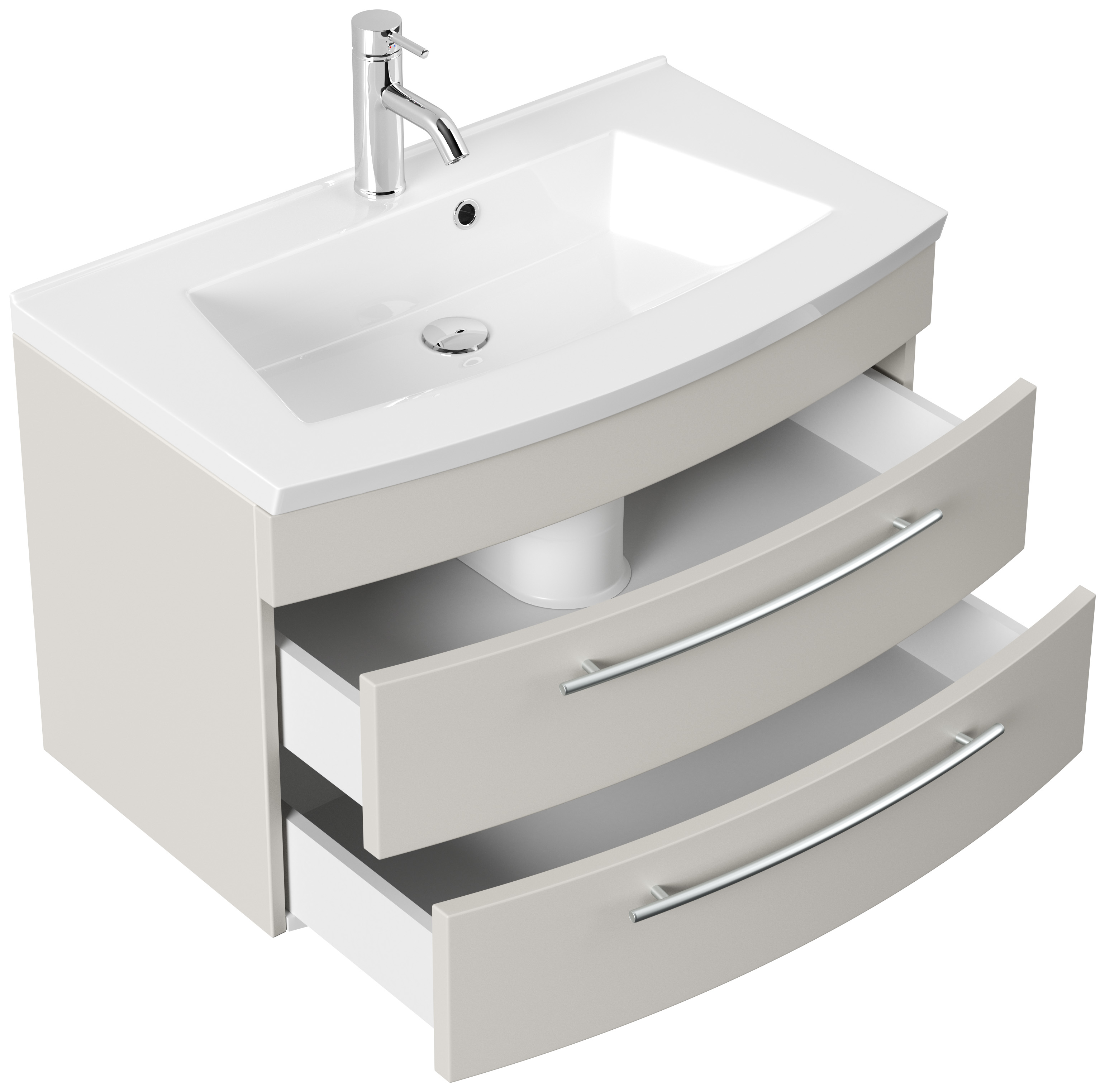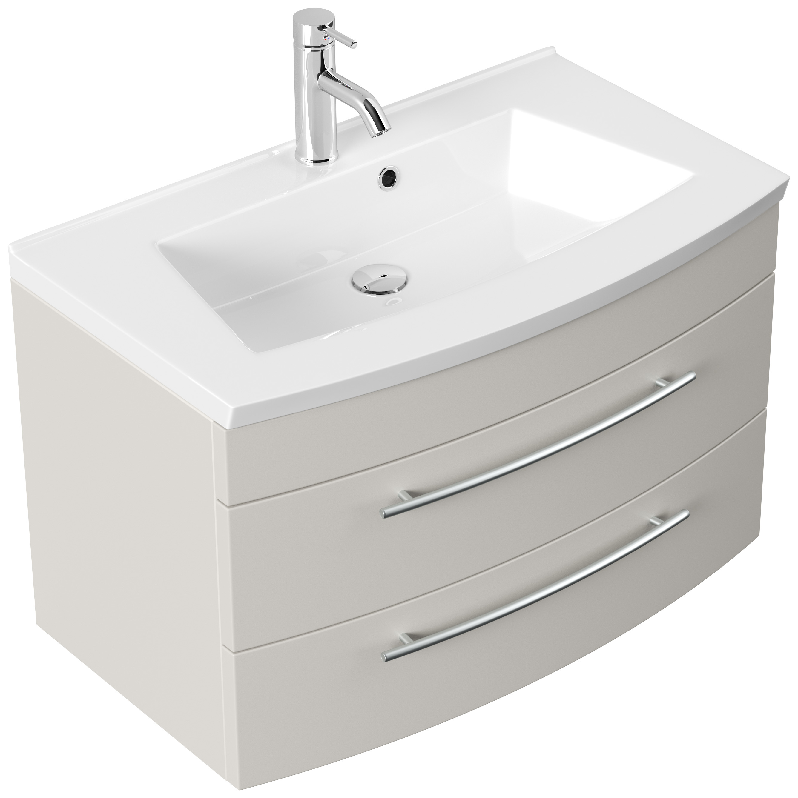 Badmöbel Bella 80 mit runder Front SoftClose lackiert kaschmir matt LED Spiegel