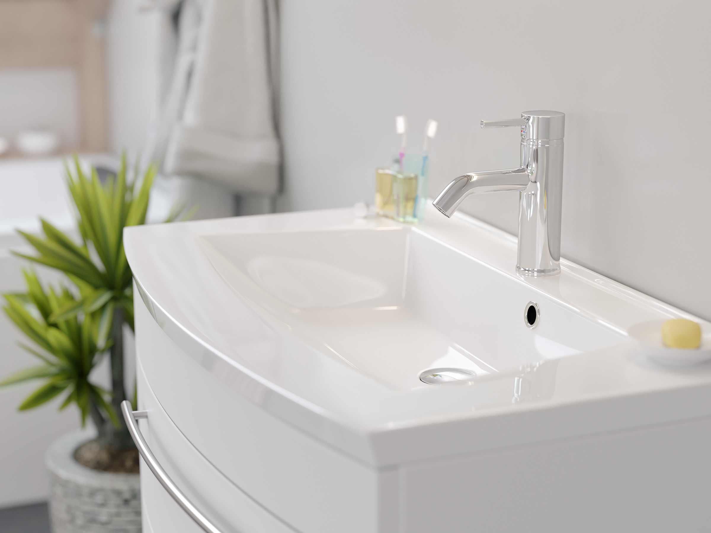 Ein herausragendes Qualitätsmerkmal unserer Badmöbel sind die hervorragend verarbeiteten Oberflächen. Die Beschichtung ist - sowohl über die Frontseite, als auch über die sichtbaren Seitenteile - über die Kanten und Ecken tiefgezogen und weich abgerundet.