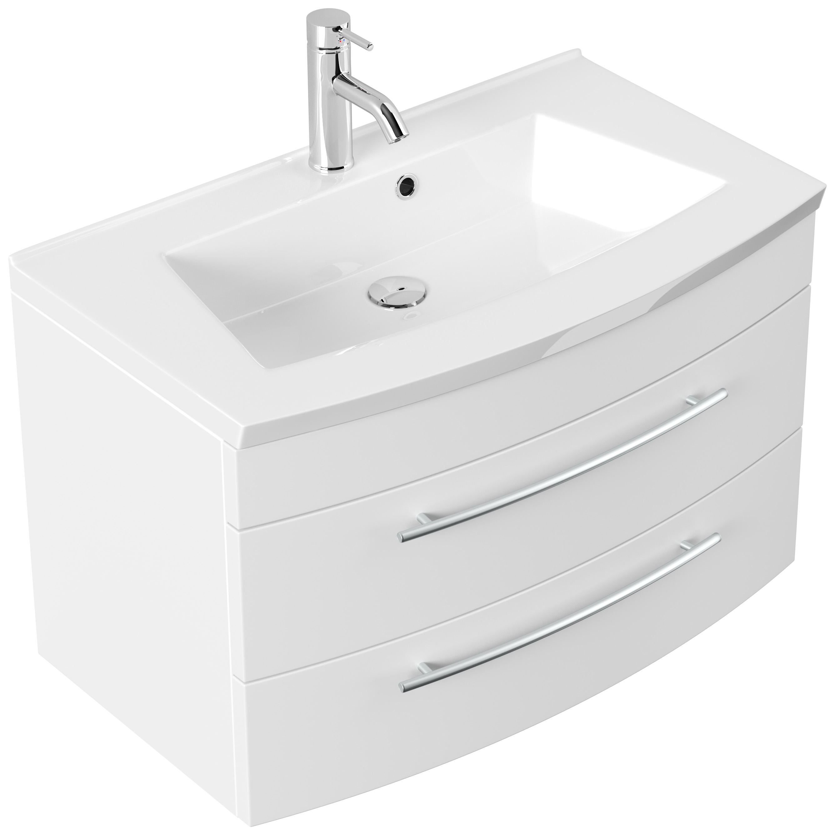 Badmöbel Bella 80 mit runder Front SoftClose lackiert weiss matt LED Spiegel