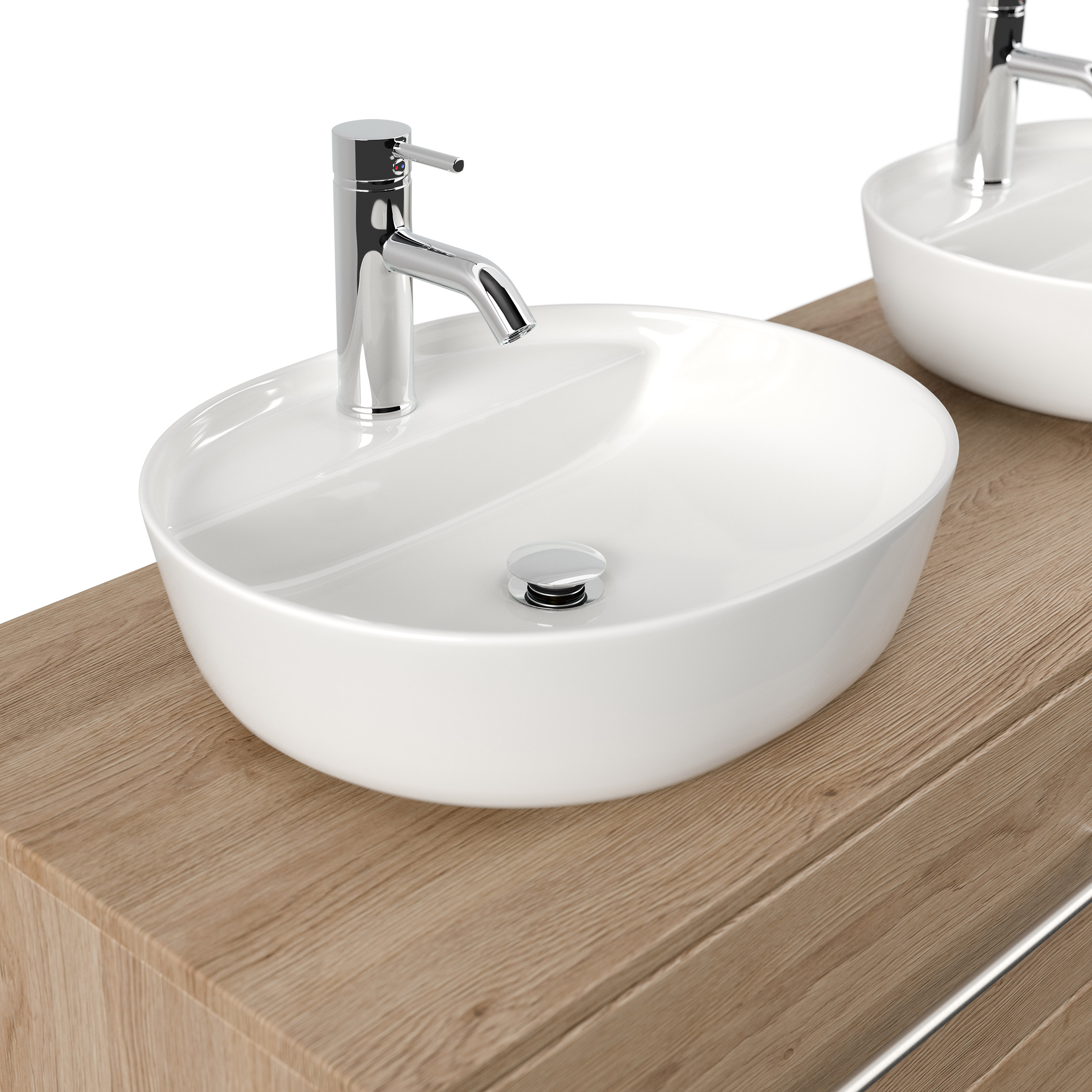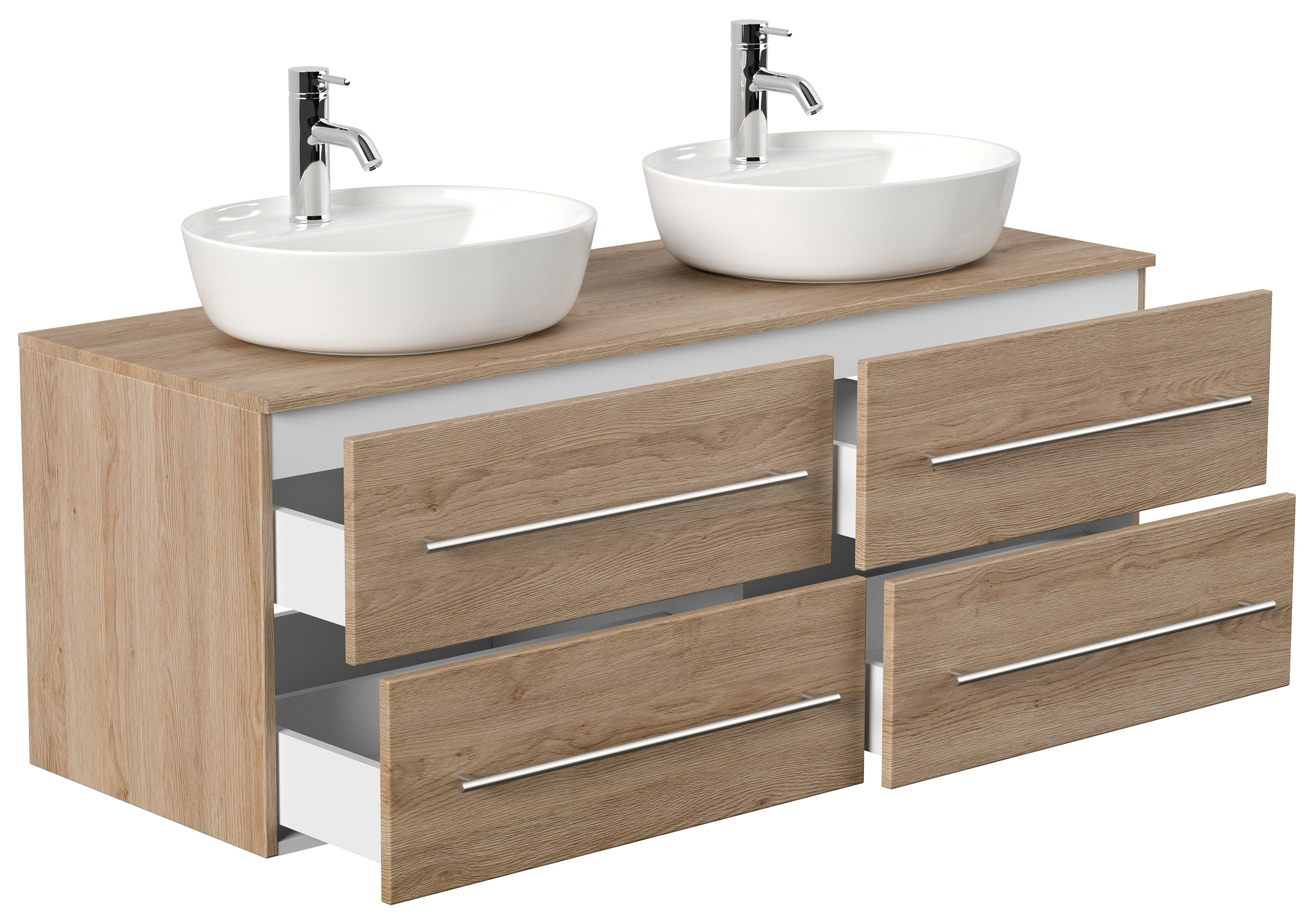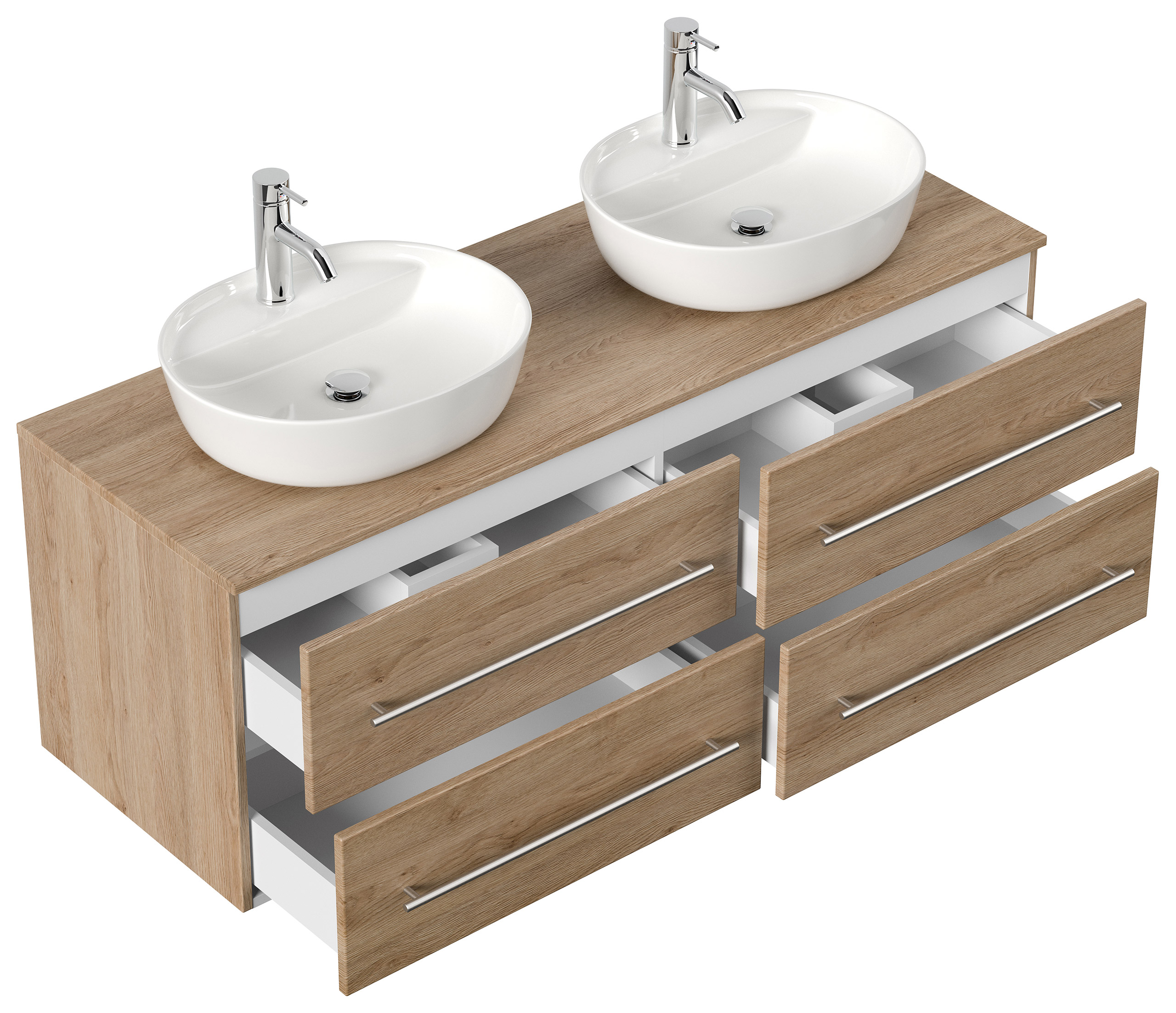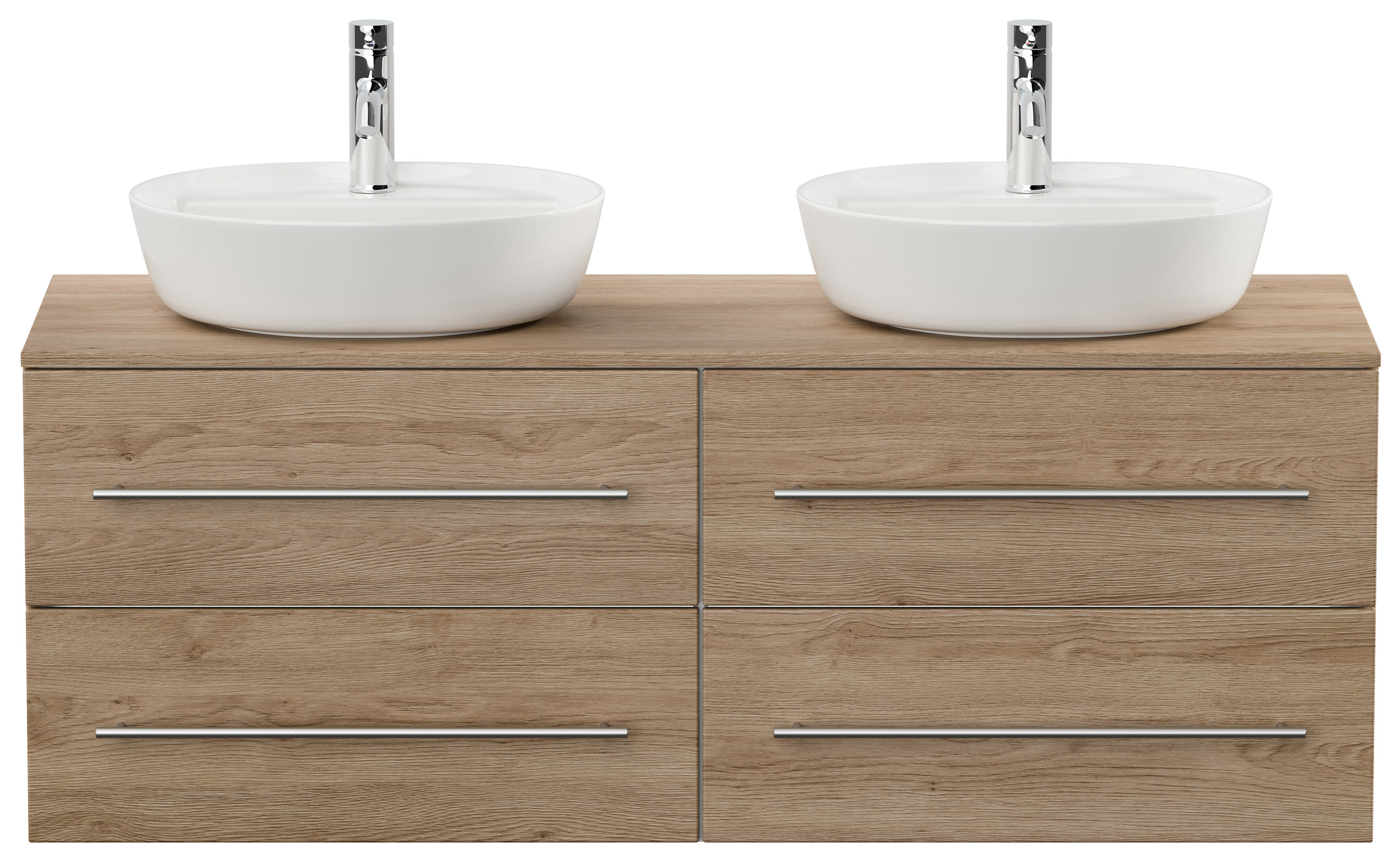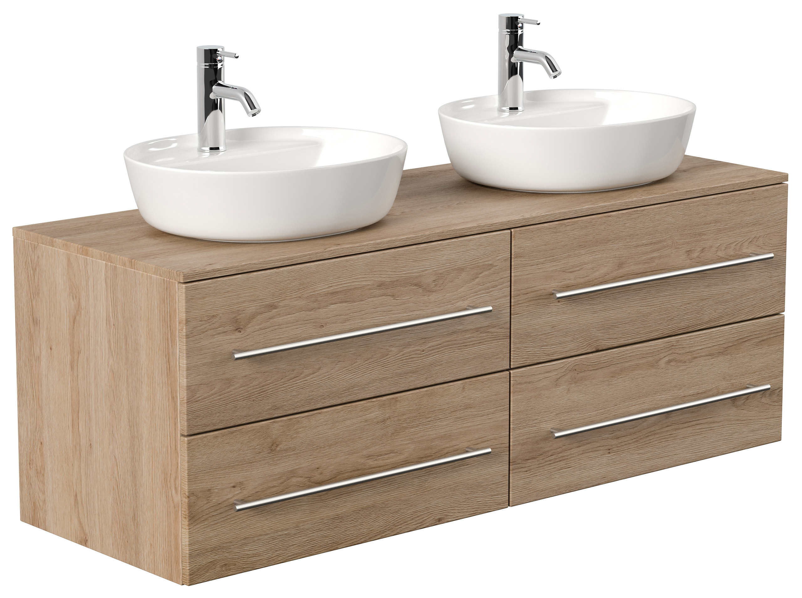 Badmöbel CHARLIE B 143cm mit zwei Aufsatzwaschbecken eiche hell