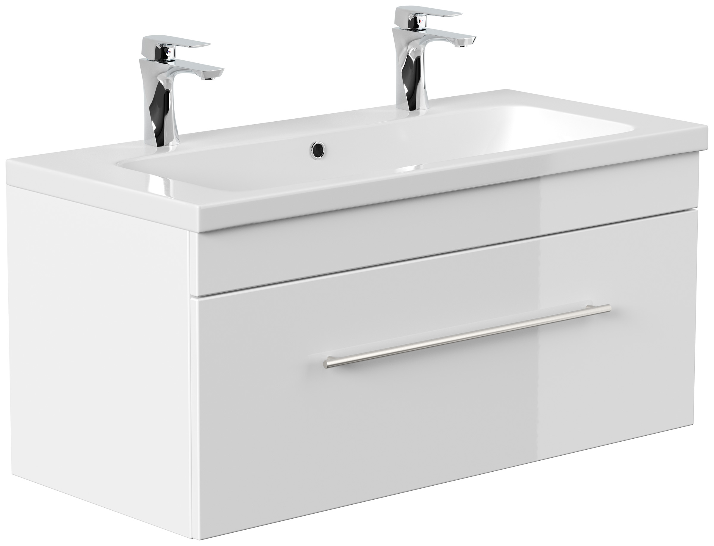 Badmöbel Diora 100cm Doppelbadmöbel Softclose weiss hochglanz