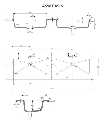 - 1 Mineralguss-Waschbecken Doppelwaschtisch.