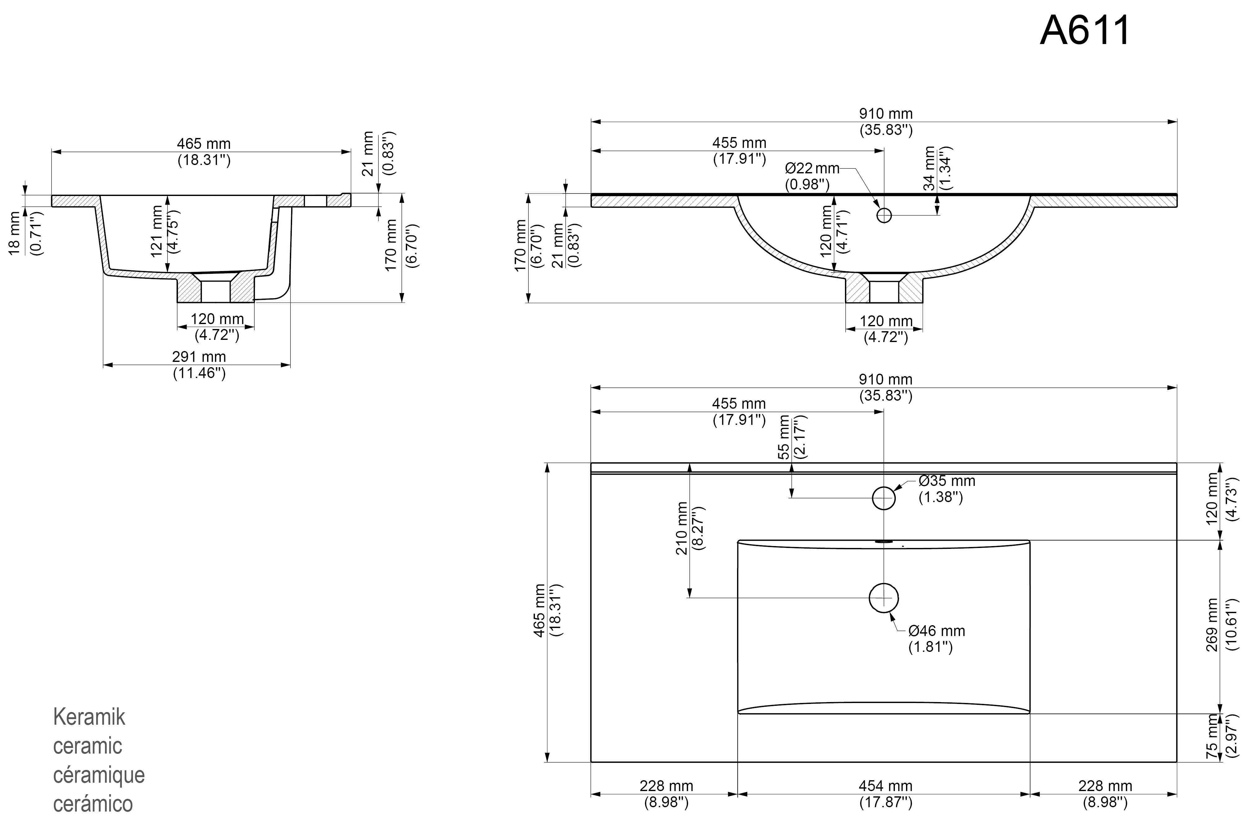 Waschbecken Keramik (B/H/T) 91/2,1/46,5 cm.