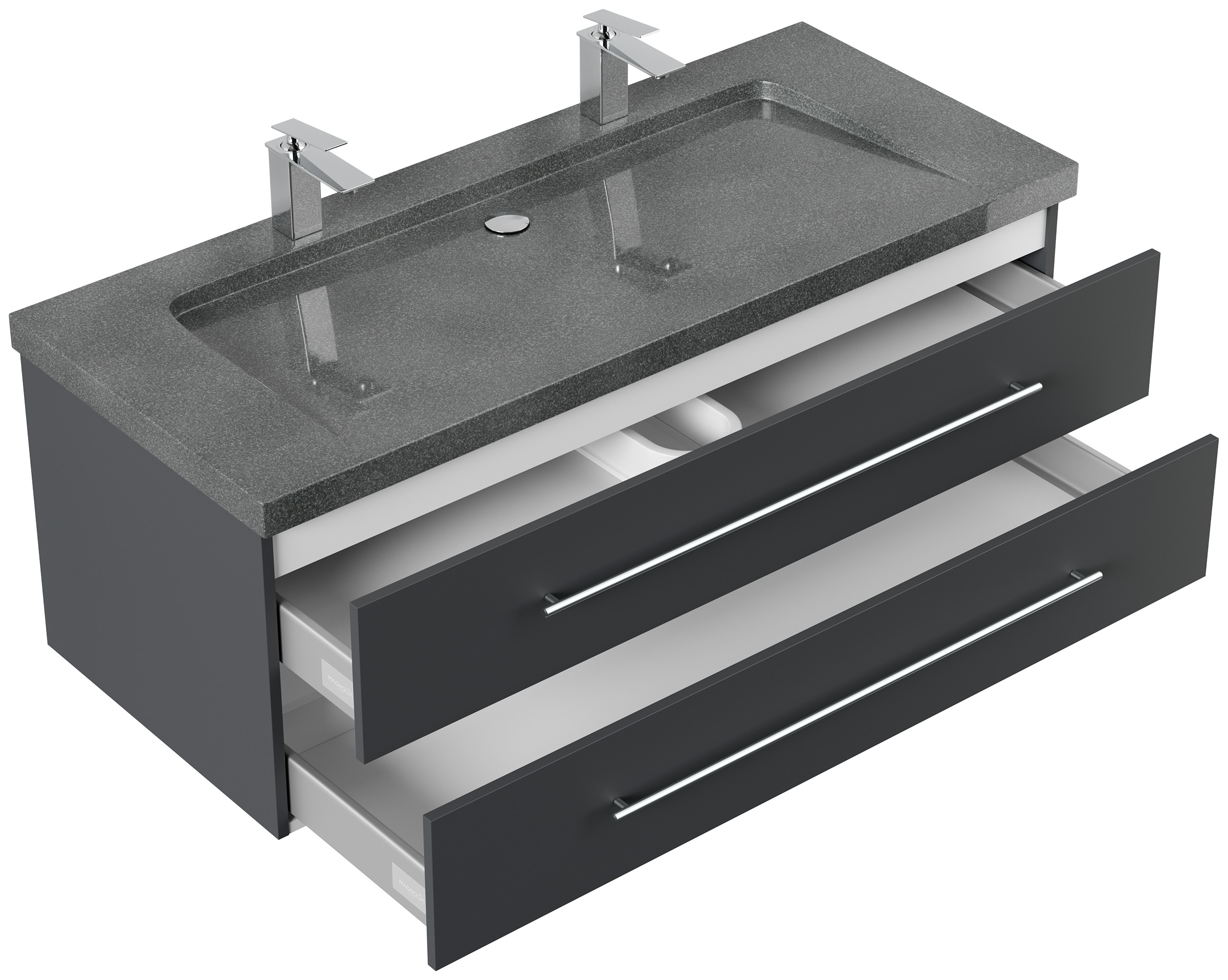 Badmöbel Granit G654 Damo 130 cm 2 Hahnlöcher SoftClose grafit
