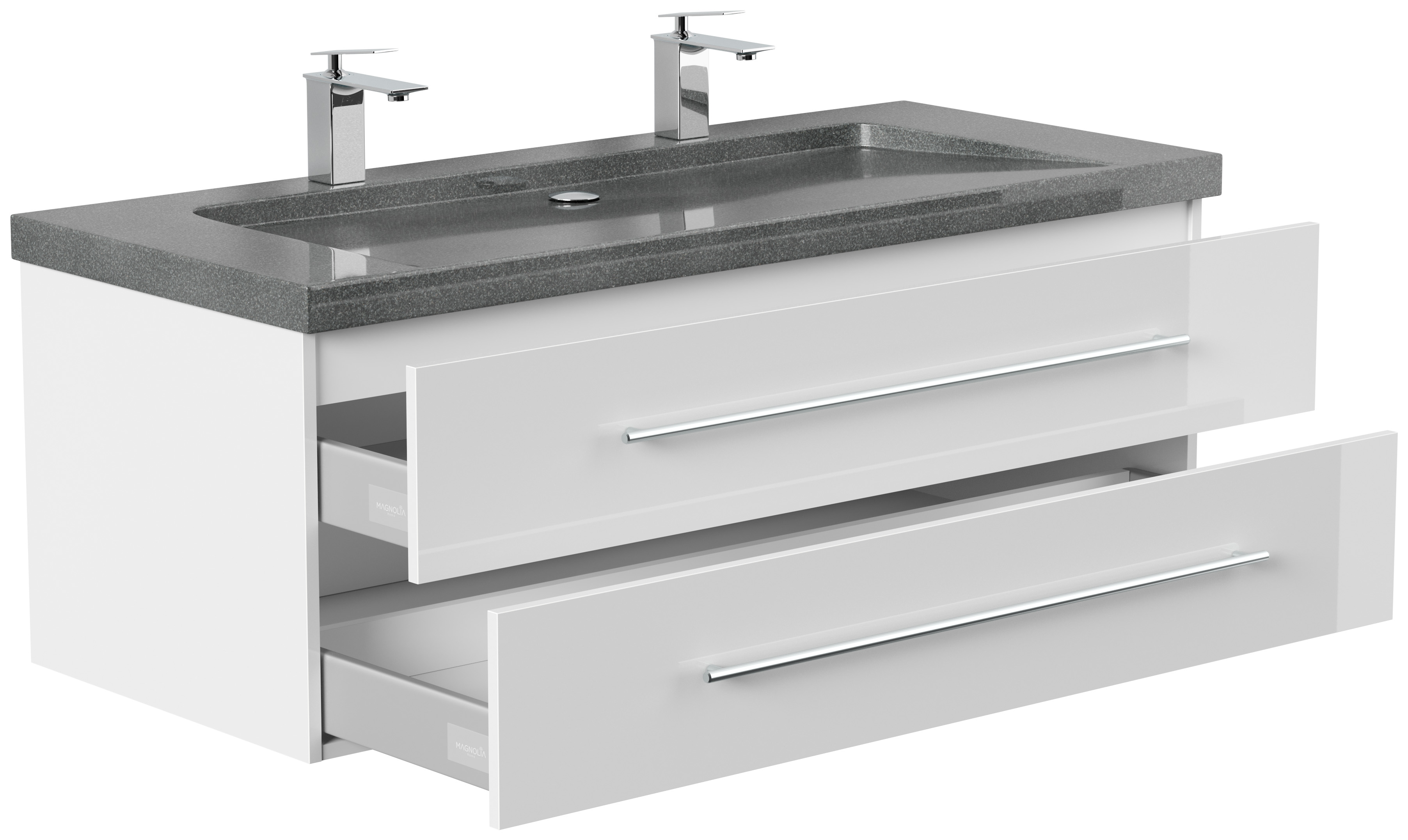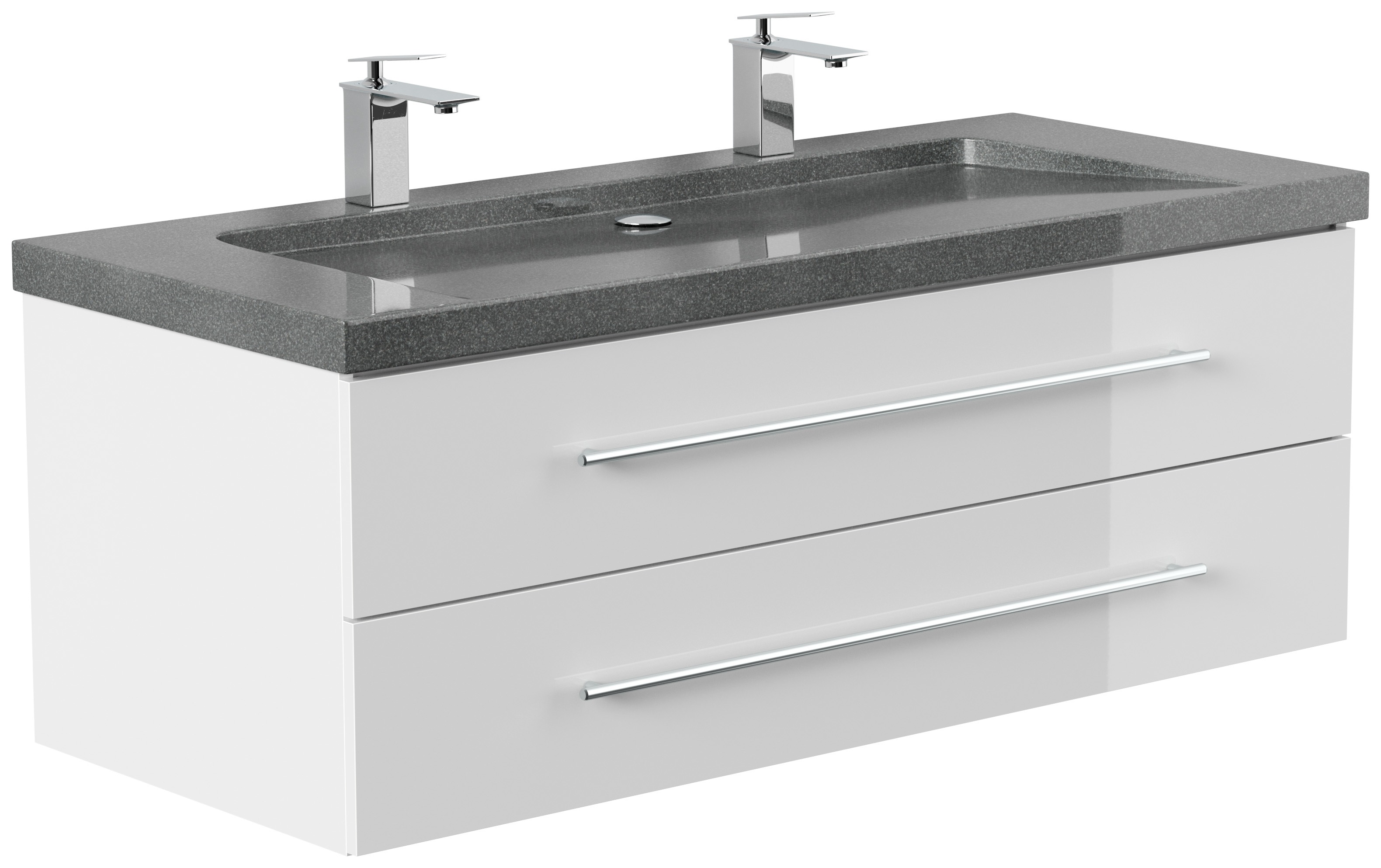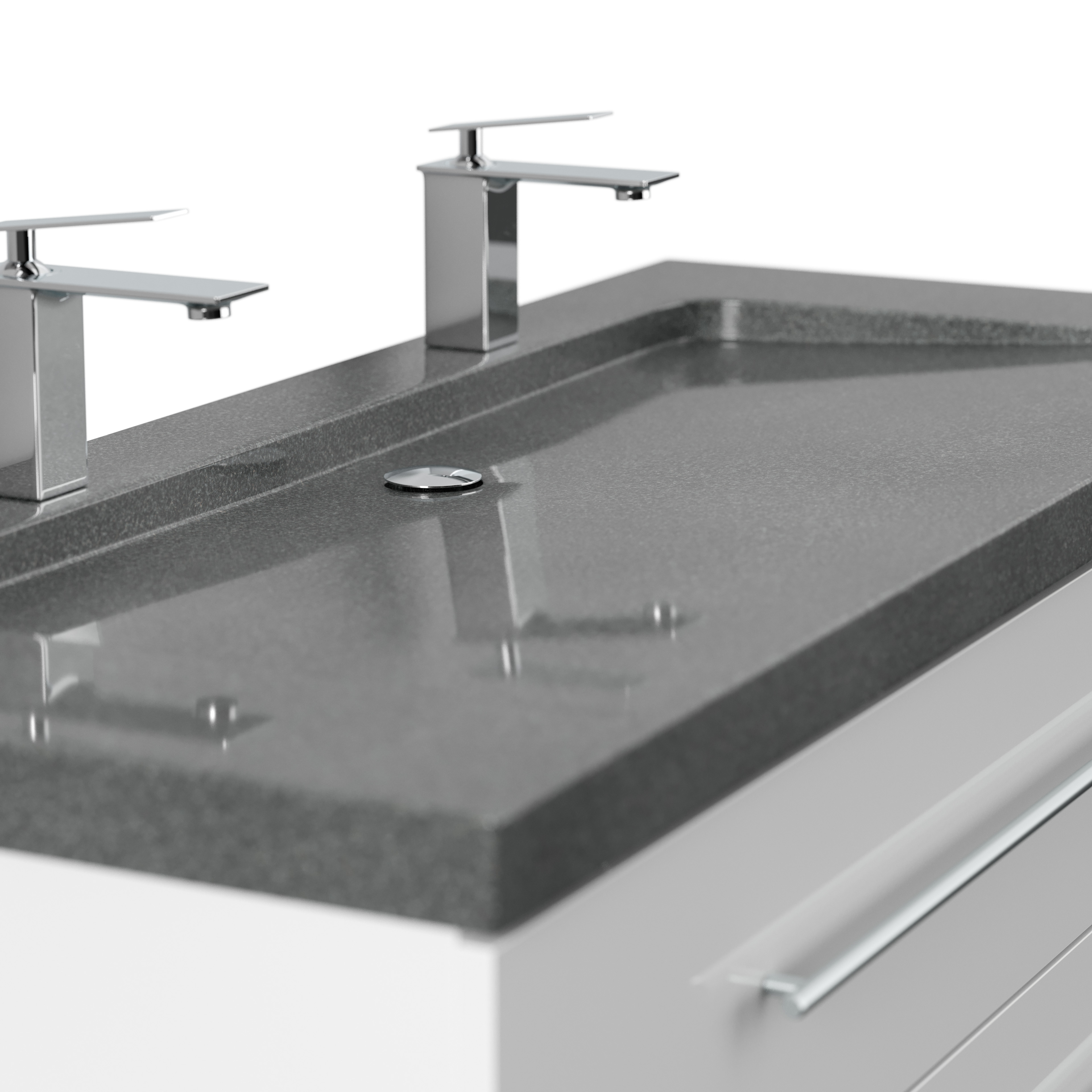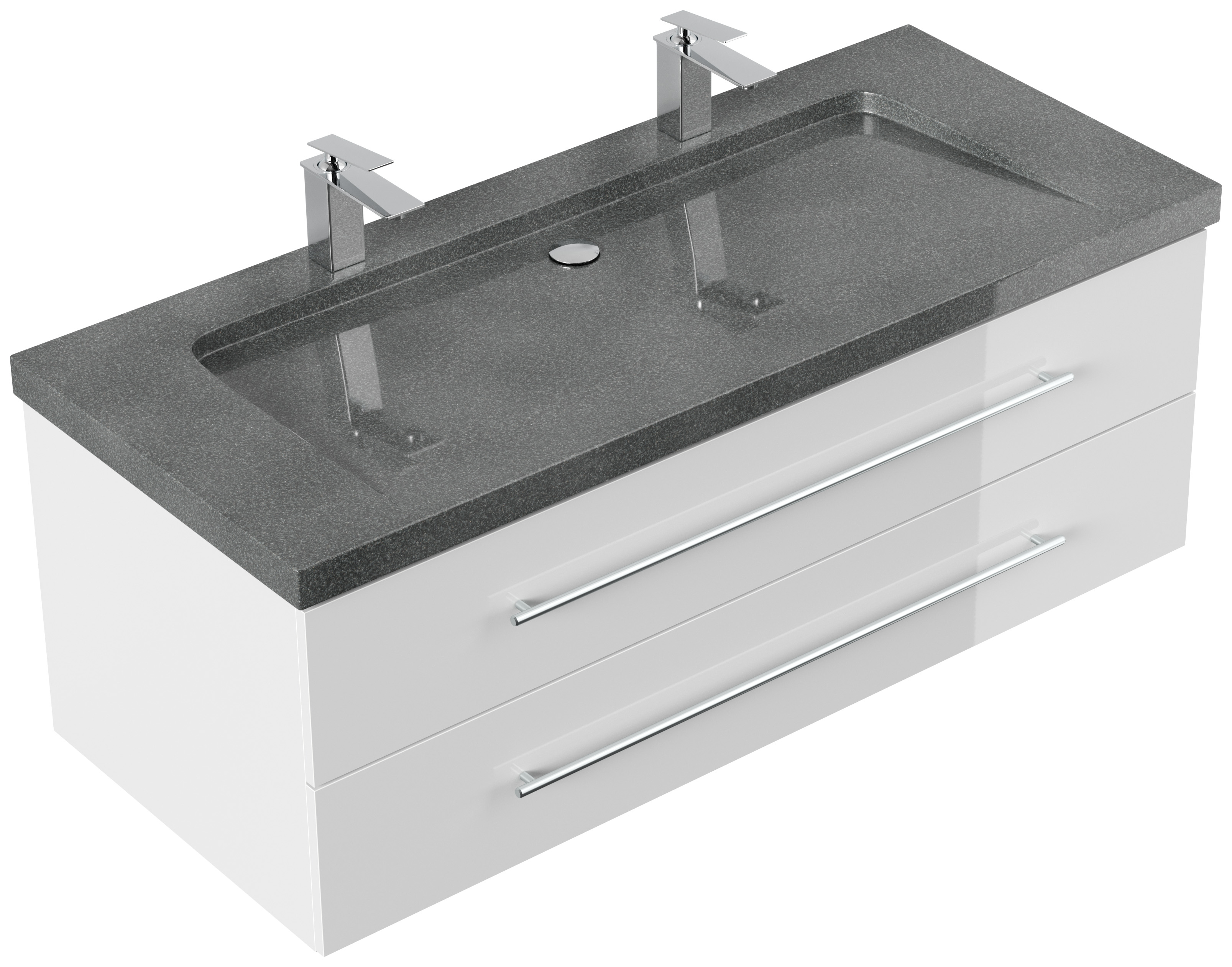 Badmöbel Granit G654 Damo 130 cm 2 Hahnlöcher SoftClose weiß hochglanz