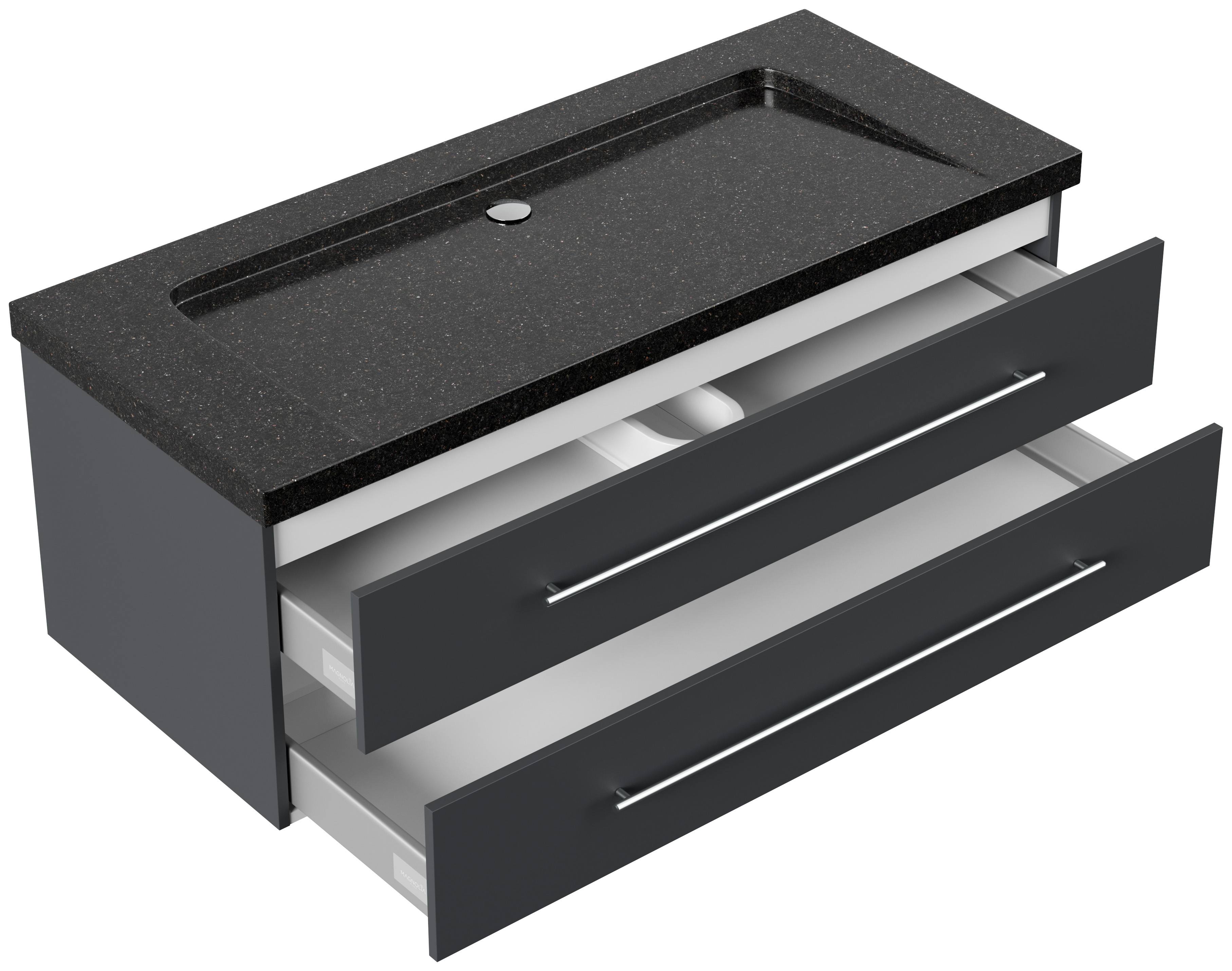 Badmöbel Granit Galaxy Black Damo 130 cm ohne Hahnloch SoftClose grafit