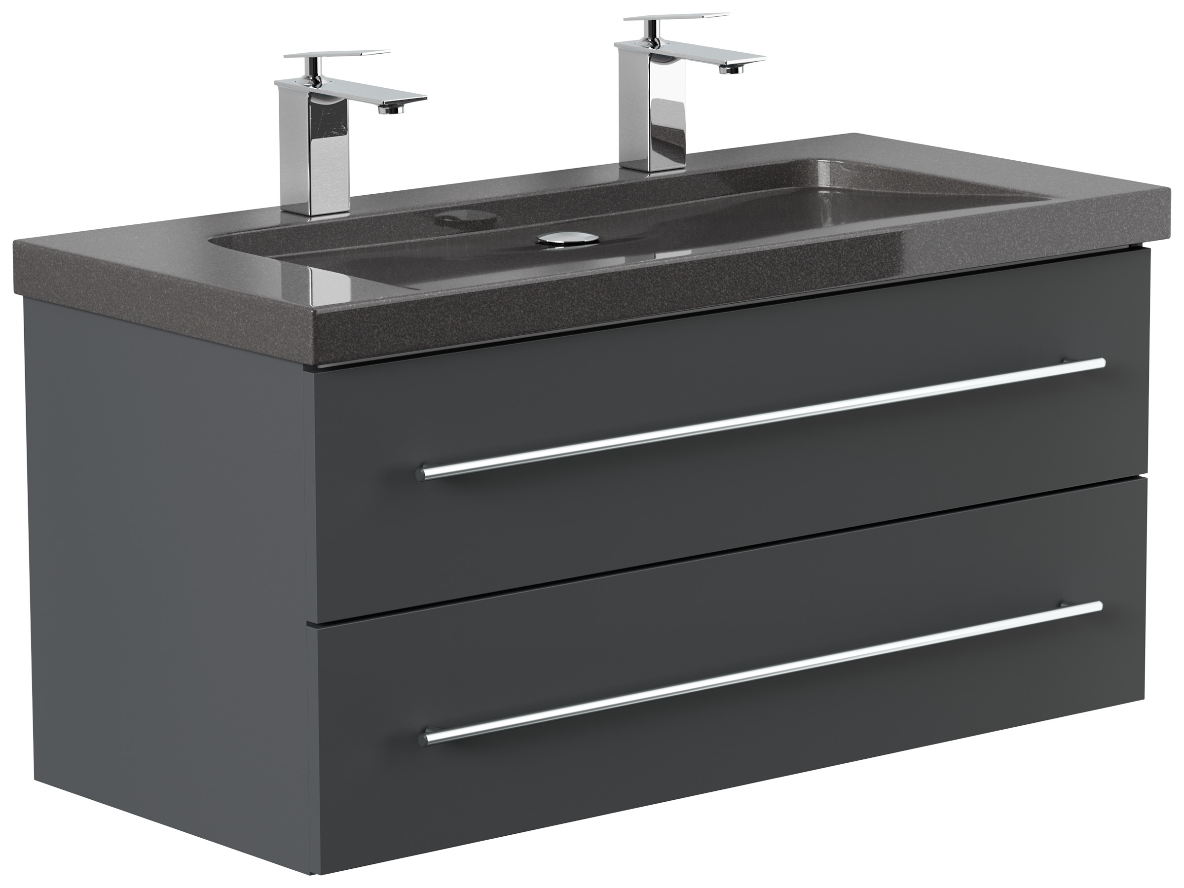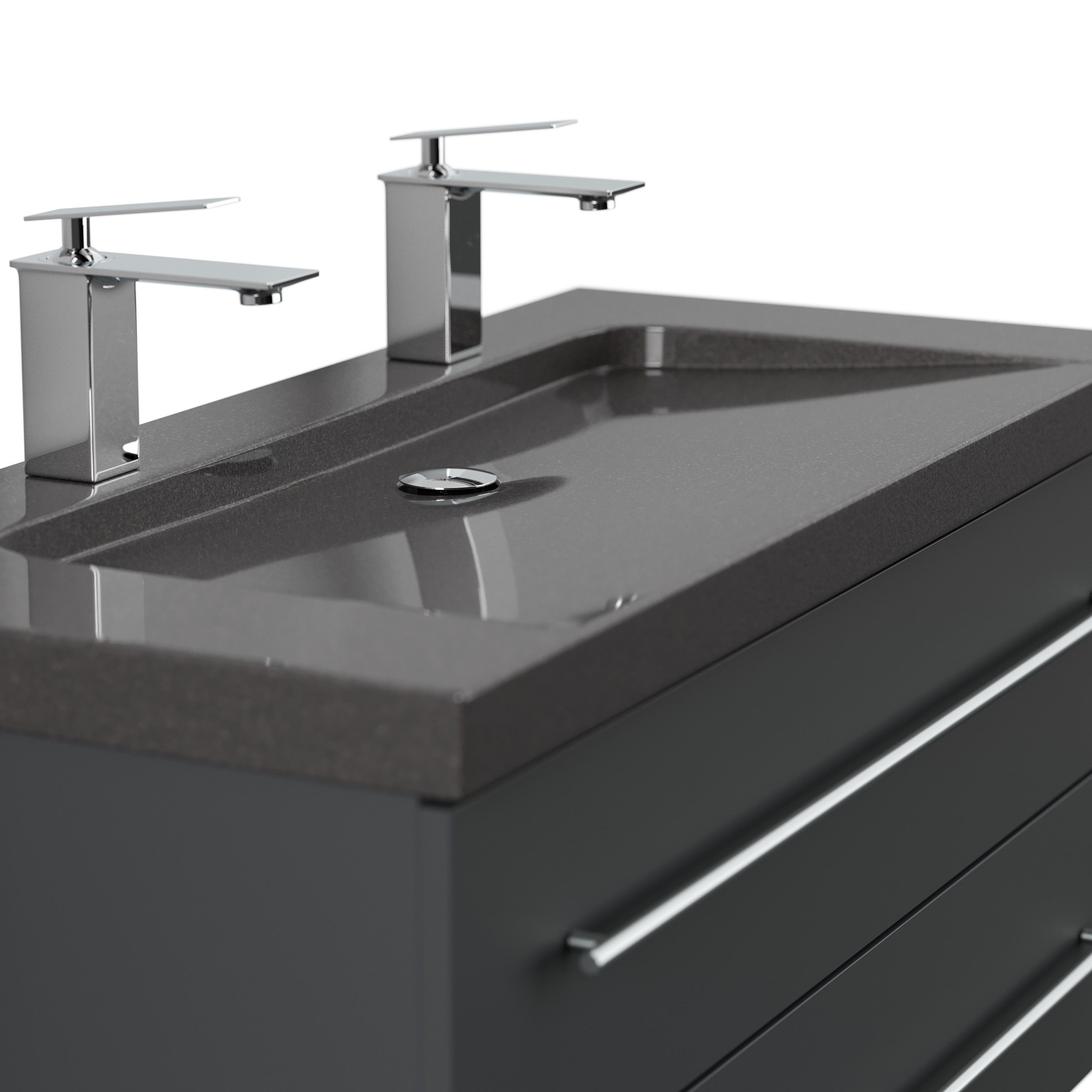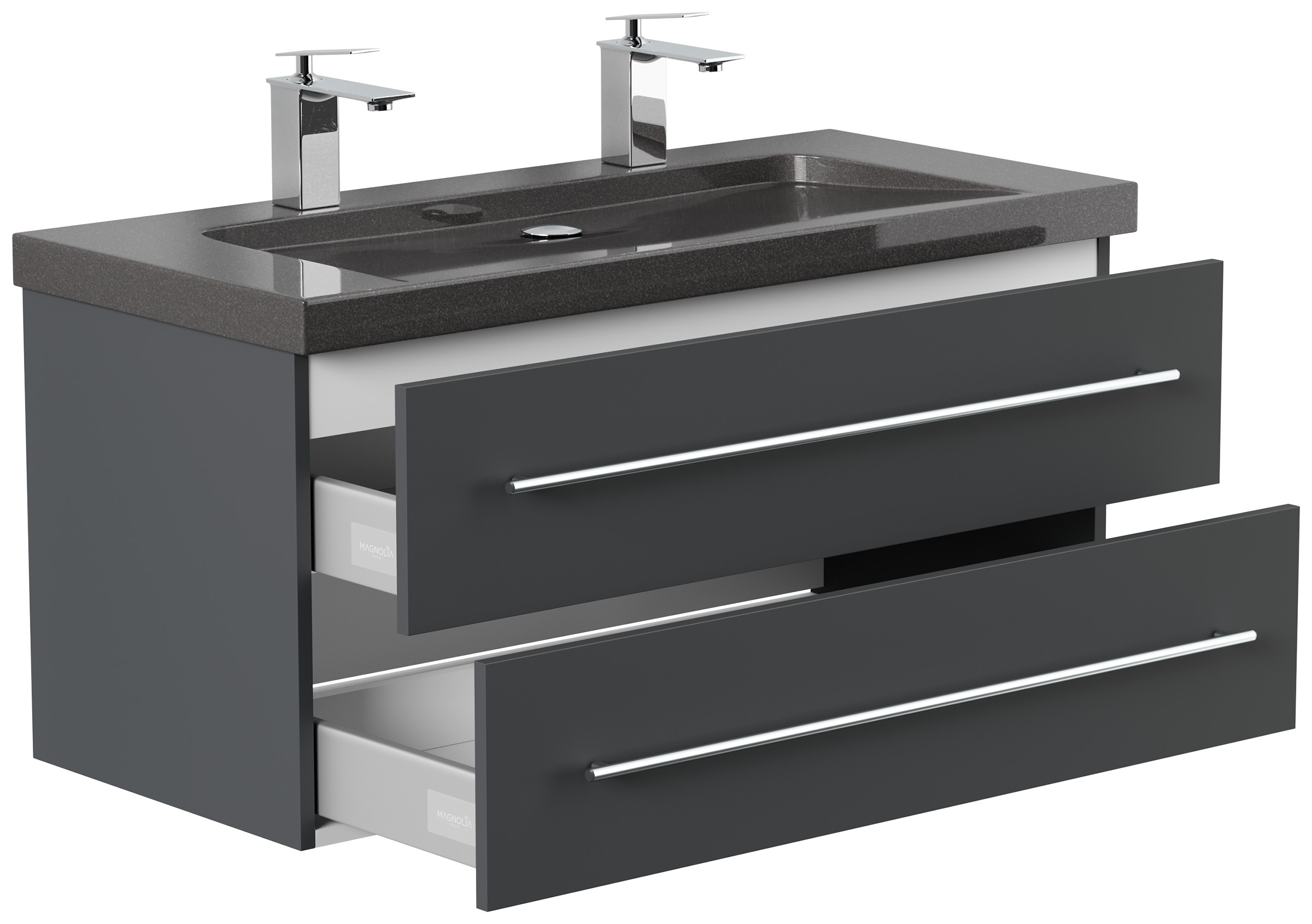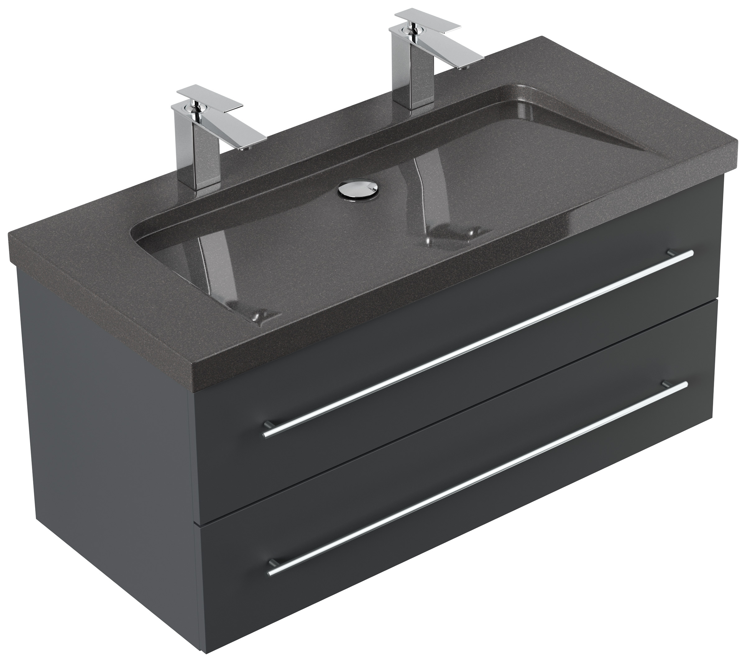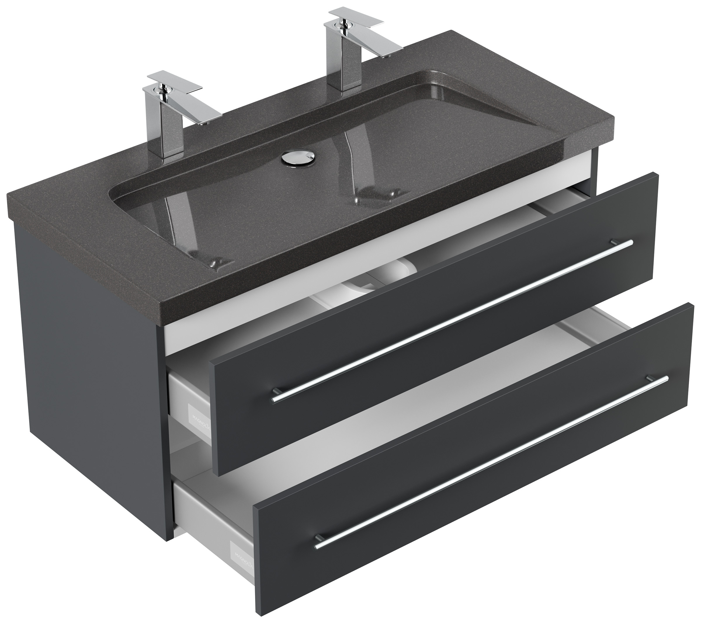 Badmöbel Granit India Black Damo 100 cm 2 Hahnlöcher SoftClose grafit
