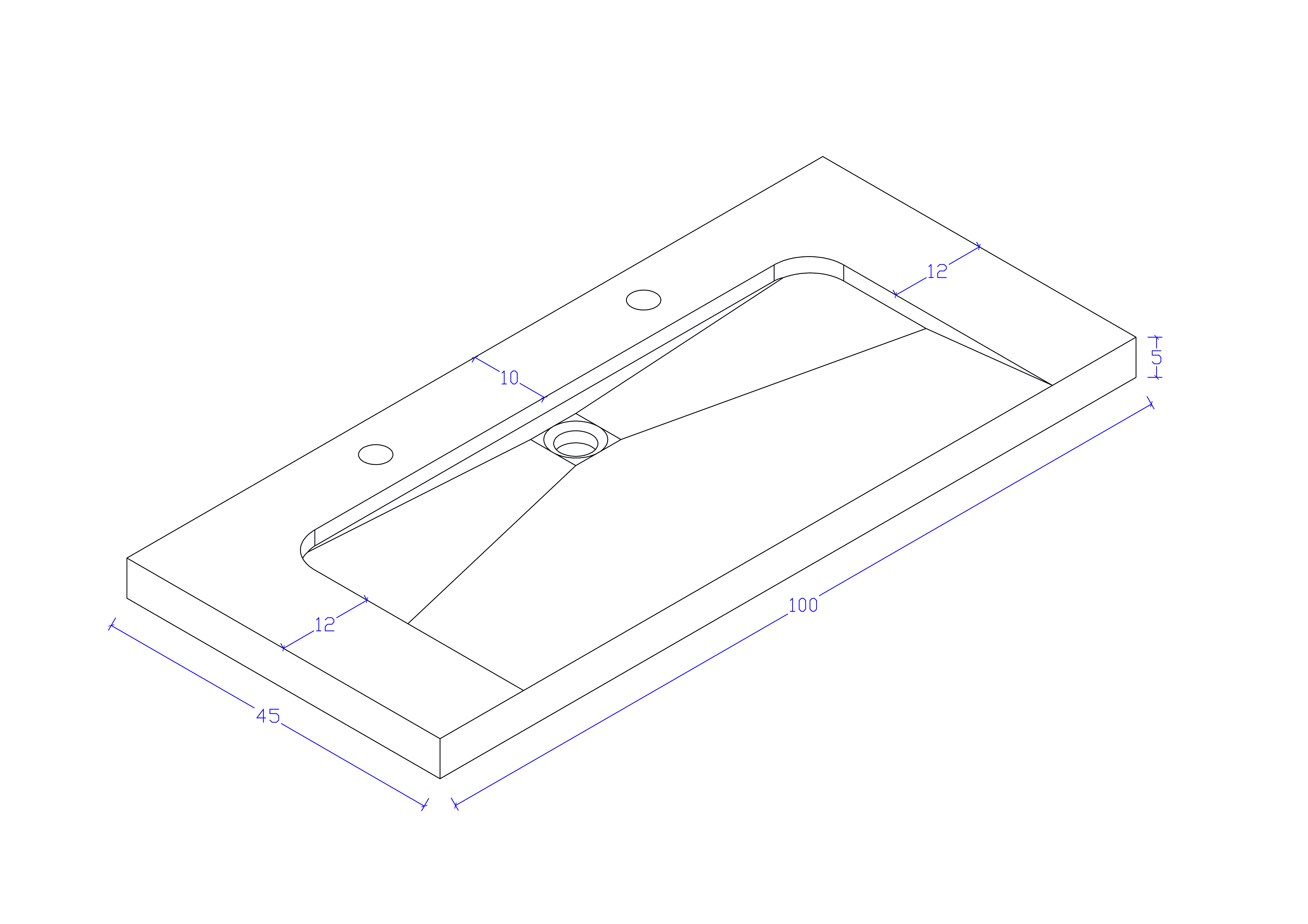 Waschbecken Granit Naturstein 2 Hahnlöcher: (B/H/T) 100/5/45 cm,