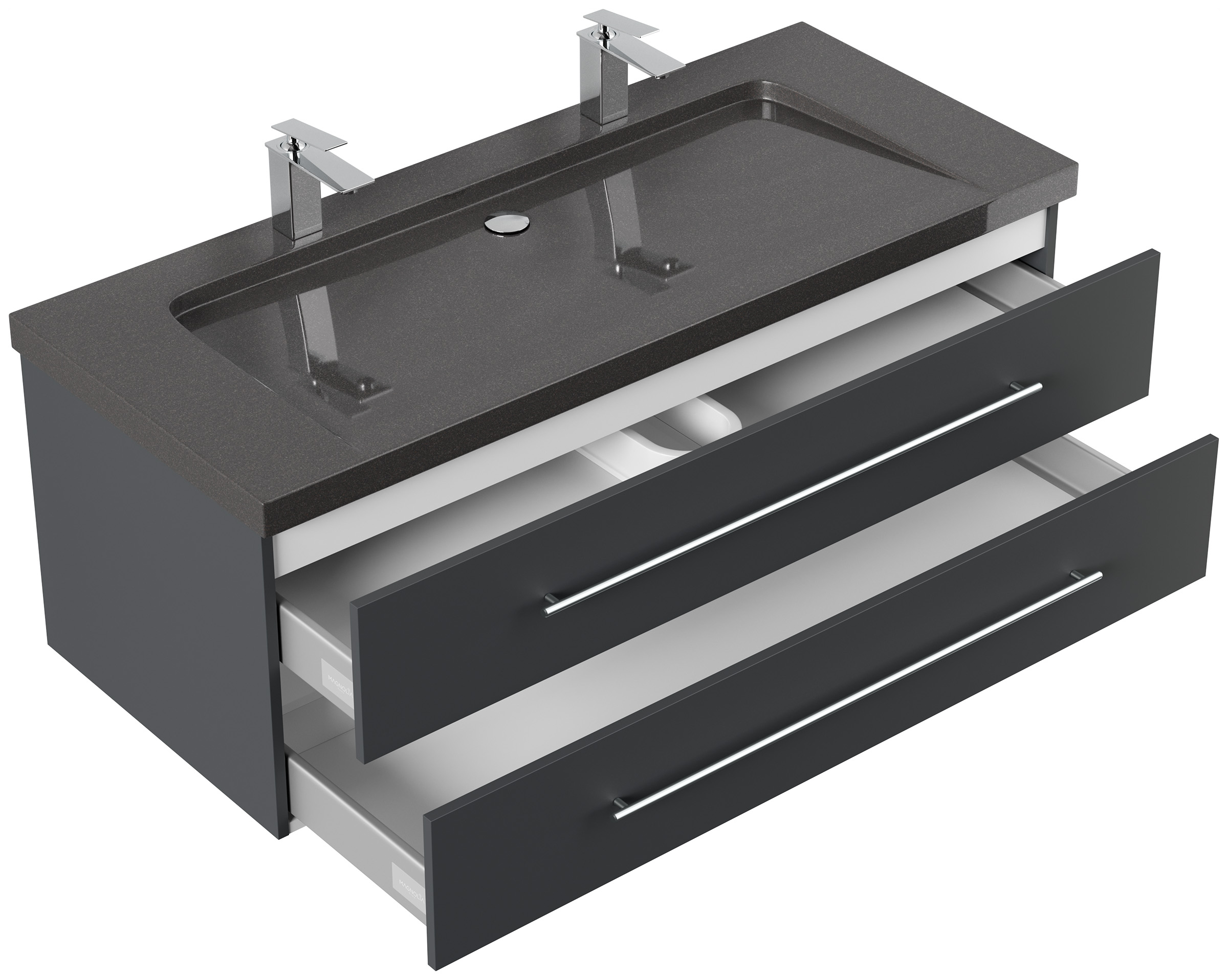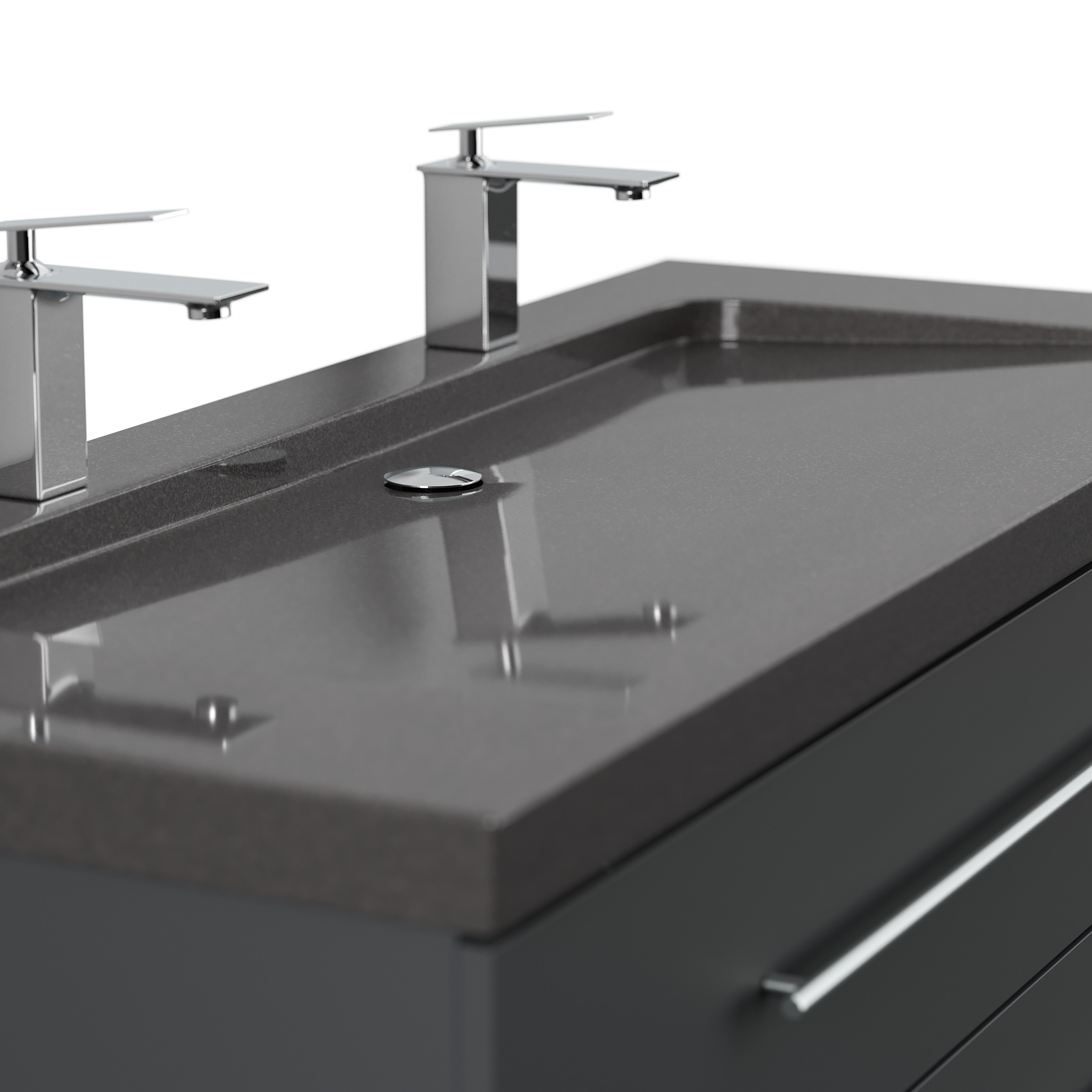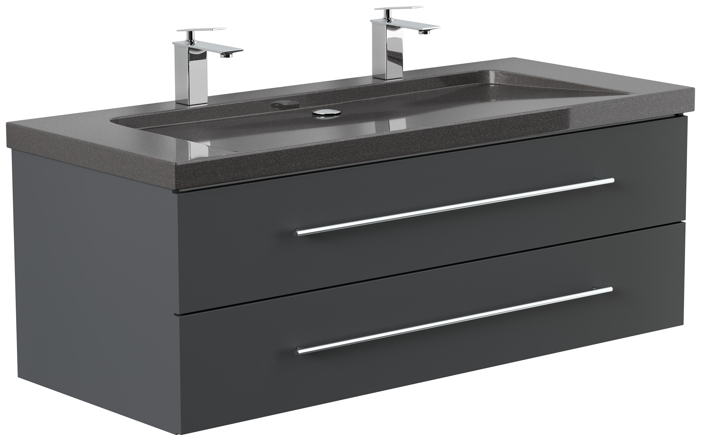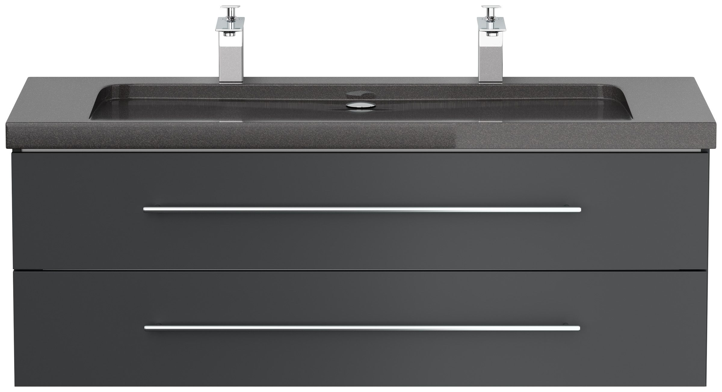 Badmöbel Granit India Black Damo 130 cm 2 Hahnlöcher SoftClose grafit