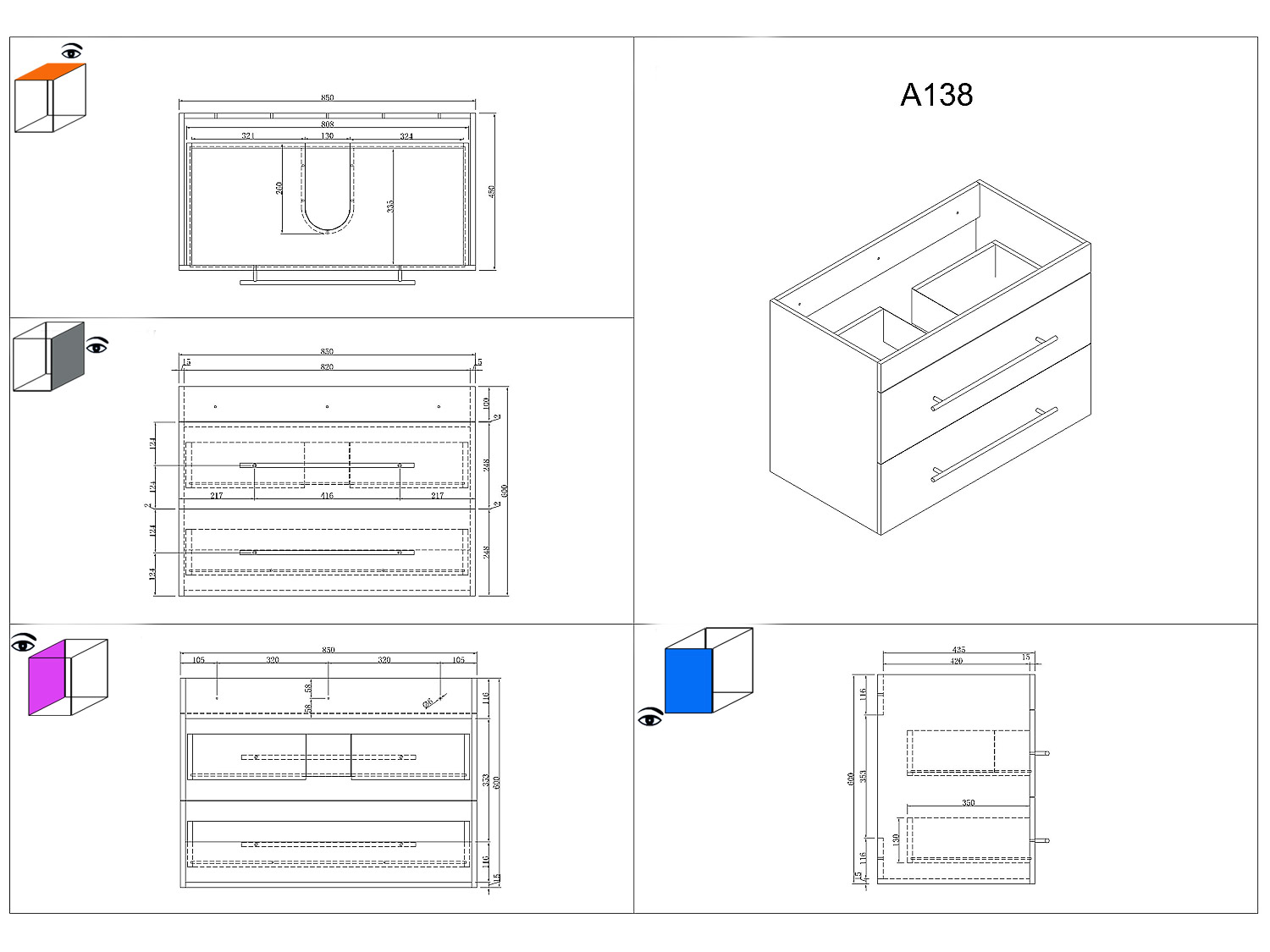 Dieser vortreffliche Waschtisch bietet Ihnen eine exzellent gelungene Kombination aus feinem Design und optimierter Funktion. Ausgestattet mit Unterschrank und Waschbecken dient das Wohnobjekt als wertvolle Ergänzung des Bad-Interieurs. Der solide Waschbeckenunterschrank aus 16mm MDF designed in Germany verfügt über widerstandsfähige Melaminbeschichtung. Die integrierten Schubladen stellen viel Platz zur Verfügung. Dank der Marken-Soft-Close Schienen lassen sich die Schubladen leichtgängig ausziehen und schließen. Die Handgriffe aus mattiertem Edelstahl perfektionieren das Einzelbadmöbel. Profitieren Sie von allen Vorzügen des hochwertigen Waschtischs Infinity 850 und bestellen Sie noch heute ein Badmöbel mit Stil!Nicht im Lieferumfang enthalten sind beispielsweise Deko, Spiegel, Armatur, Zuleitungen zum Wasserhahn, der Siphon sowie in der Regel ebenfalls nicht der Waschbeckenverschluss Popup. Diese Artikel können gesondert bei uns erworben werden.