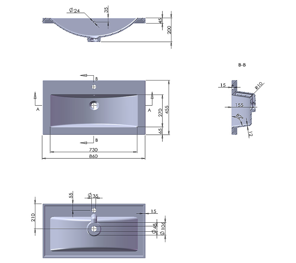 Ein herausragendes Qualitätsmerkmal unserer Badmöbel sind die hervorragend verarbeiteten Oberflächen. Die Beschichtung ist - sowohl über die Frontseite, als auch über die sichtbaren Seitenteile - über die Kanten und Ecken tiefgezogen und weich abgerundet.