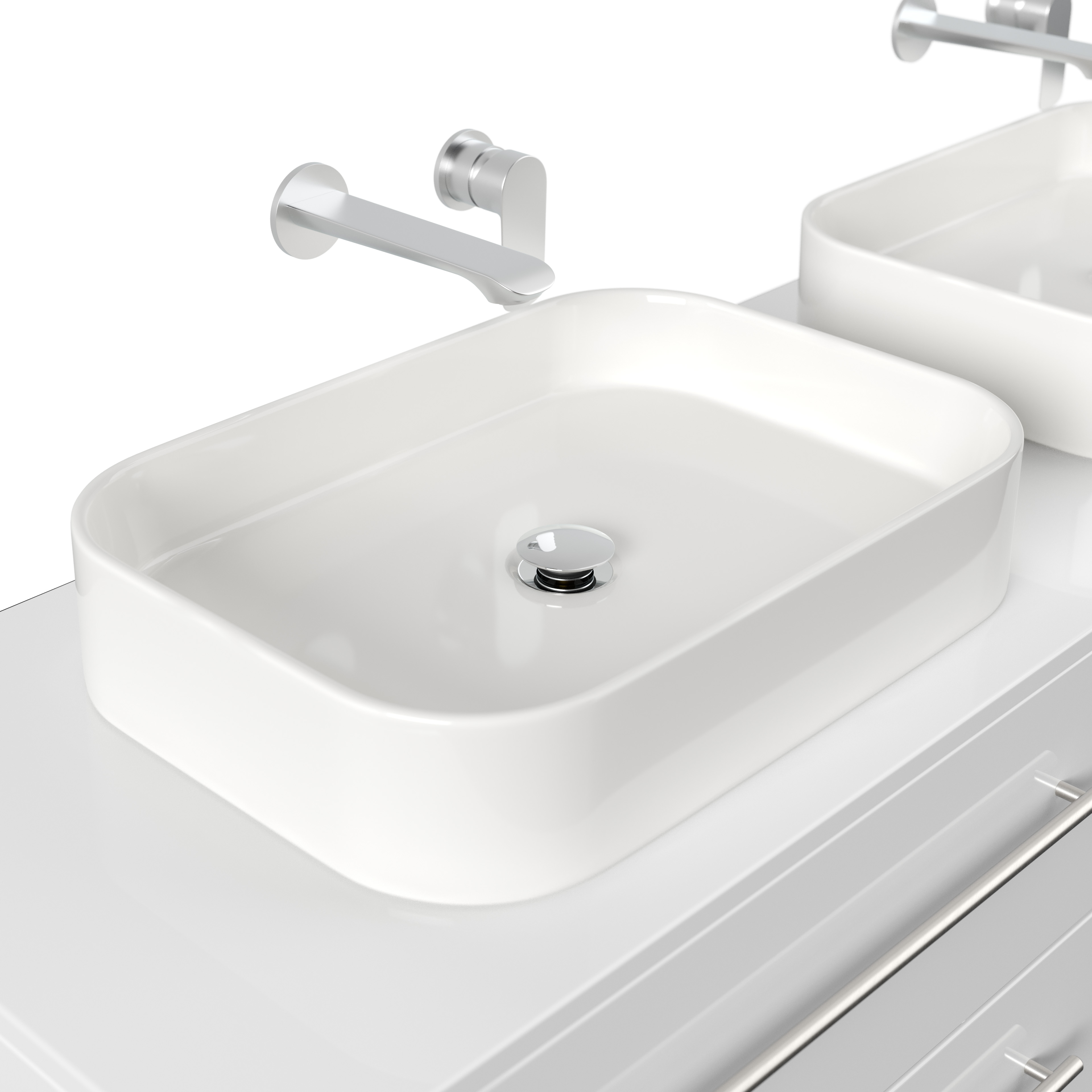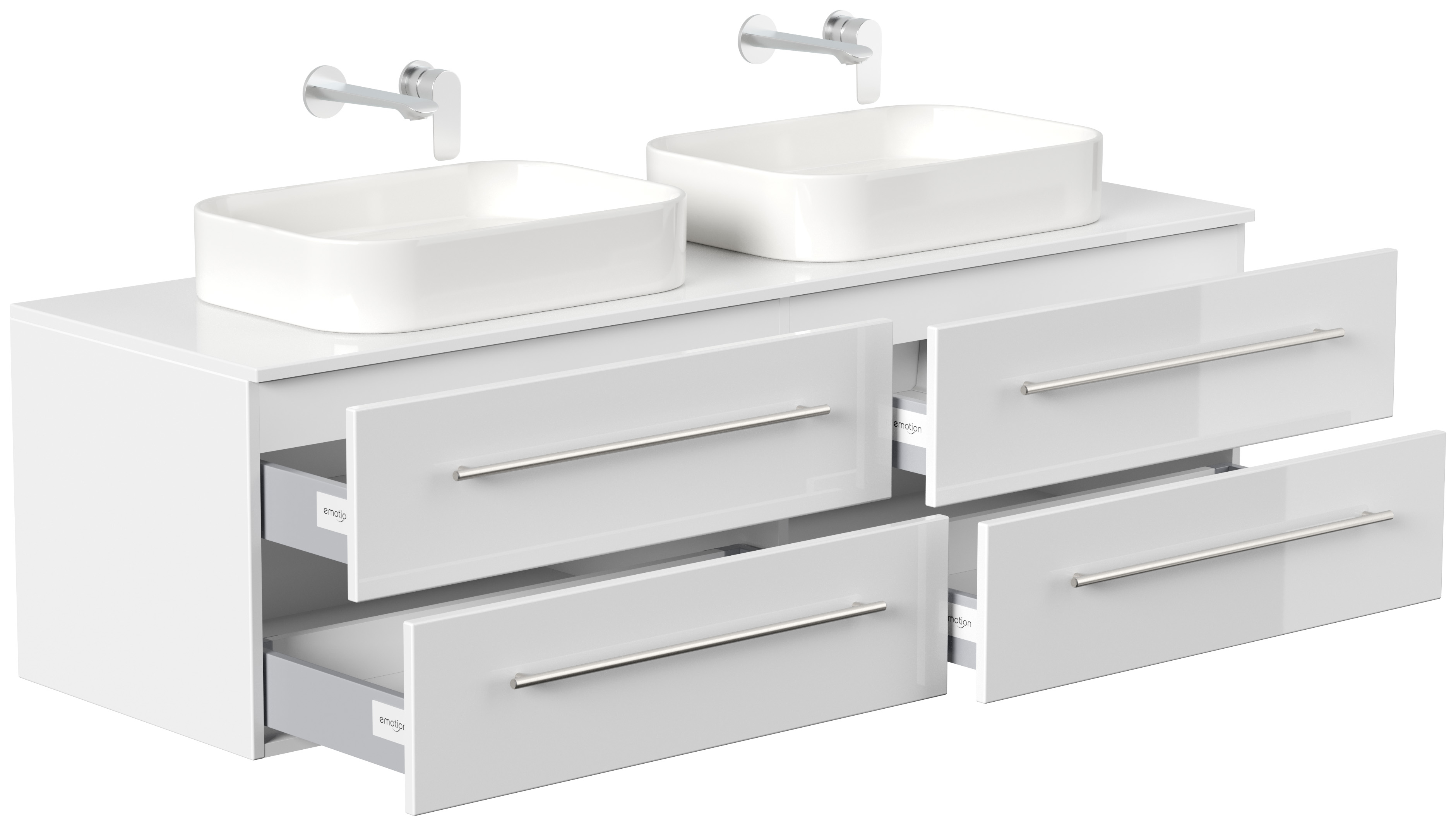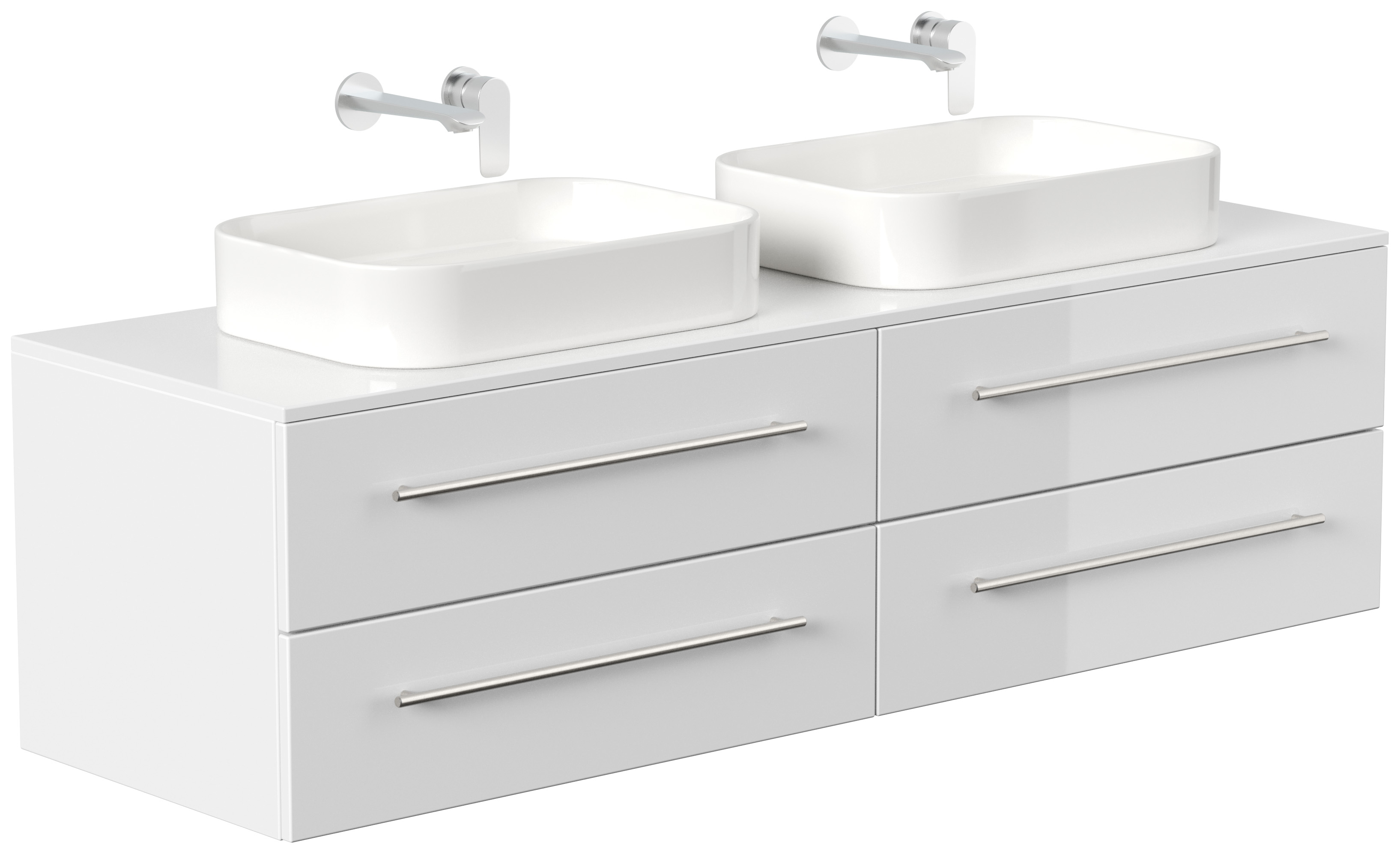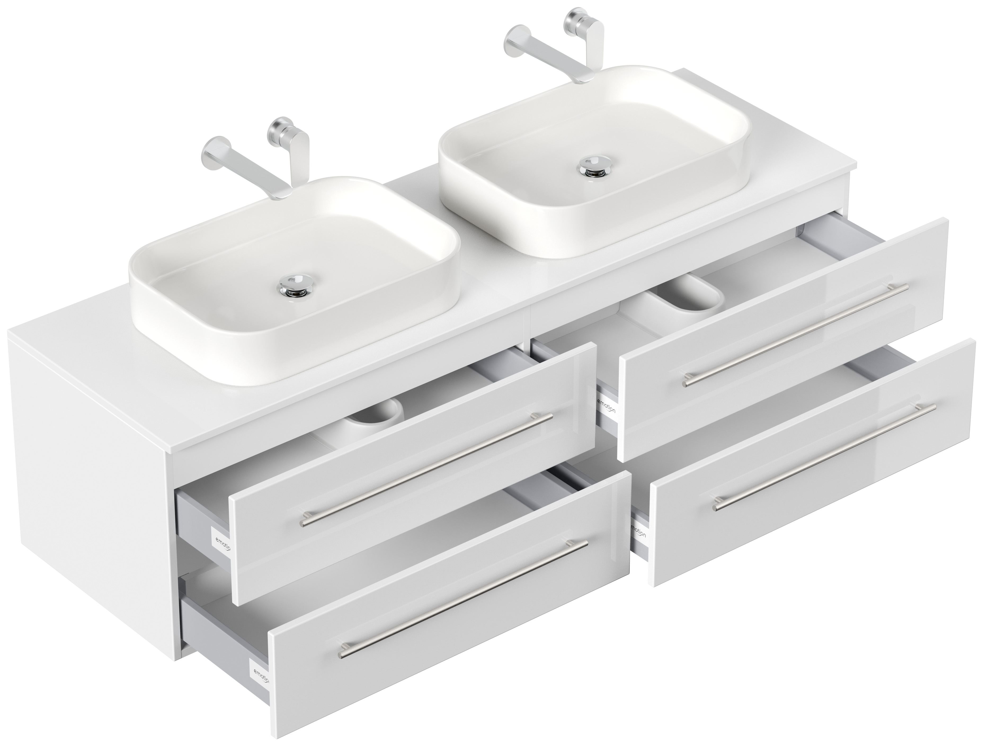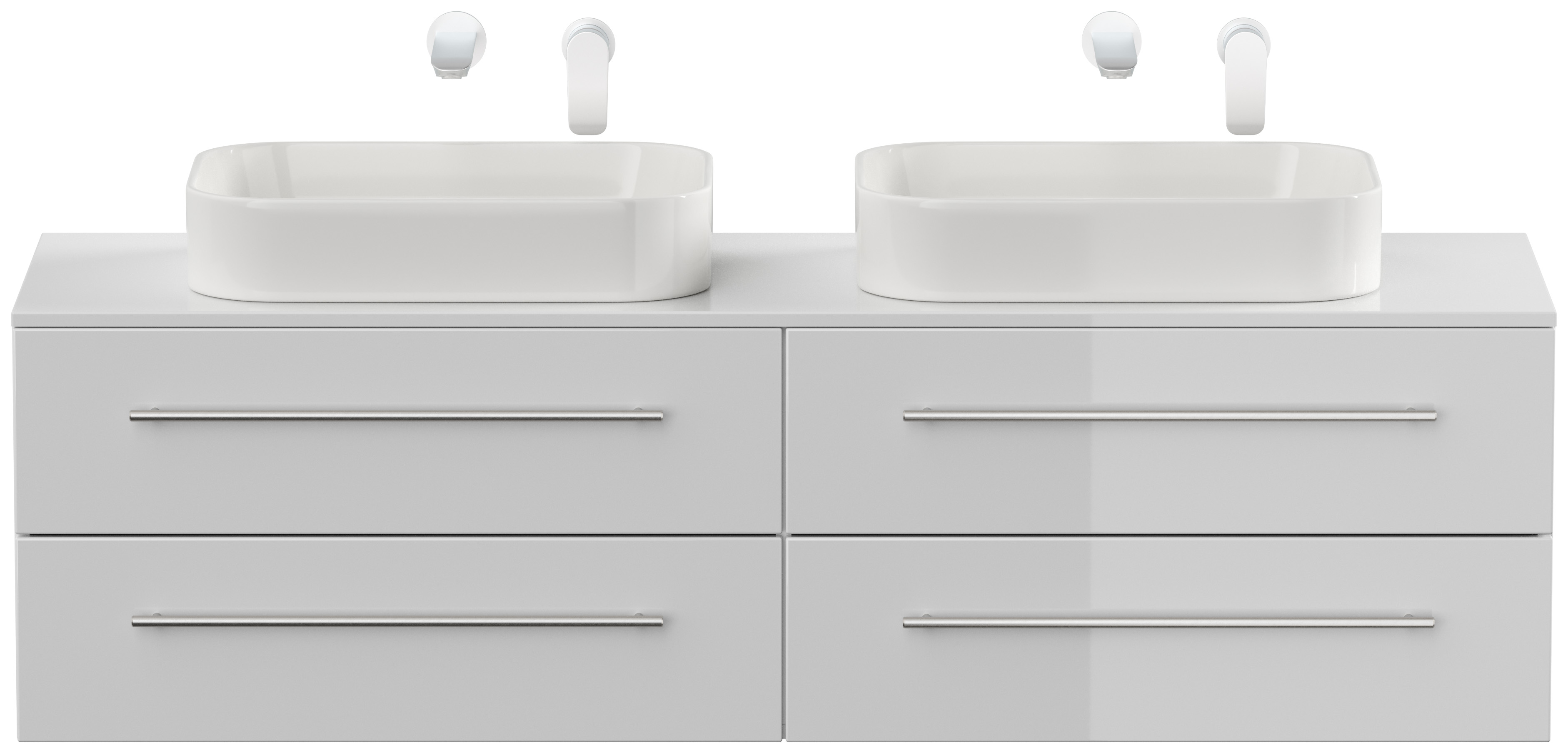 Badmöbel MORGAN B 160cm mit zwei Aufsatzwaschbecken weiß hochglanz