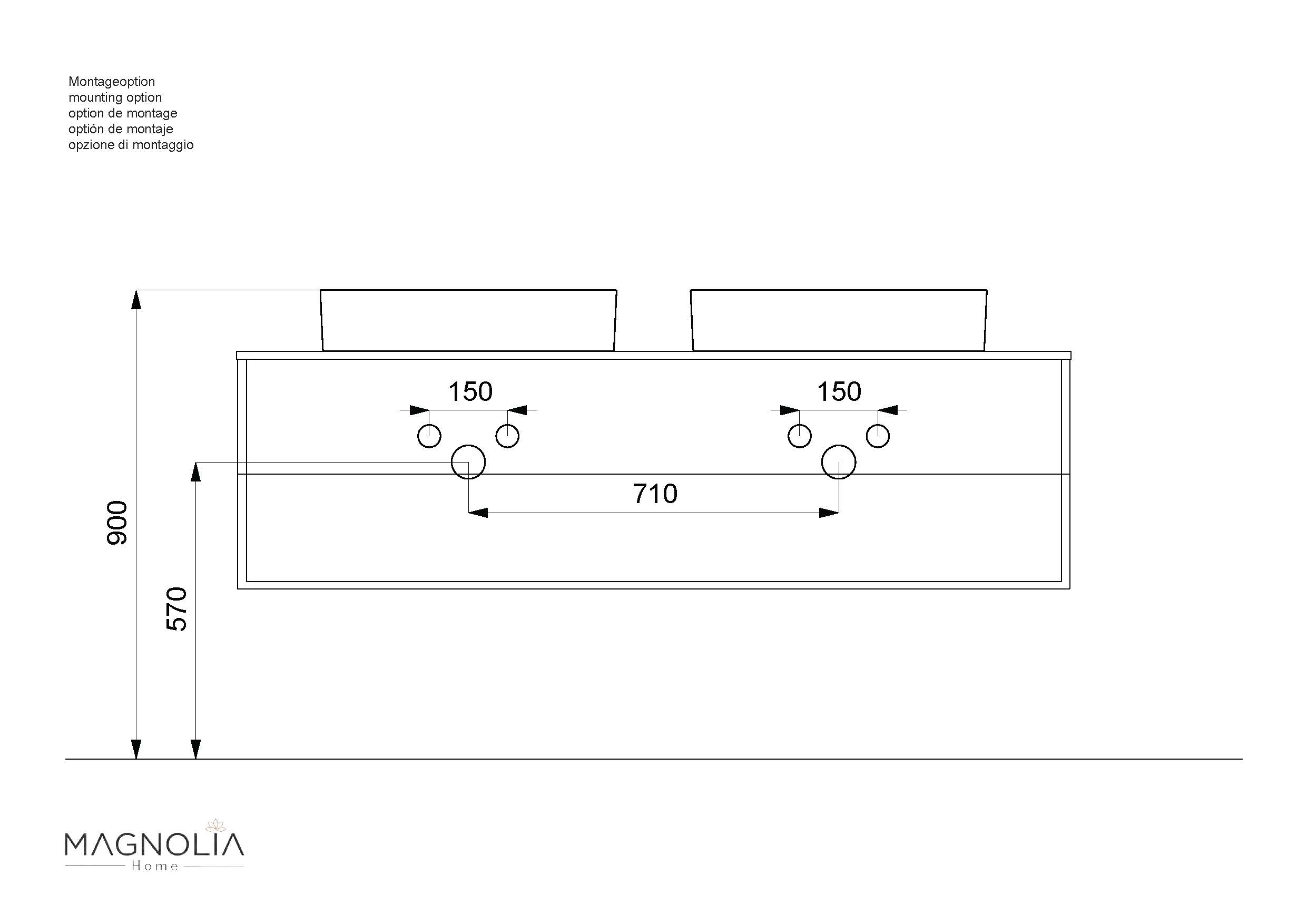 Der Unterschrank wird bereits vormontiert geliefert und muss nur noch an der Wand befestigt werden. Etwaiges Wandmontagematerial für die Aufhängung ist in der Lieferung nicht enthalten. Bitte verwenden Sie Schrauben und Dübel, die zu den Bedingungen bei Ihnen vor Ort passen. Das Waschbecken wird nicht extra an der Wand befestigt, sondern es wird einfach auf den Waschtsichunterschrank aufgesetzt. Die Montage wird mit einem Silikonstreifen zwischen Badmöbel und Waschbecken sowie Badezimmerwand optimiert. Wir empfehlen, den Wasser- sowie etwaigen Elektro-Anschluss von Fachfirmen durchführen zu lassen.