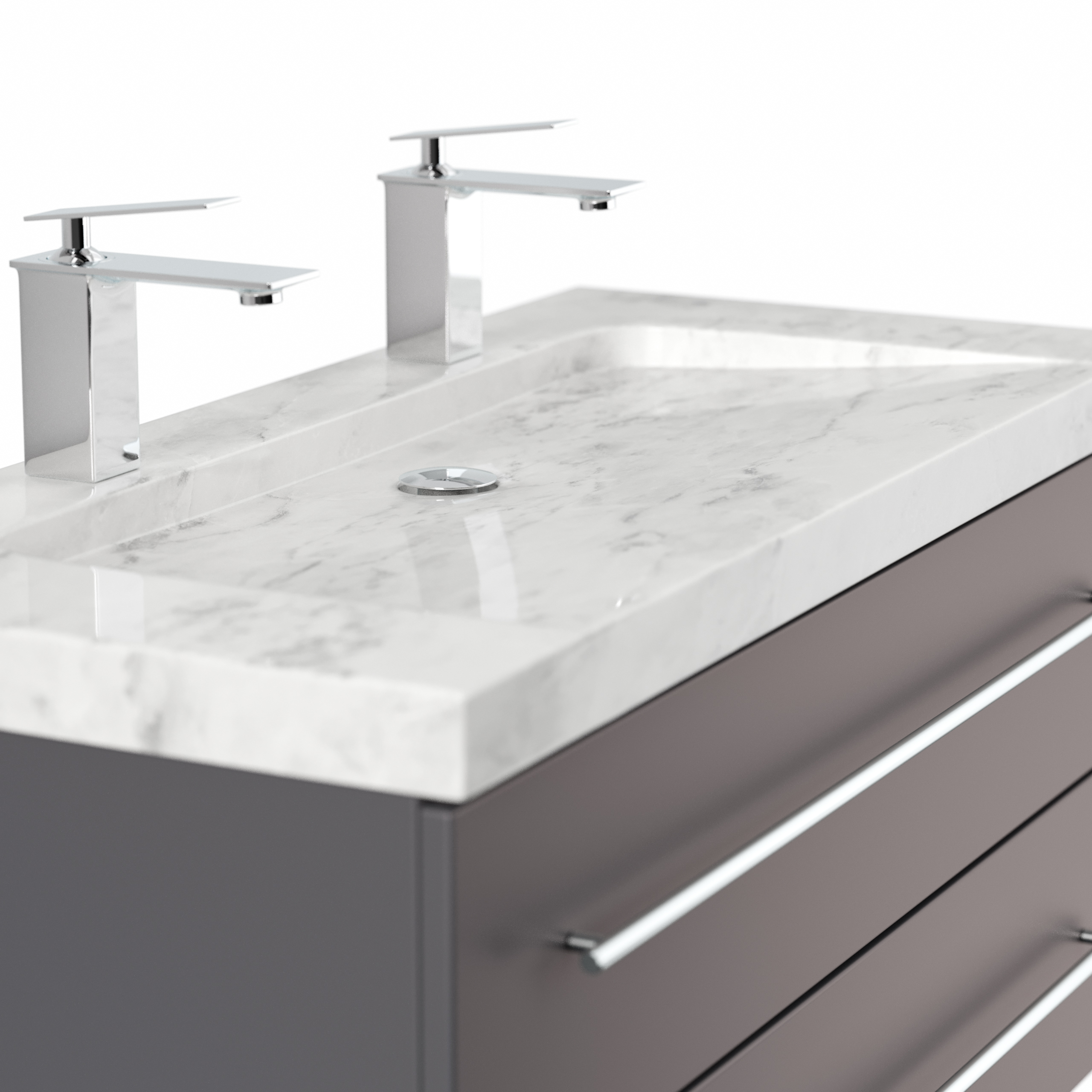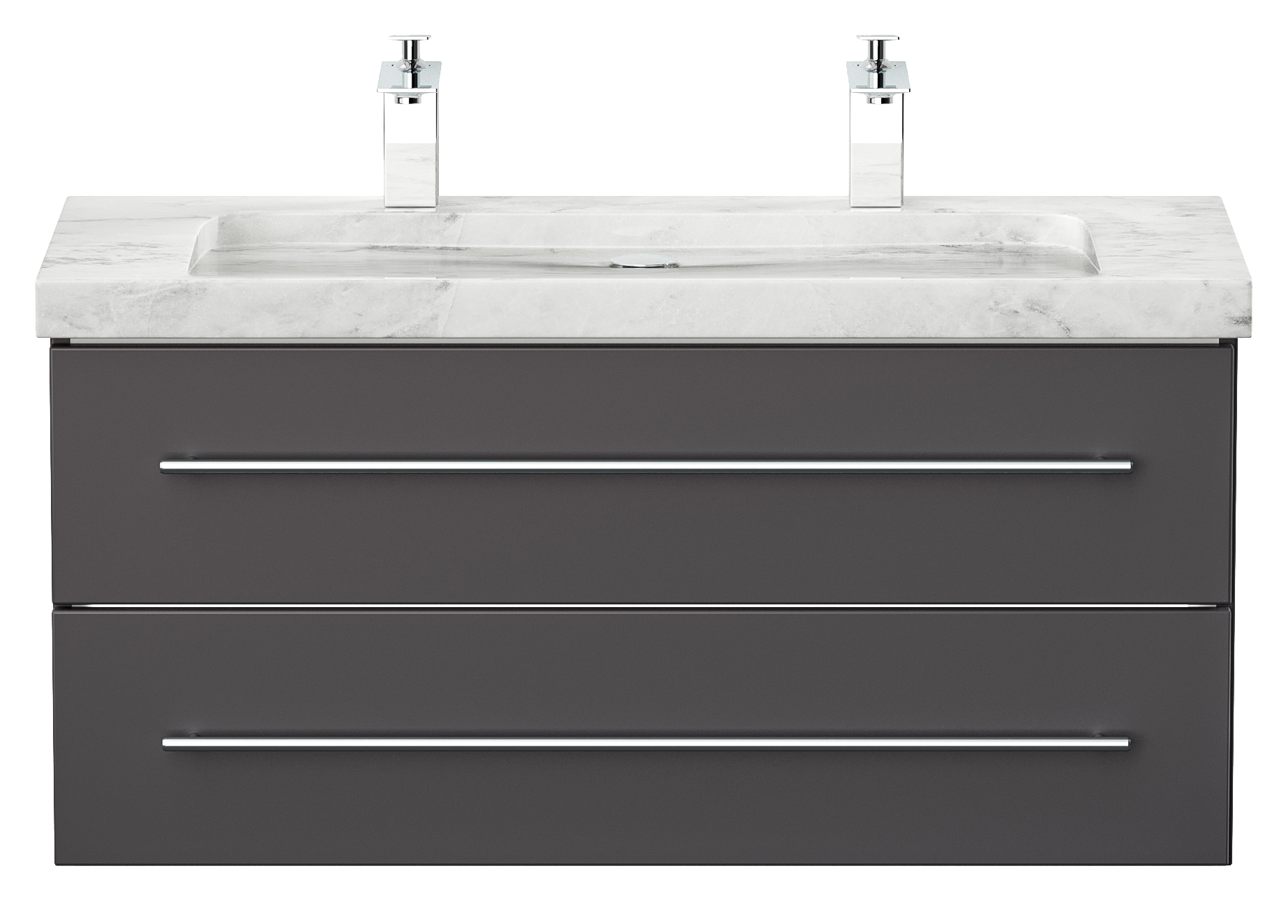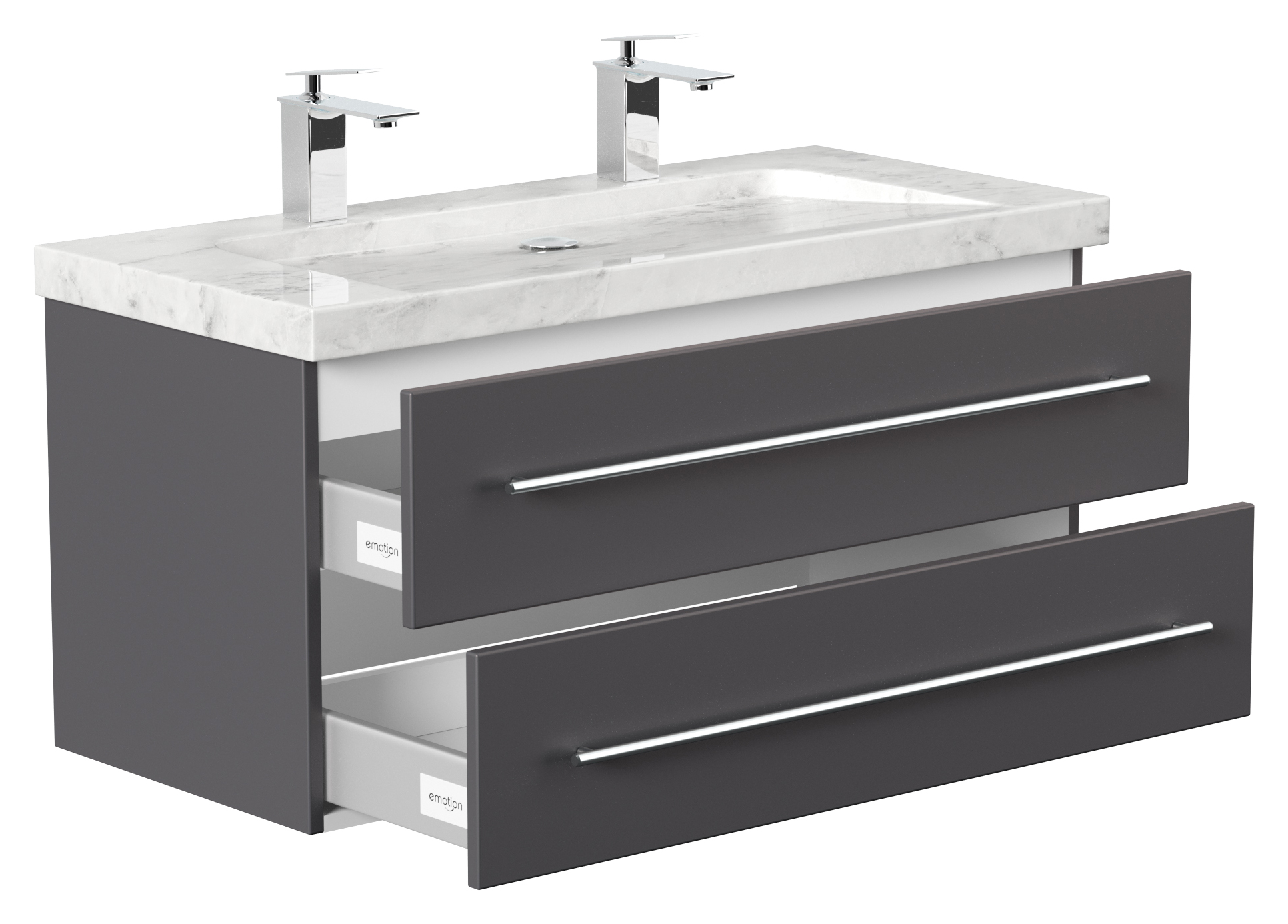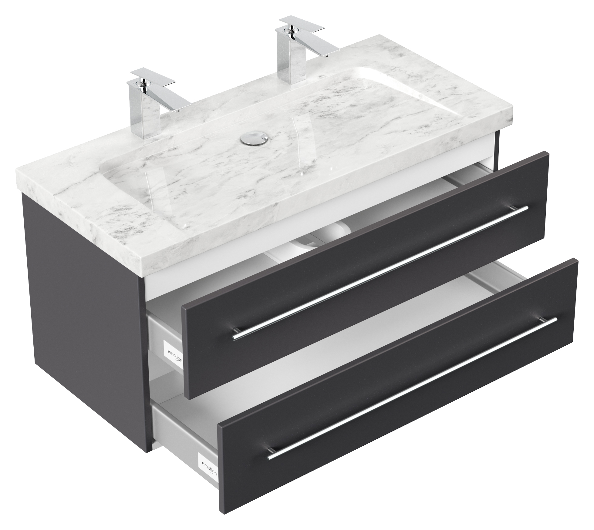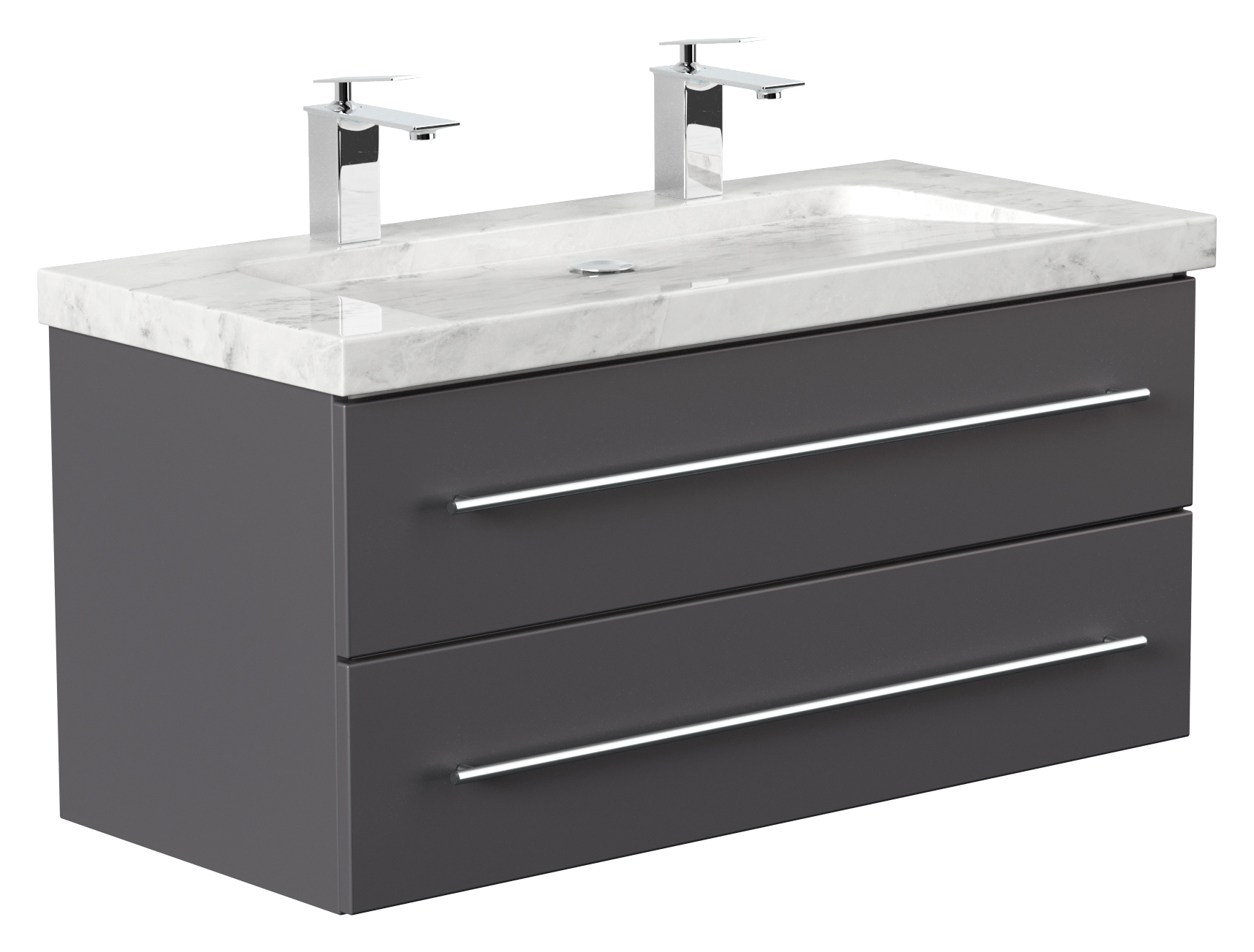 Badmöbel Marmor Carrara White Damo 100 cm 2 Hahnlöcher SoftClose anthrazit