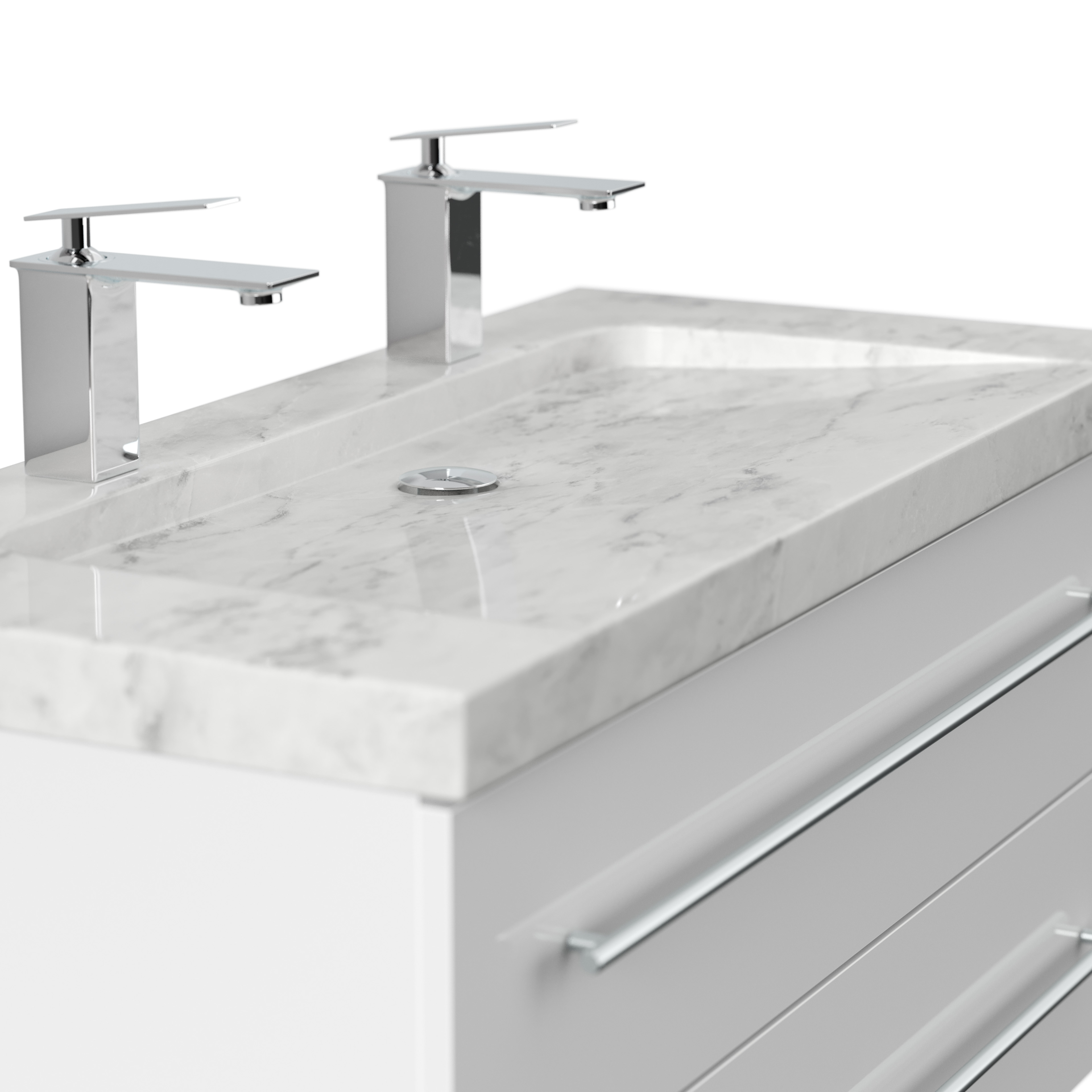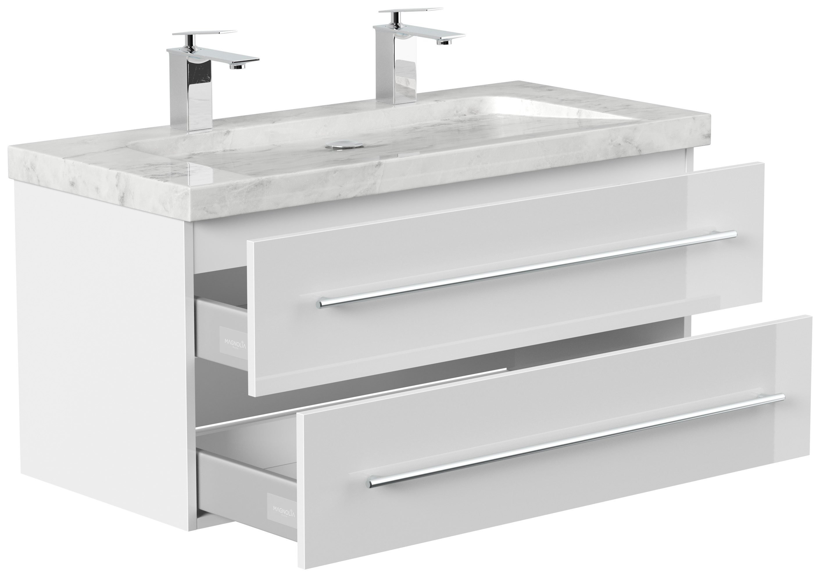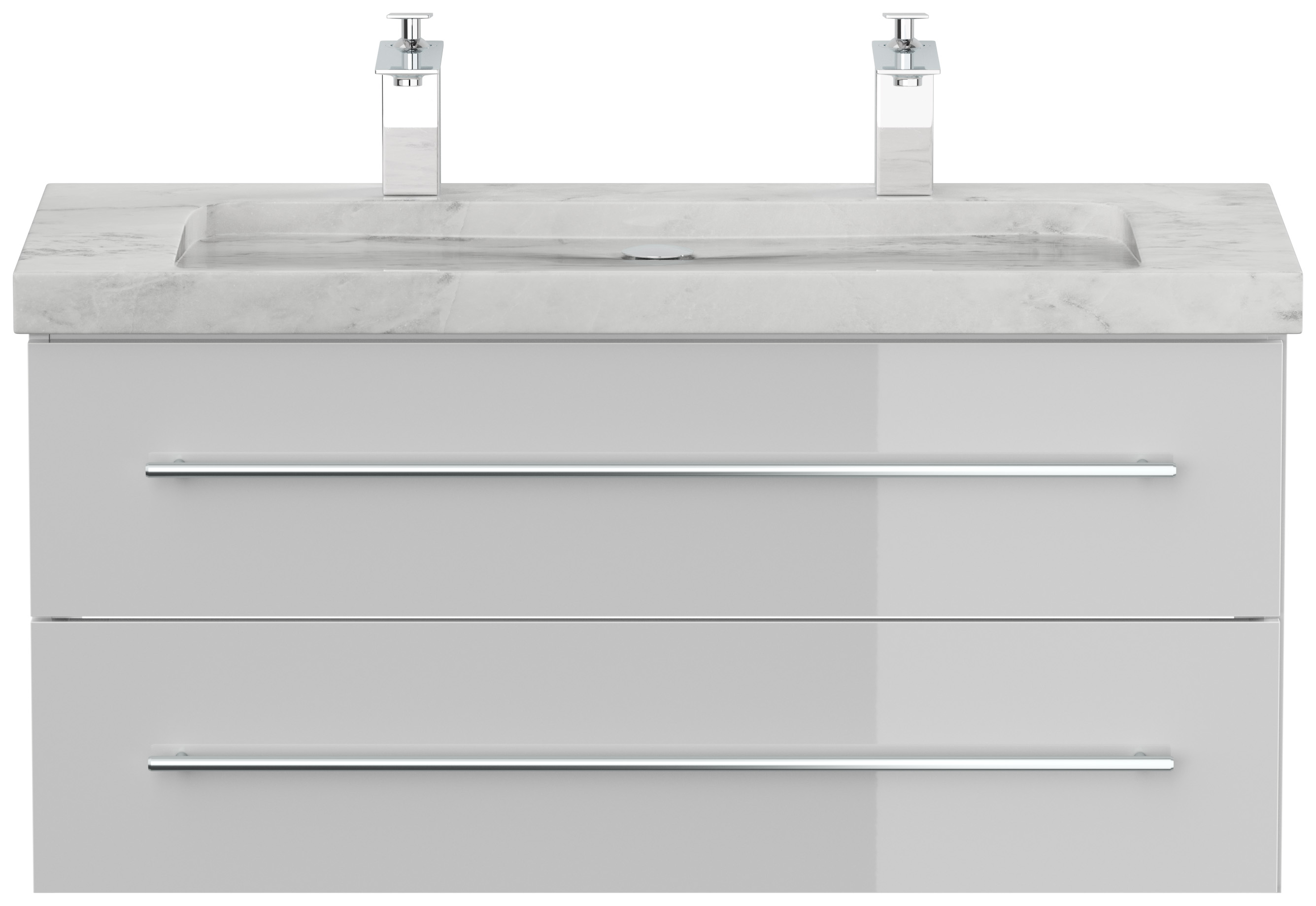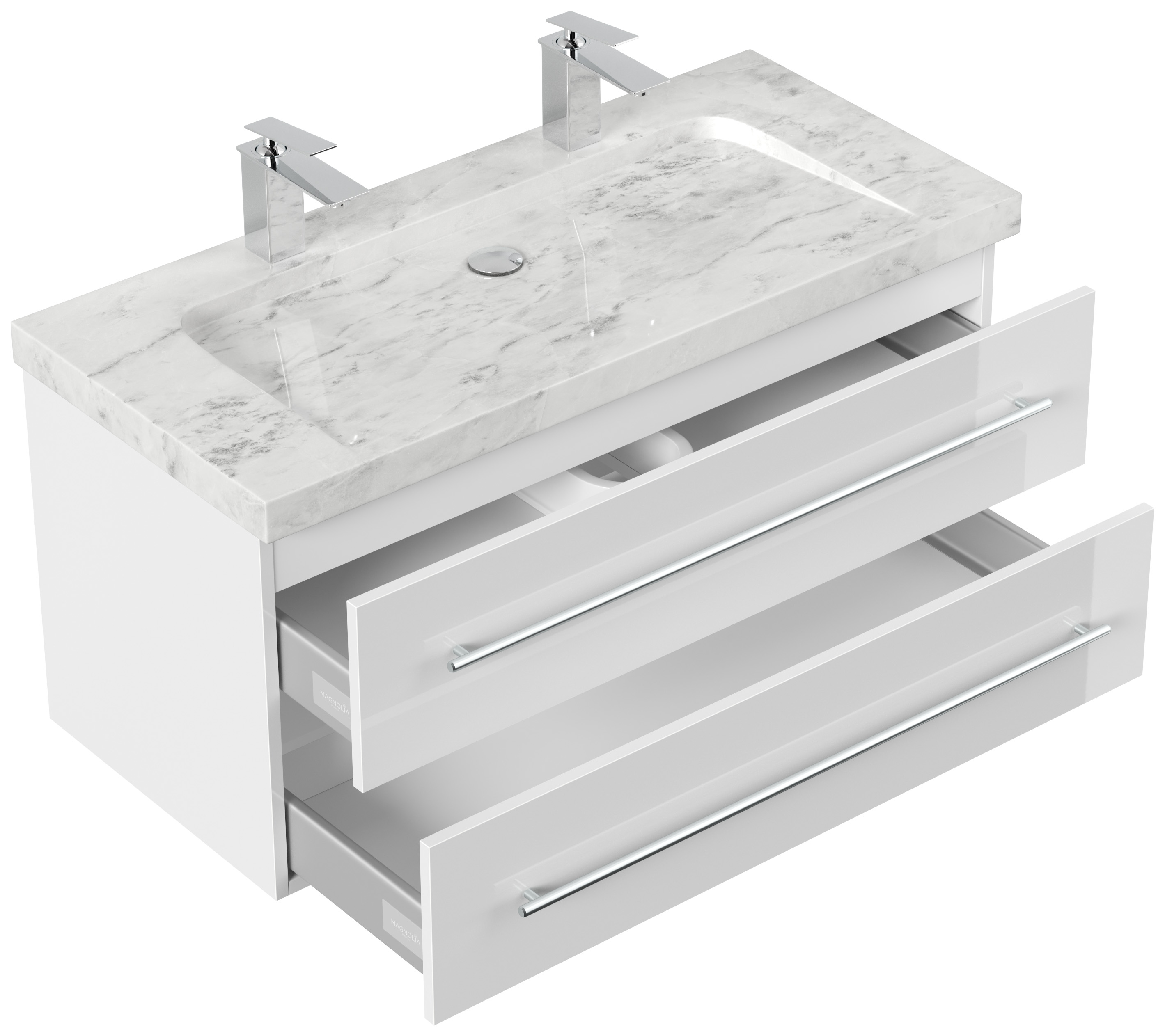 Badmöbel Marmor Carrara White Damo 100 cm 2 Hahnlöcher SoftClose weiß hochglanz