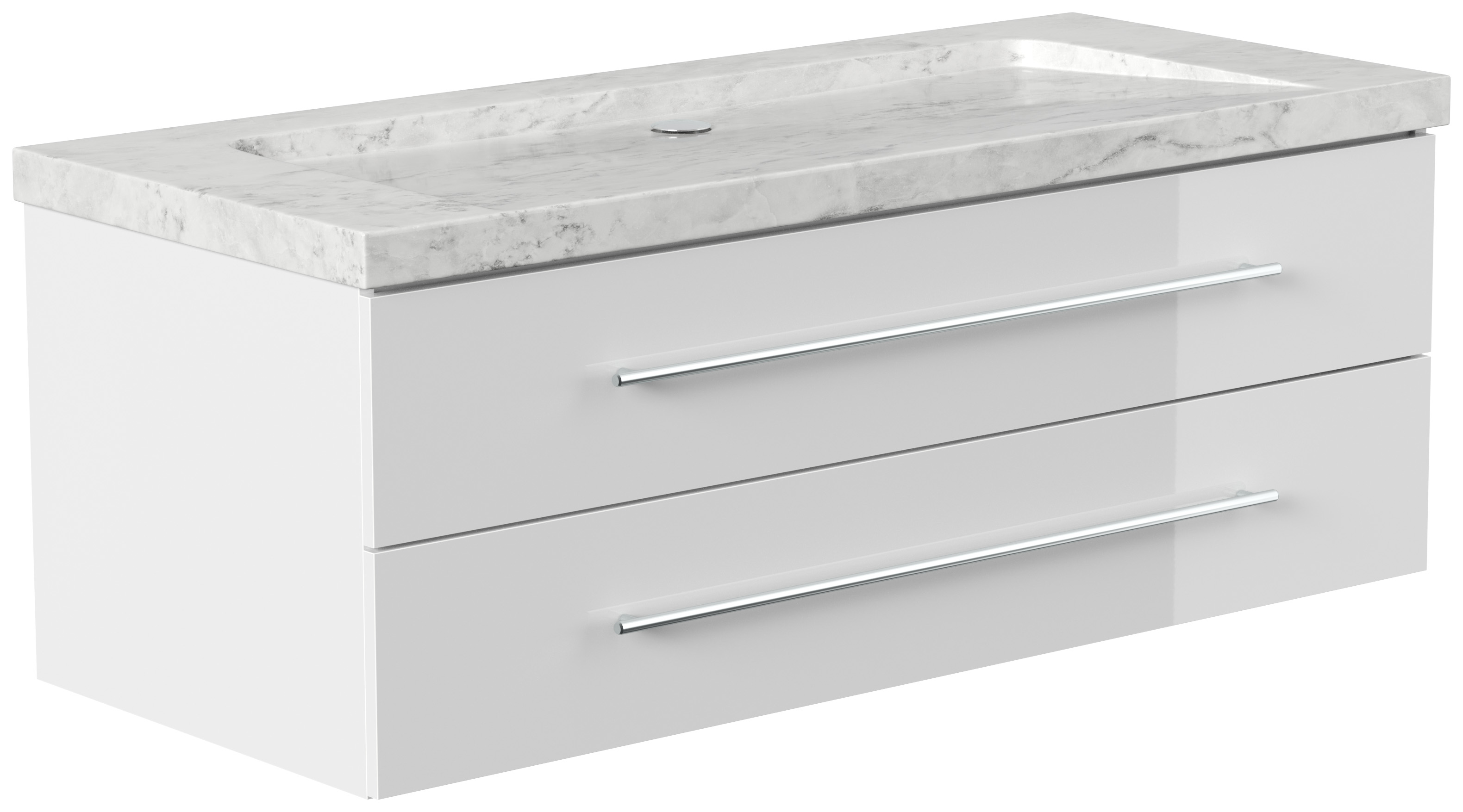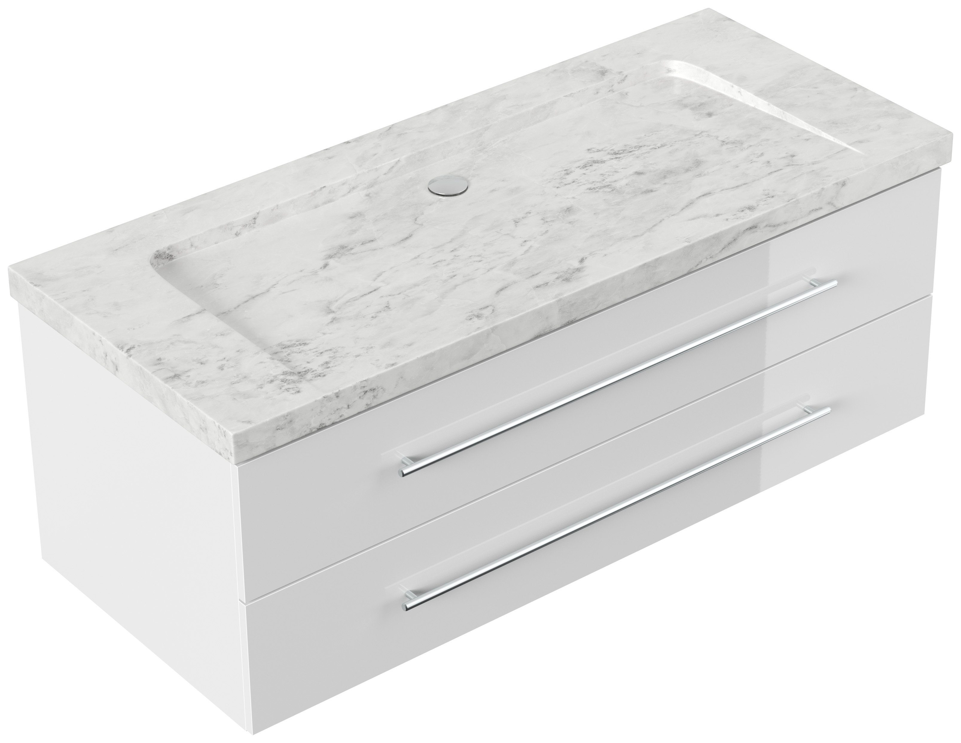 Badmöbel Marmor Carrara White Damo 130 cm ohne Hahnloch SoftClose weiß hochglanz
