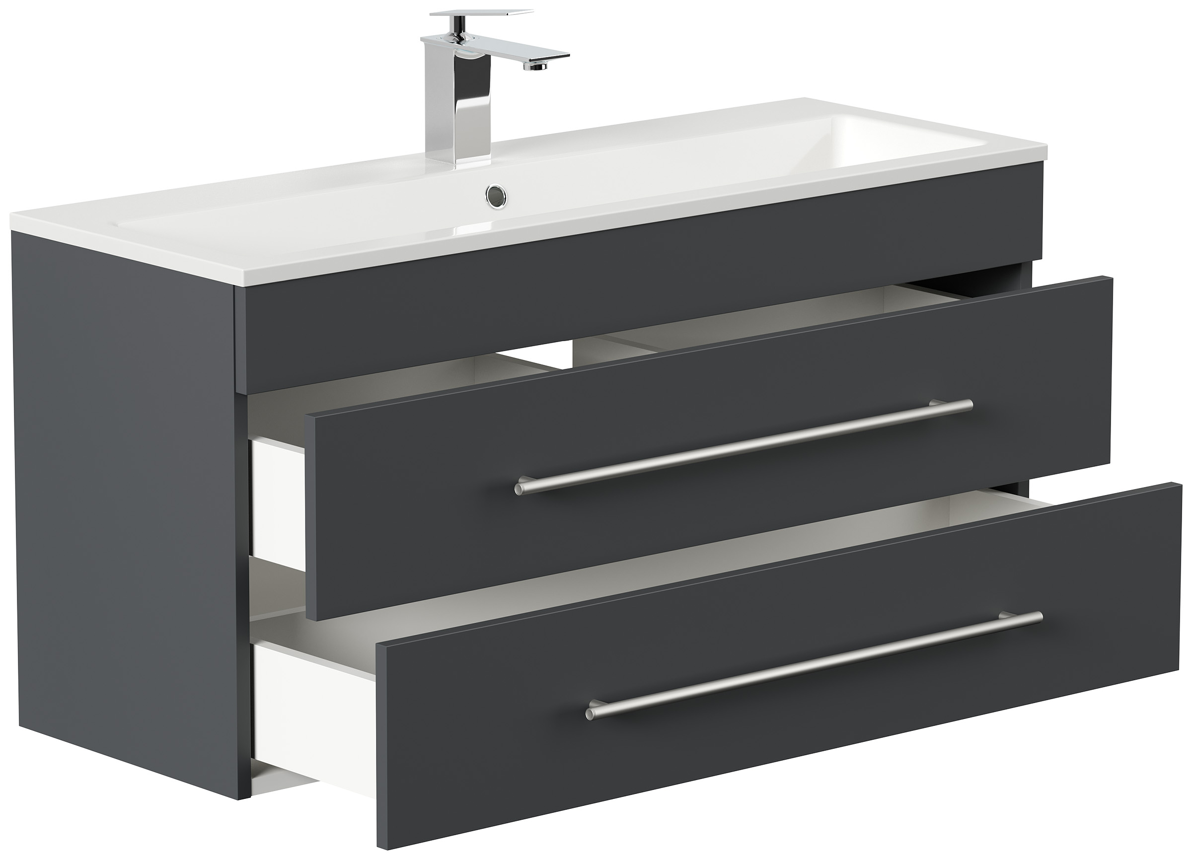 Badmöbel Mars 1000 SlimLine 100x36cm mit 2 SoftClose Schubladen grafit