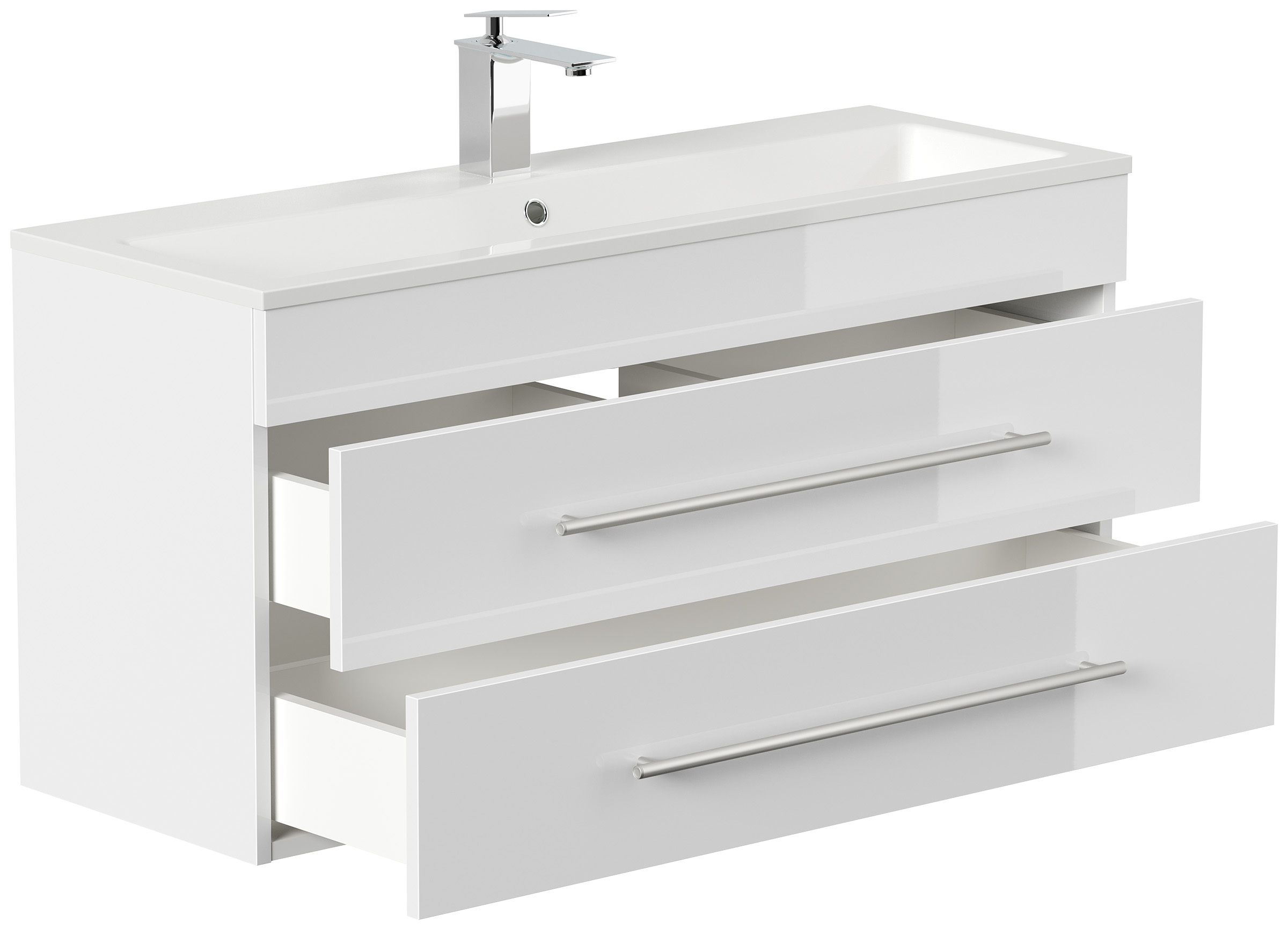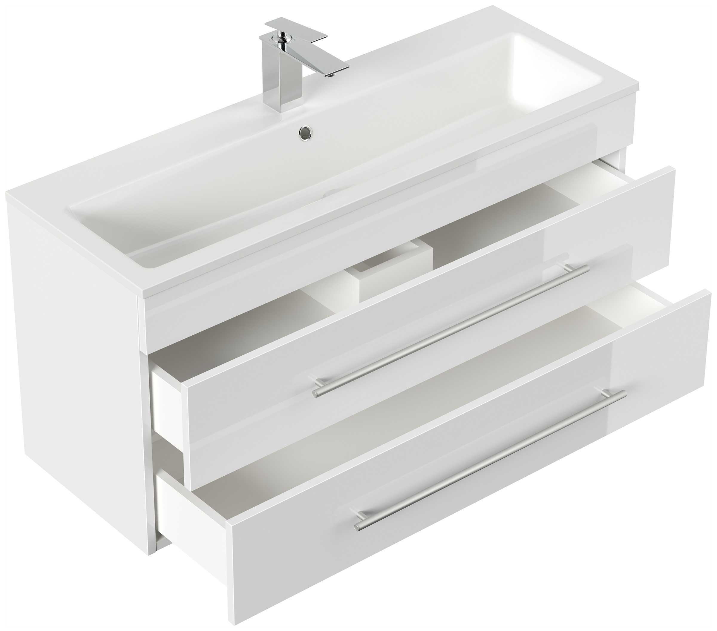 Badmöbel Mars 1000 SlimLine 100x36cm mit 2 SoftClose Schubladen weiss hochglanz