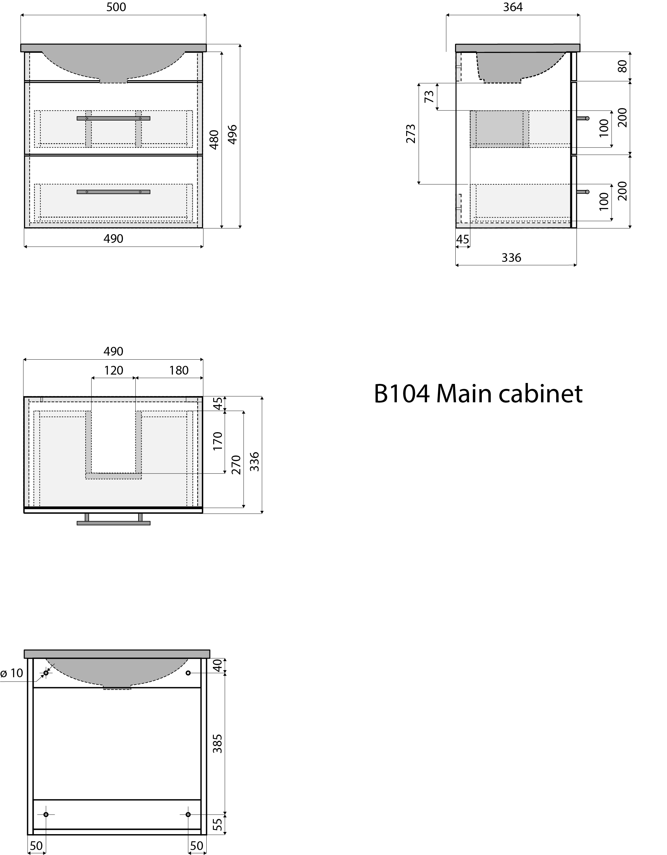 Badmöbel Mars 500 SlimLine 50x34cm mit 2 SoftClose Schubladen grafit