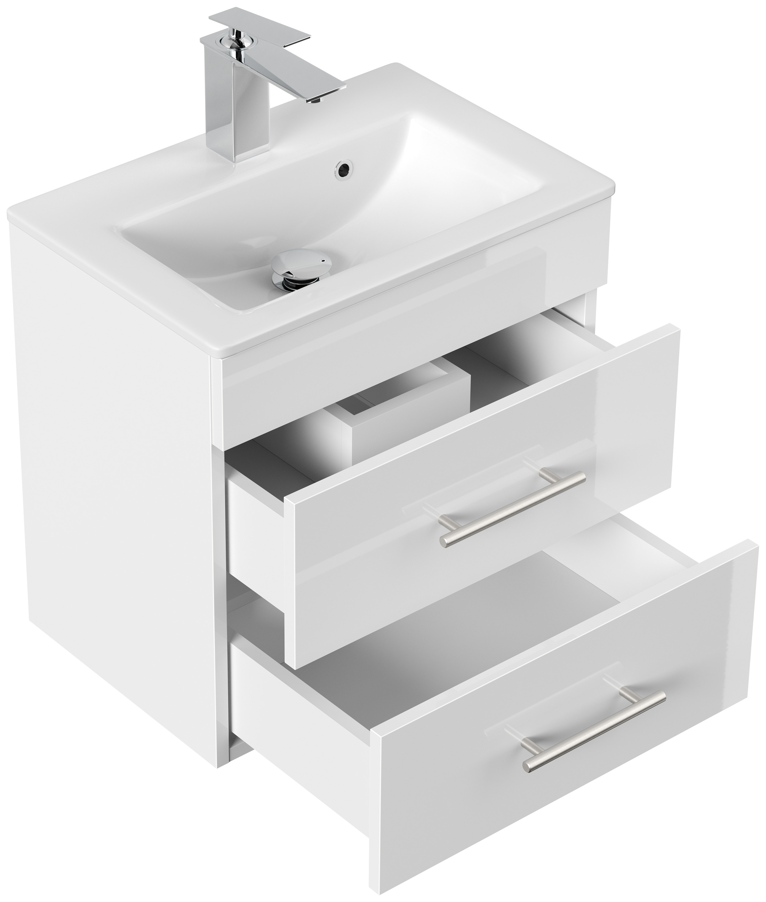 Badmöbel Mars 500 SlimLine 50x34cm mit 2 SoftClose Schubladen weiss hochglanz
