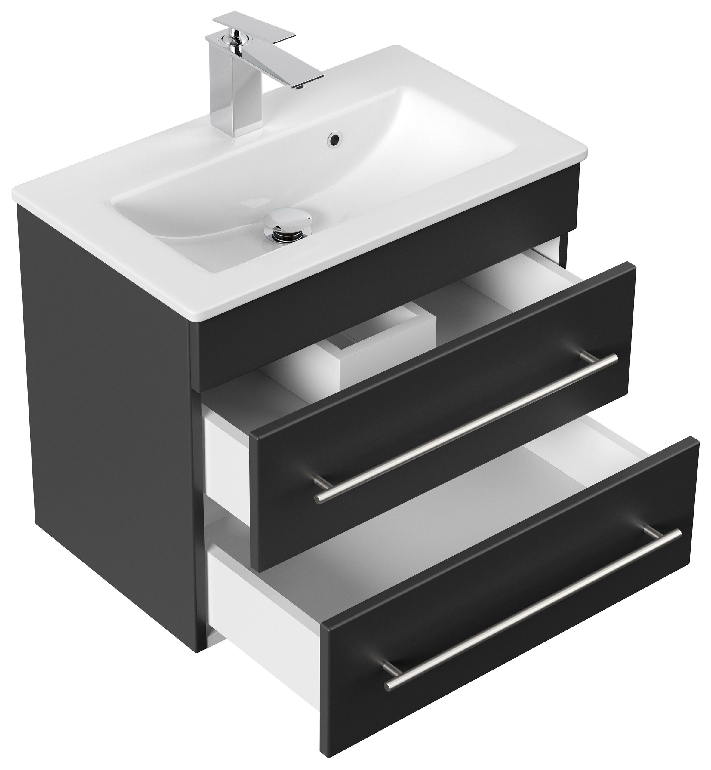 Badmöbel Mars 600 SlimLine 2-tlg - LED Spiegel - 2 SoftClose Schubladen schwarz