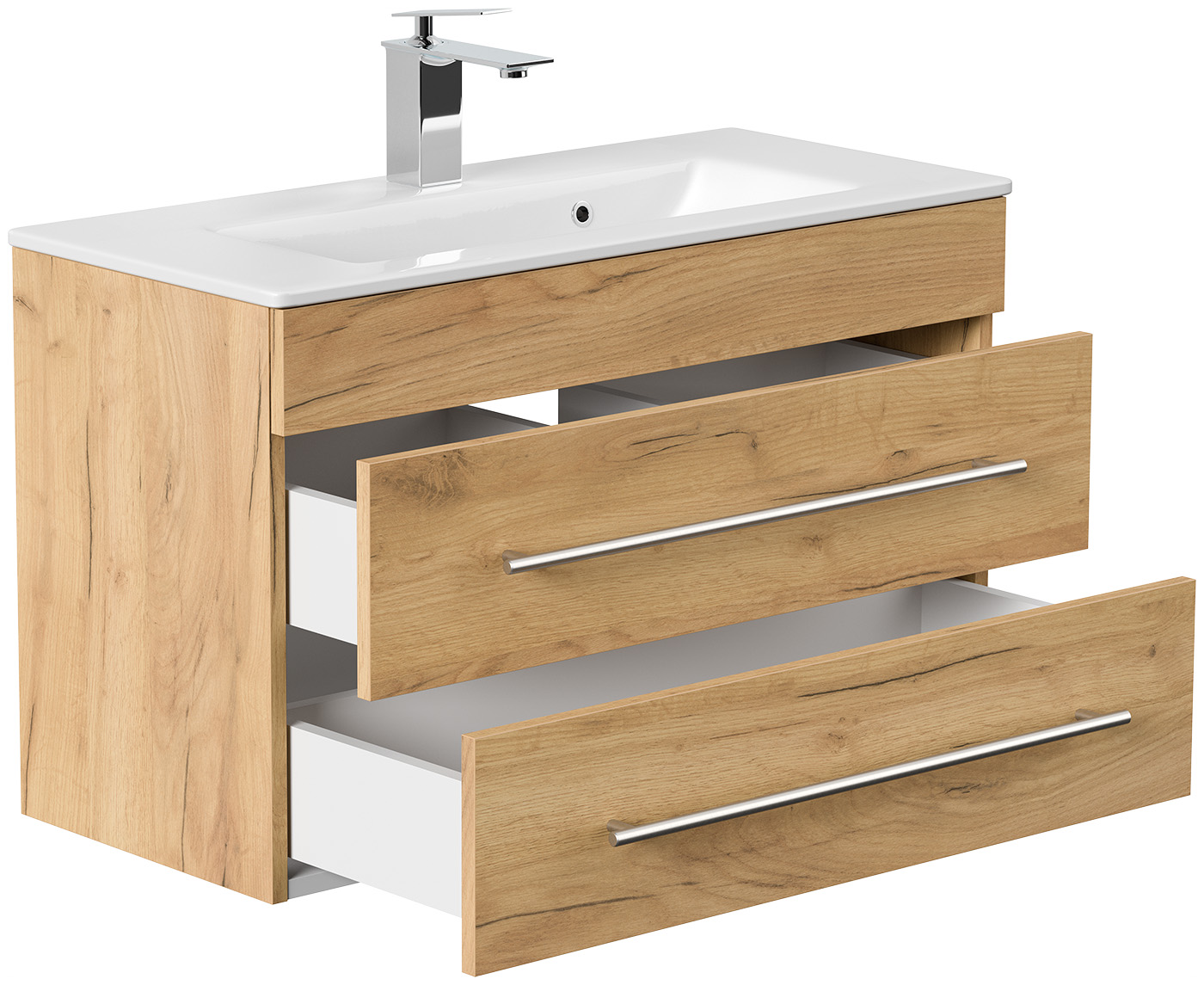 Badmöbel Mars 800 SlimLine 80x36cm mit 2 SoftClose Schubladen eiche gold