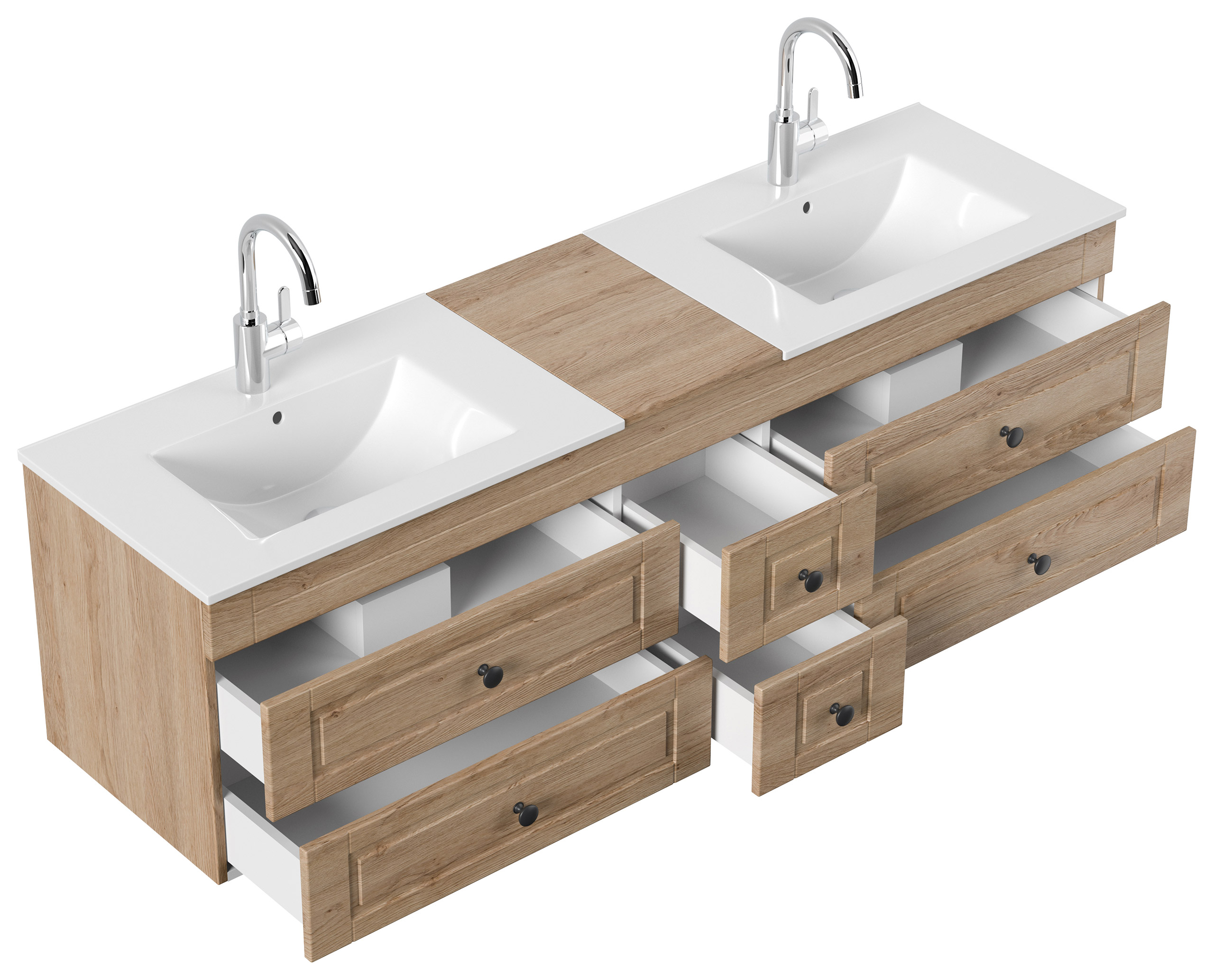 Badmöbel Milano XL Cottage Doppel-Waschbecken SoftClose eiche hell