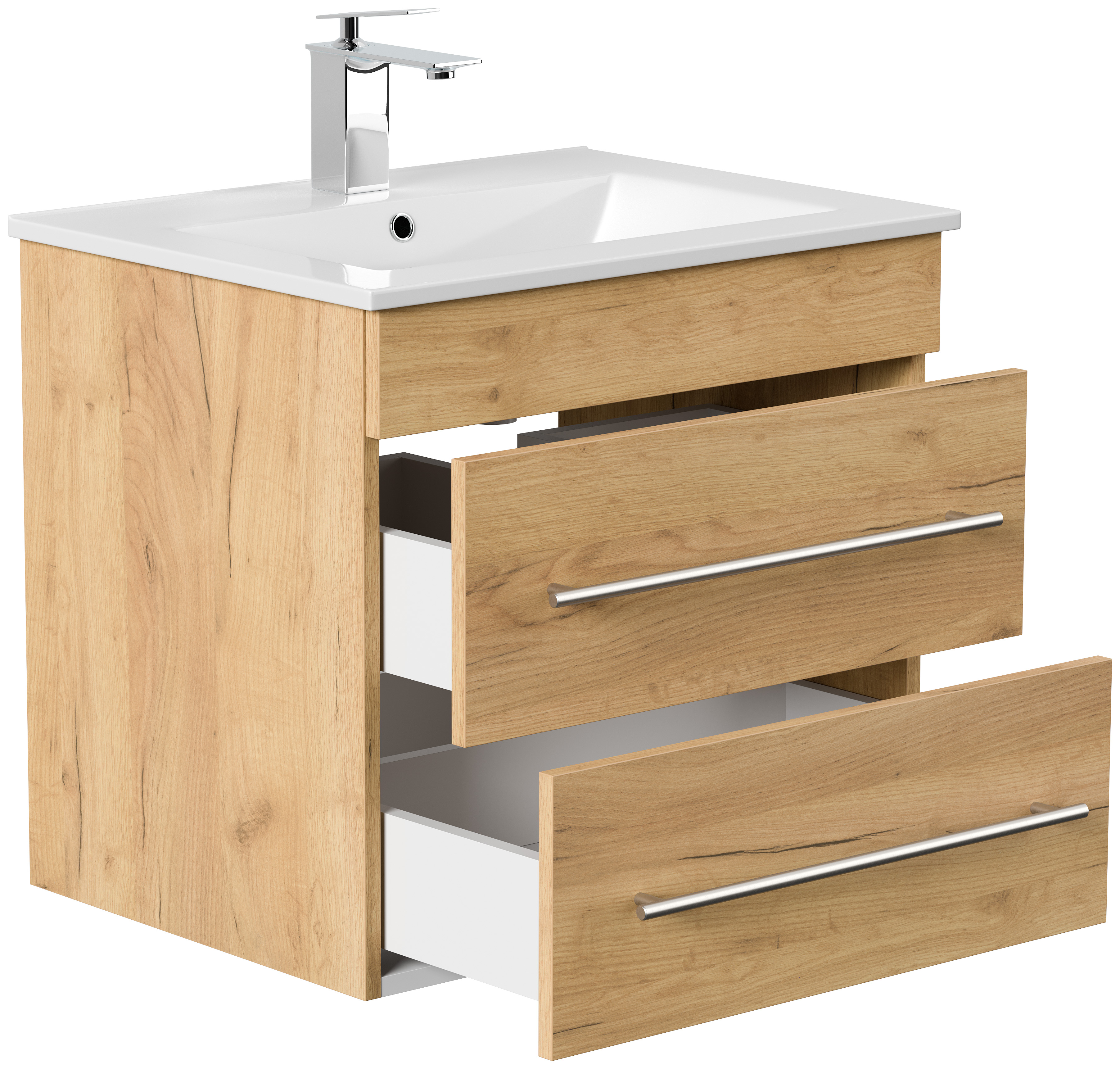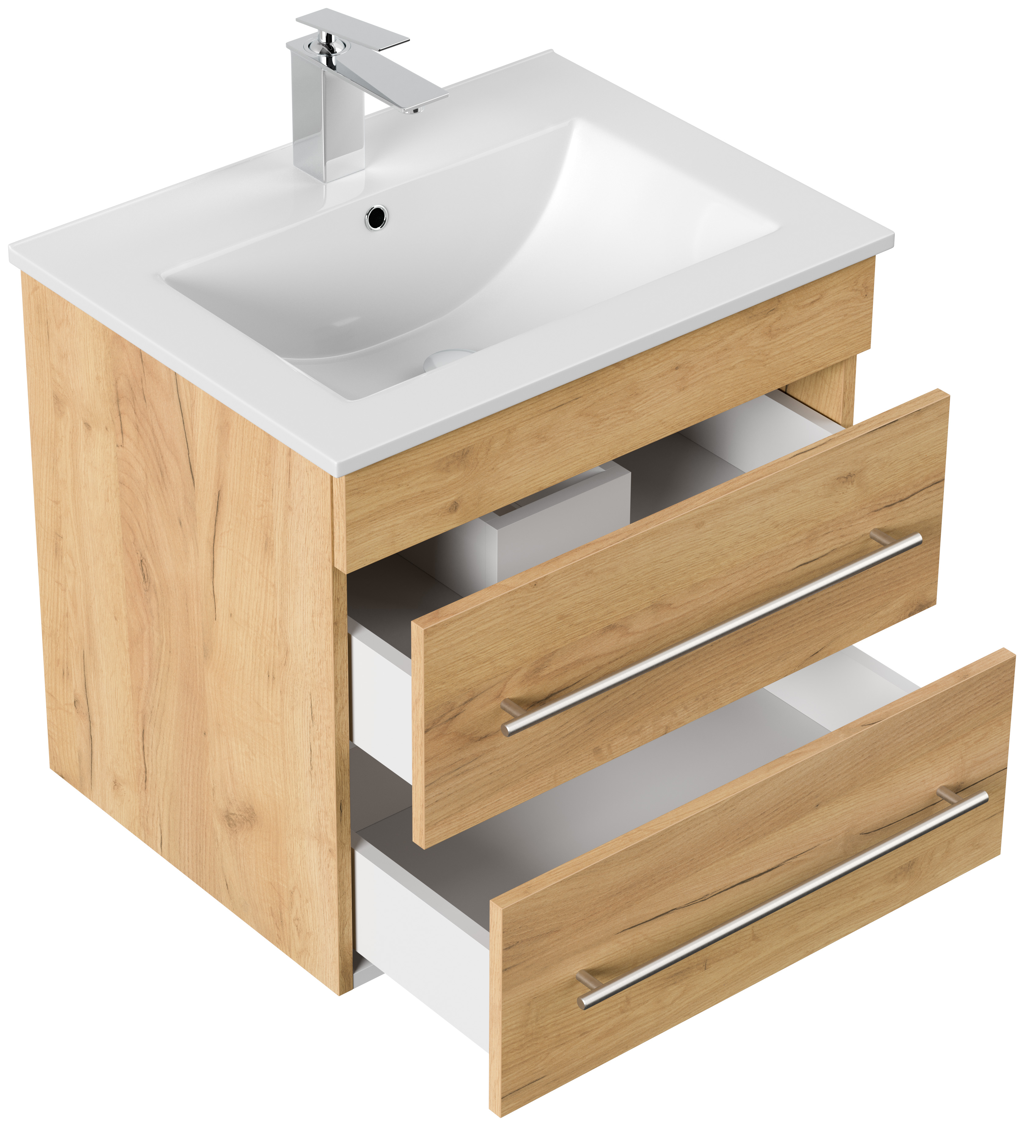 Badmöbel Waschtisch Unterschrank 2 Schubladen mit Softclose (B/H/T) 59/54/45,6 cm.