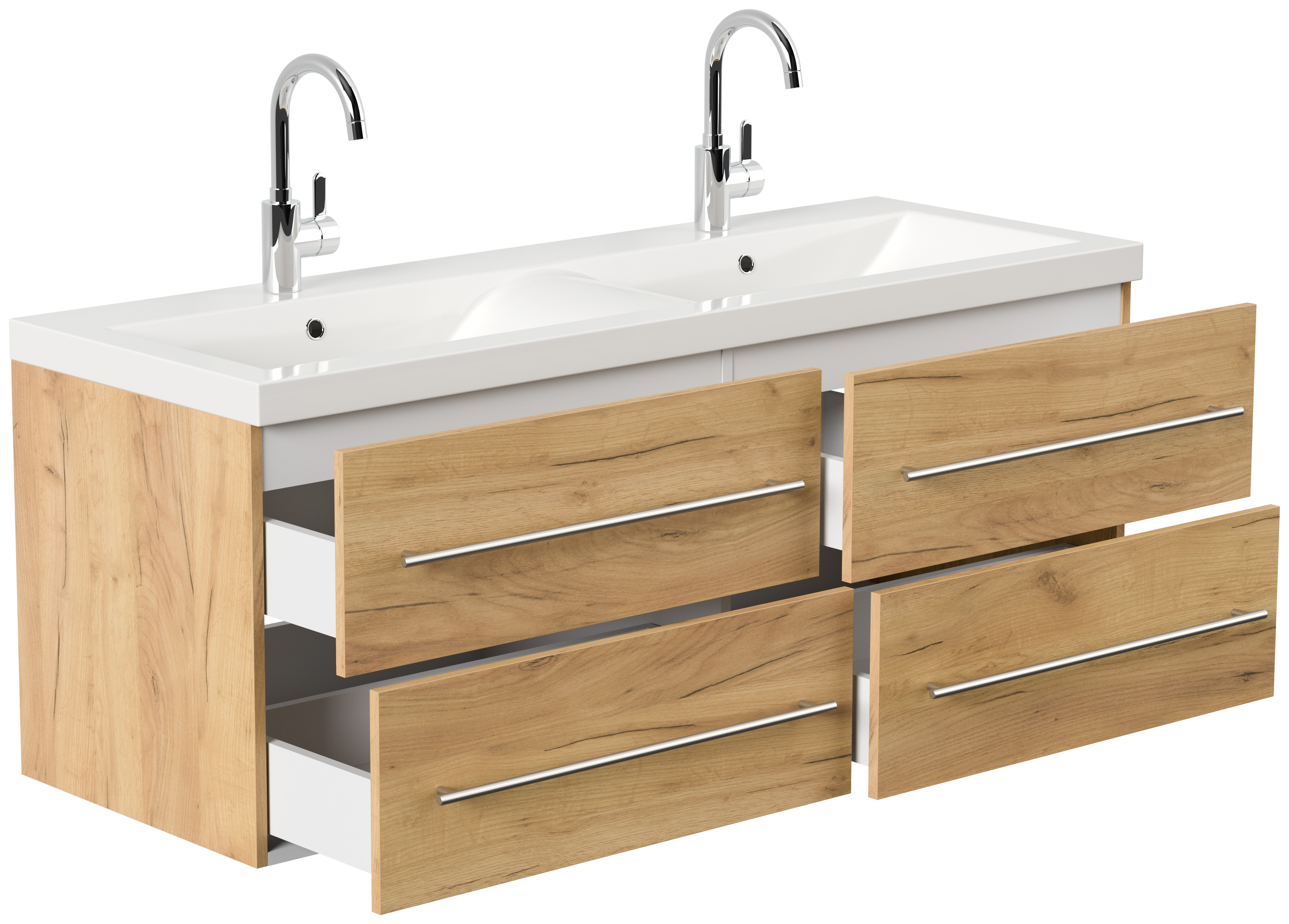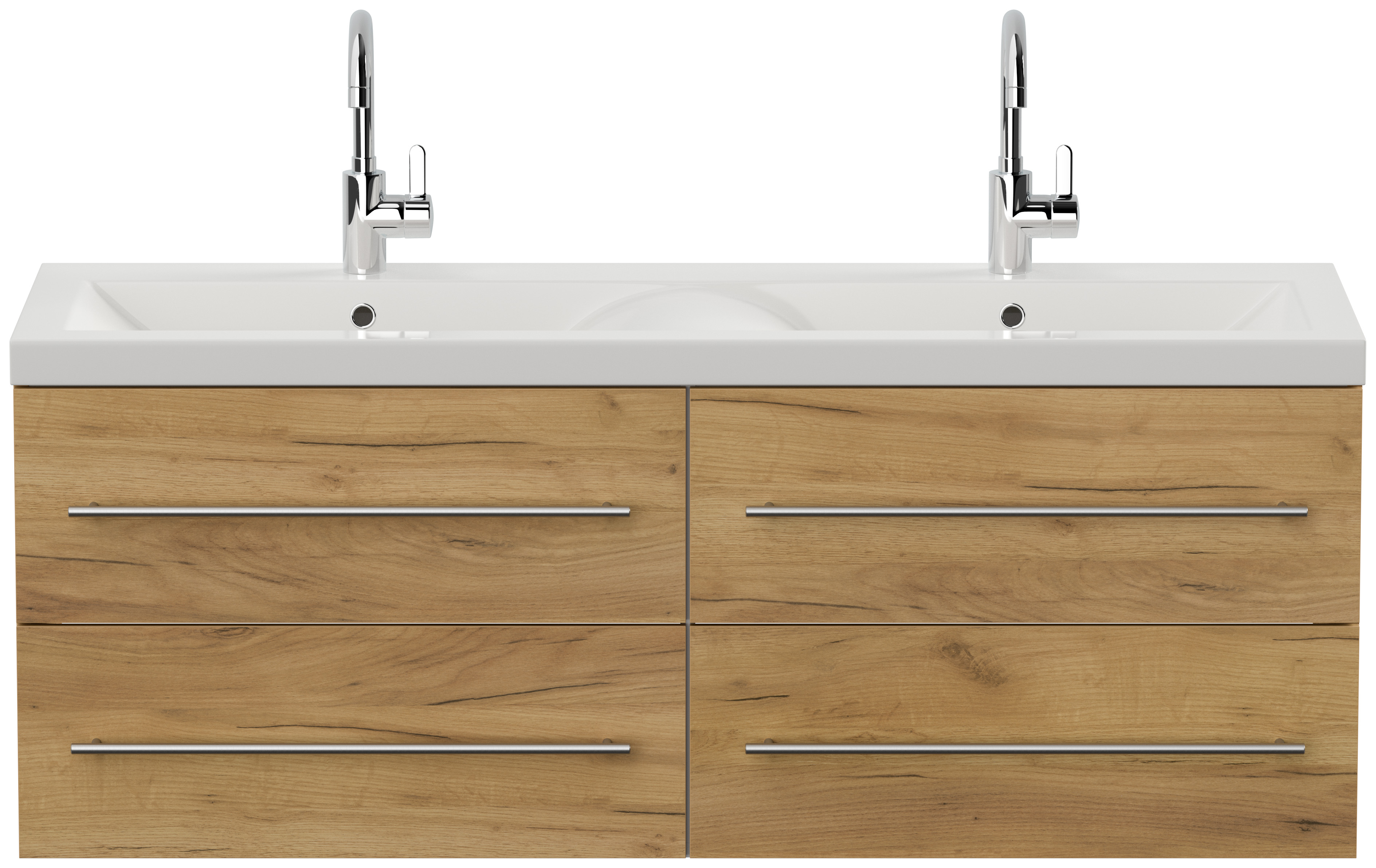Badmöbel inkl. Waschbecken (B/H/T) 143,2/56,6/50,5 cmWaschtischunterschrank ohne Becken mit 4 Softclose Schubladen (B/H/T) 143/51,6/50,2cm Mineralguss Waschbecken in geschwungenem Design (B/H/T) 143,2/5/50,5cmMontage-Empfehlung: