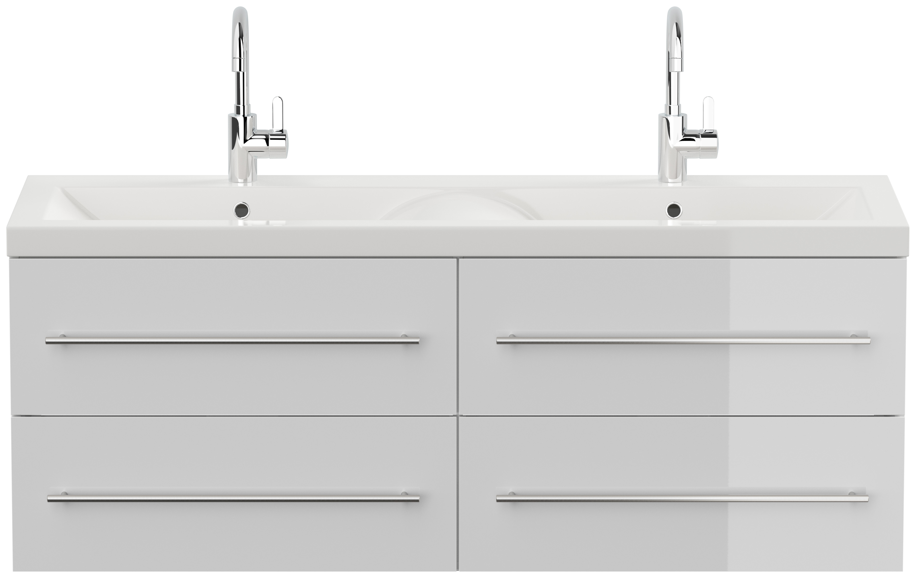 Badmöbel inkl. Waschbecken (B/H/T) 143,2/56,6/50,5 cmWaschtischunterschrank ohne Becken mit 4 Softclose Schubladen (B/H/T) 143/51,6/50,2cm Mineralguss Waschbecken in geschwungenem Design (B/H/T) 143,2/5/50,5cmMontage-Empfehlung: