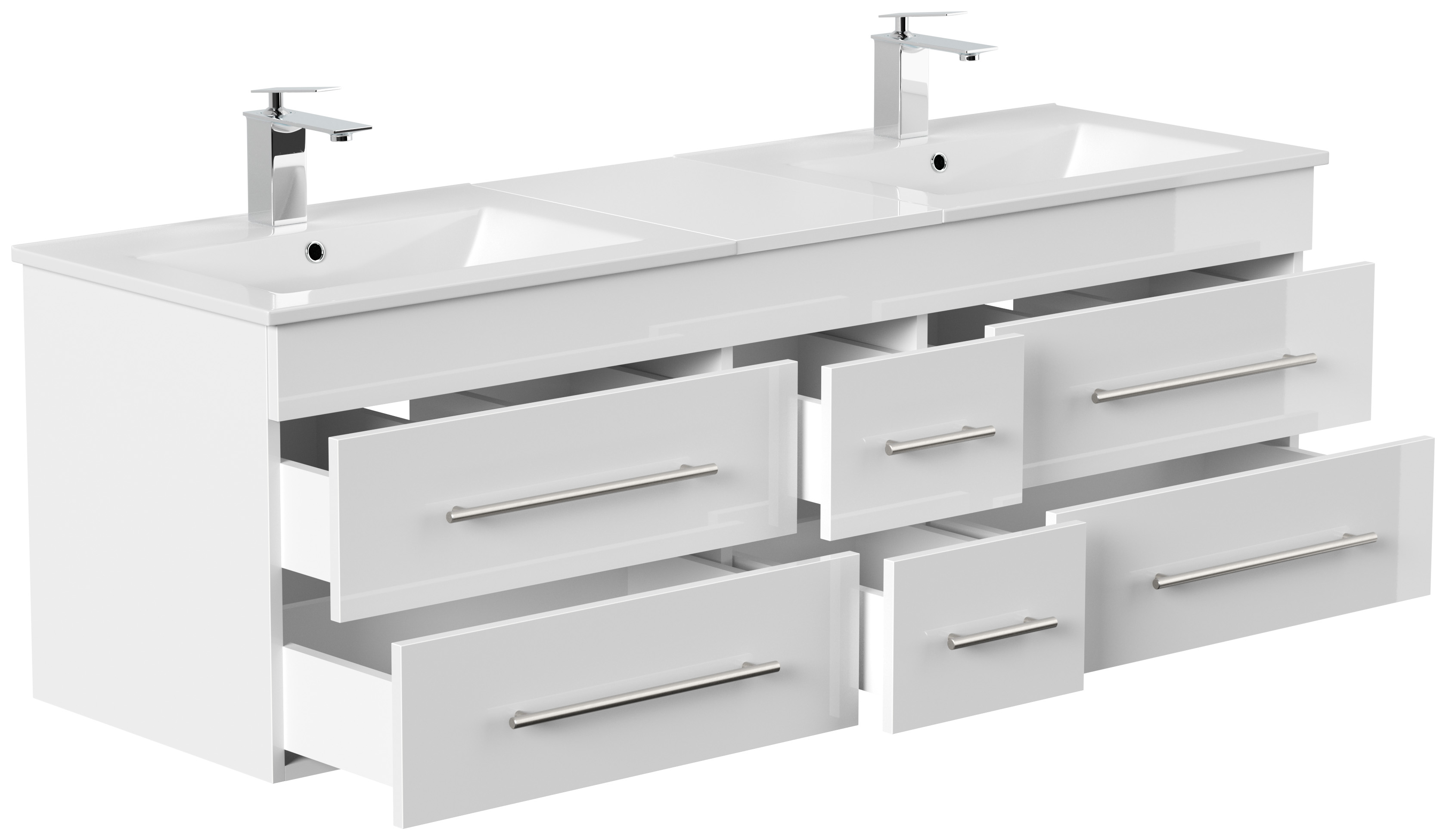 Badmöbel inkl. Waschbecken (B/H/T) 153/51,2/46,5 cmWaschtischunterschrank ohne Becken mit 6 Softclose Schubladen (B/H/T) 149,9/49,6/46,6cm