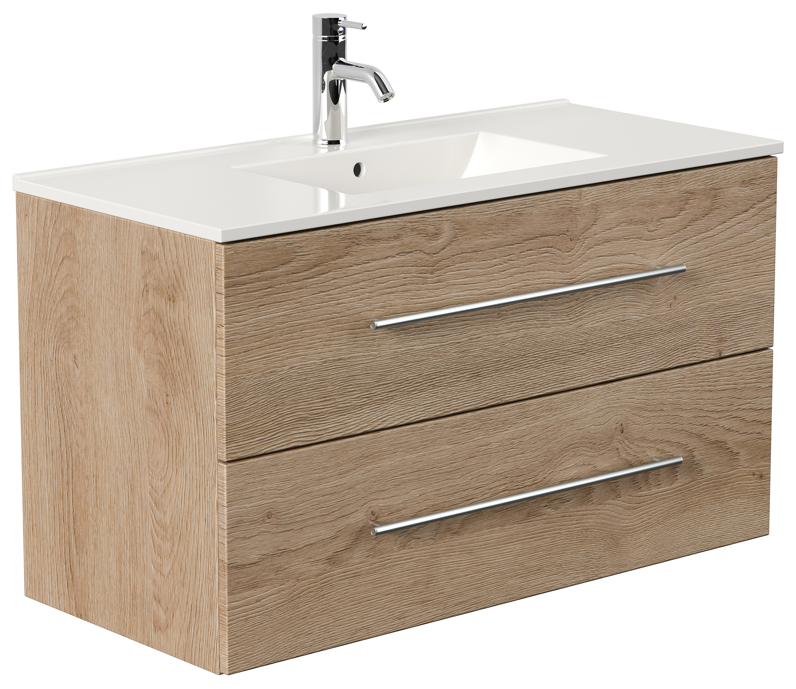 Badmöbel-Set Firenze 100 2 tlg. inkl. Spiegelschrank SoftClose eiche hell