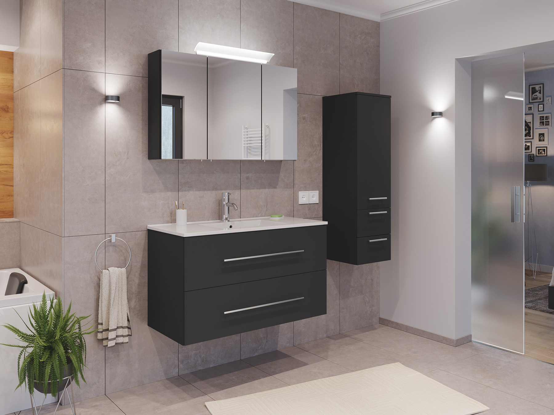 Badmöbel Set Firenze 100 3tlg. Spiegelschrank & Seitenschrank grafit