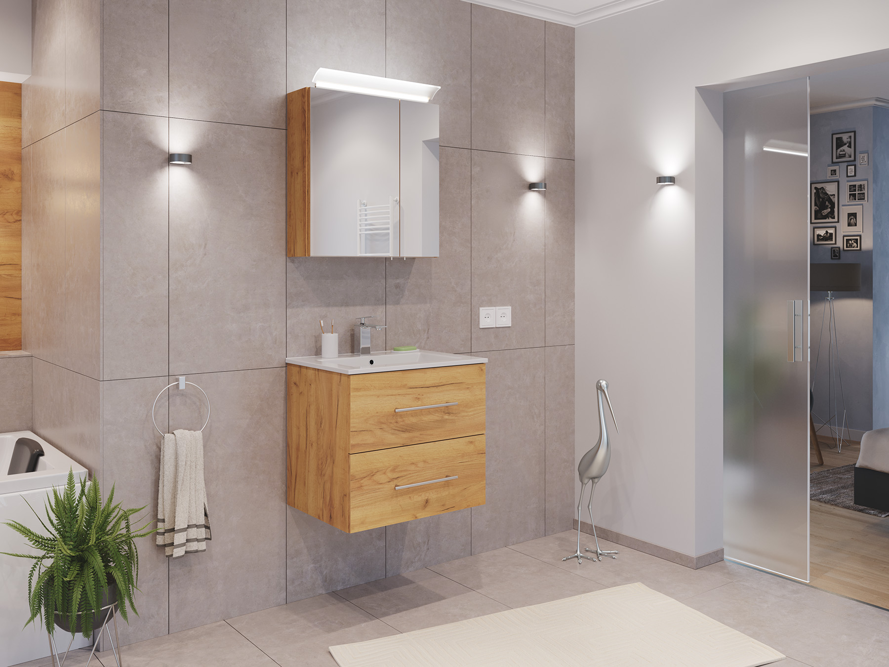 Badmöbel Set Firenze 60 2tlg. Spiegelschrank Softclose eiche gold
