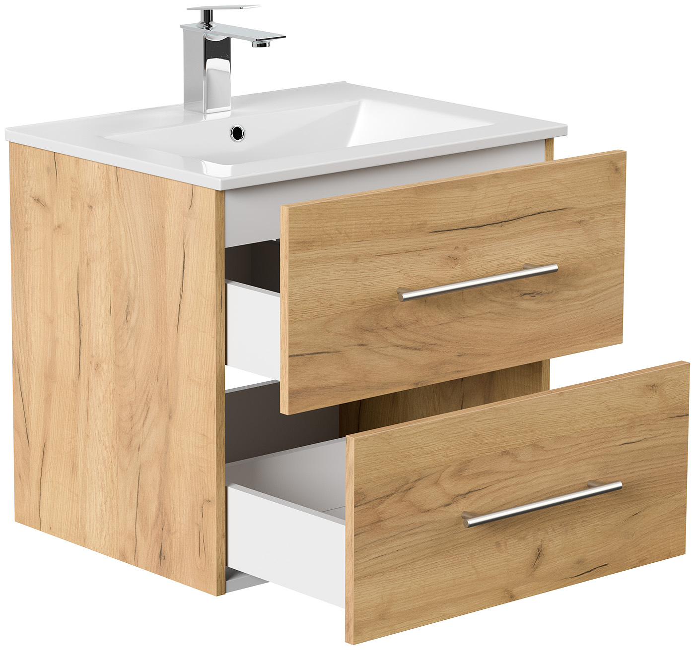 Badmöbel Waschtisch Unterschrank 2 Schubladen mit Softclose (B/H/T) 60/54/46 cm.