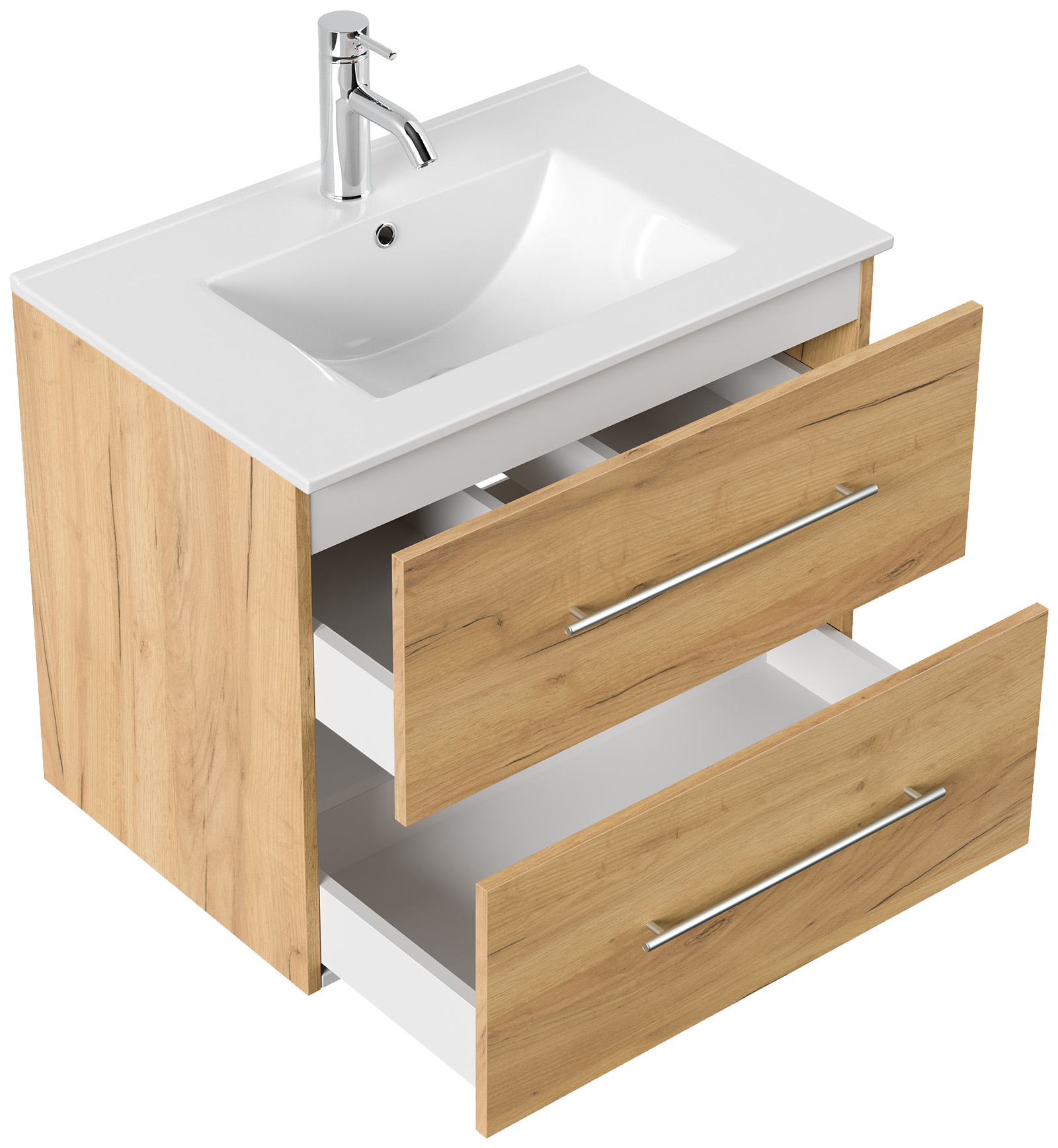 Badmöbel Waschtisch Unterschrank 2 Schubladen mit Softclose (B/H/T) 70/52/46 cm.