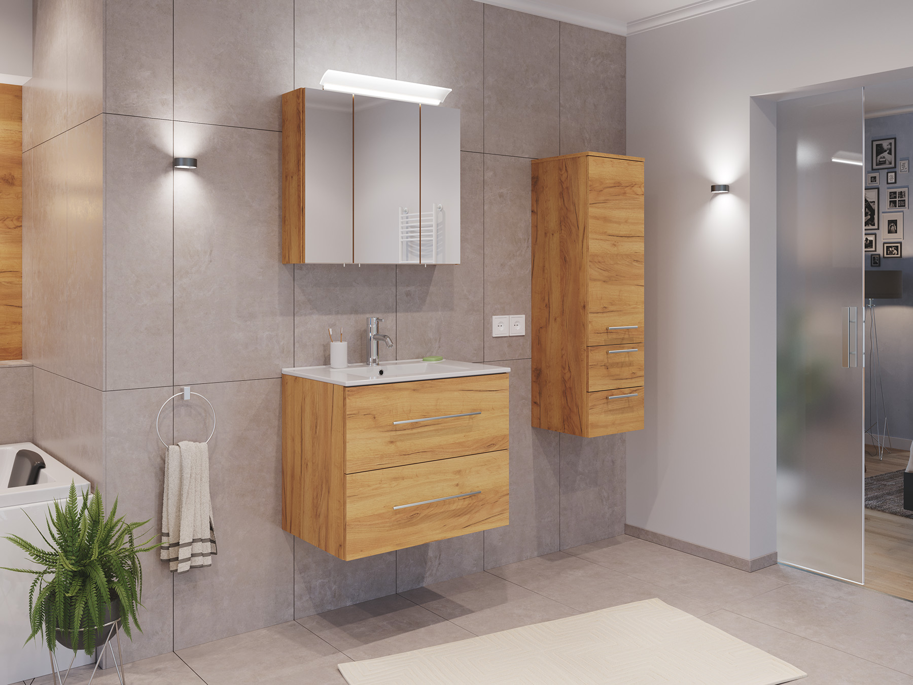 Badmöbel Set Firenze 70 3tlg. Spiegelschrank & Seitenschrank eiche gold