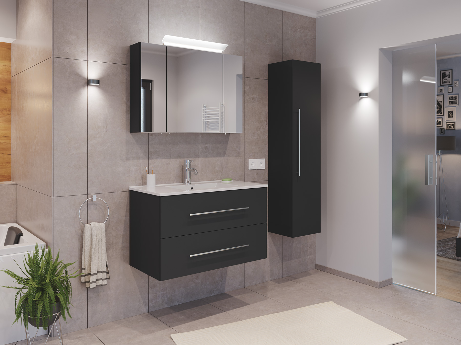 Badmöbel Set Firenze 90 3tlg. Spiegelschrank & Hochschrank grafit