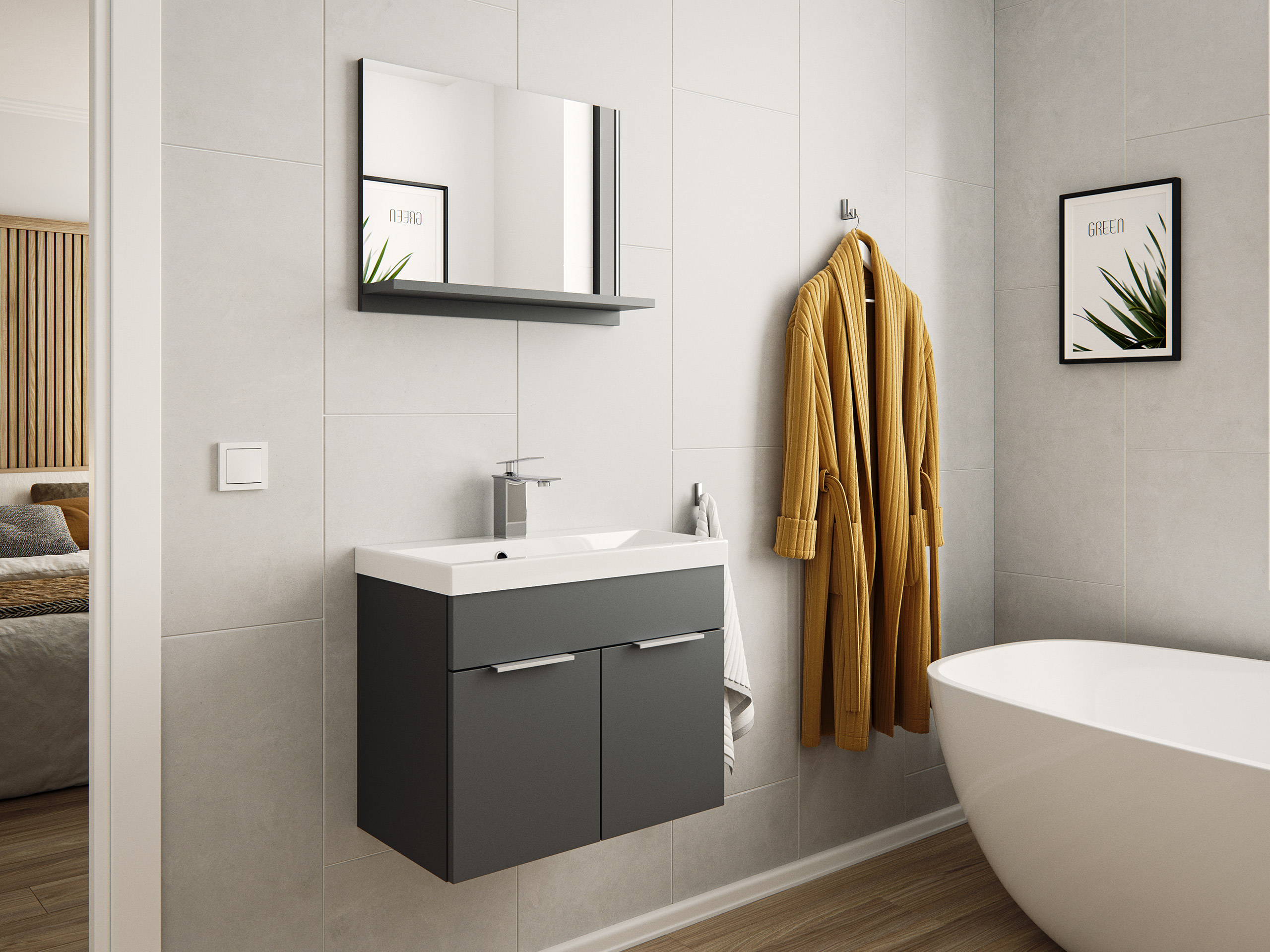 Badmöbel-Set Slimline Vega 2tlg mit Spiegel SoftClose grafit ST/grafit matt
