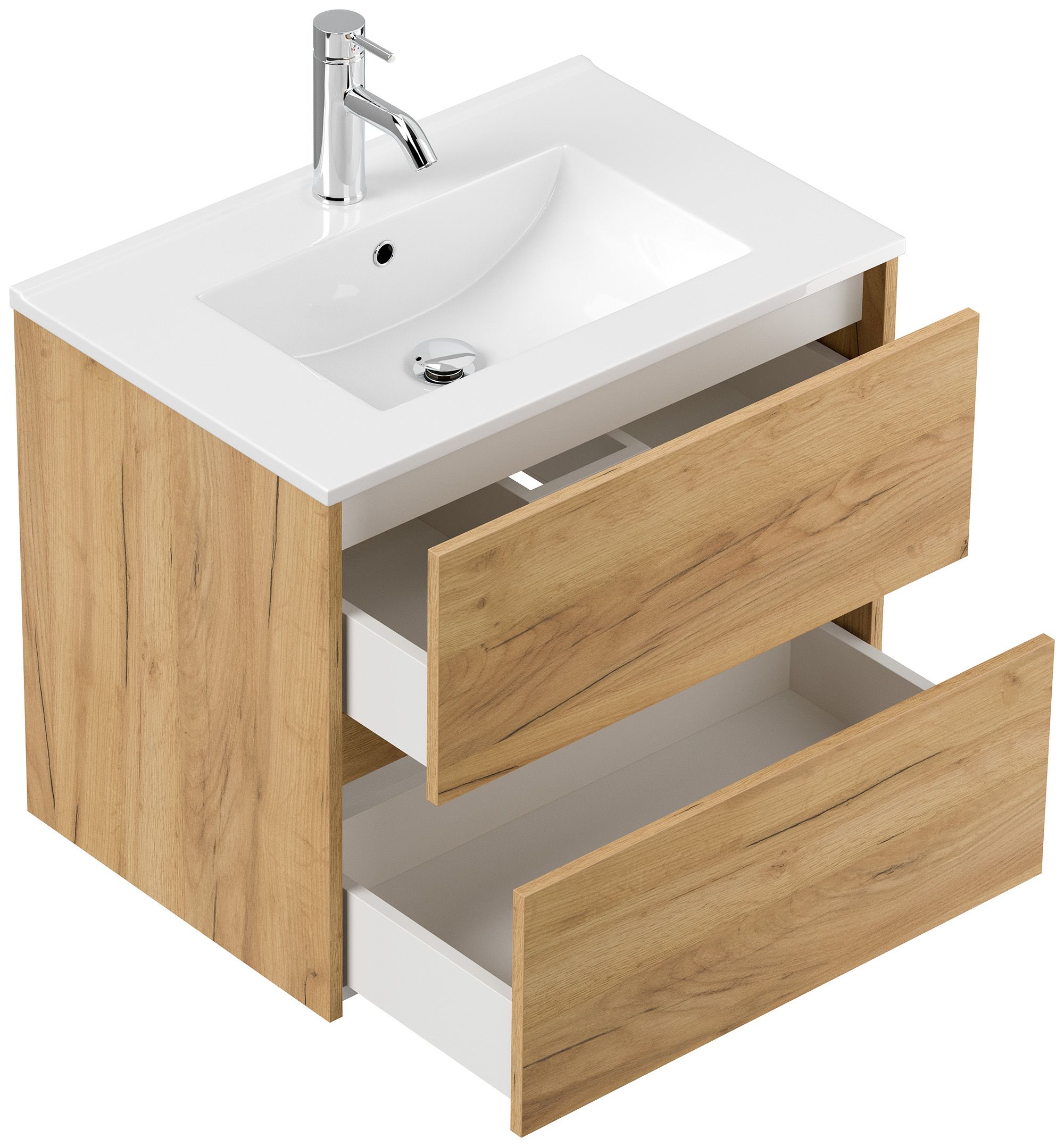 Badmöbel-Unterschrank Taifum mit 2 Softclose Schubladen und Waschbecken Keramik mit Überlauf. Maße Unterschrank mit Waschbecken (B/H/T) 71/58,7/46,5 cmUnterschrank (B/H/T) 70/56,9/46 cm