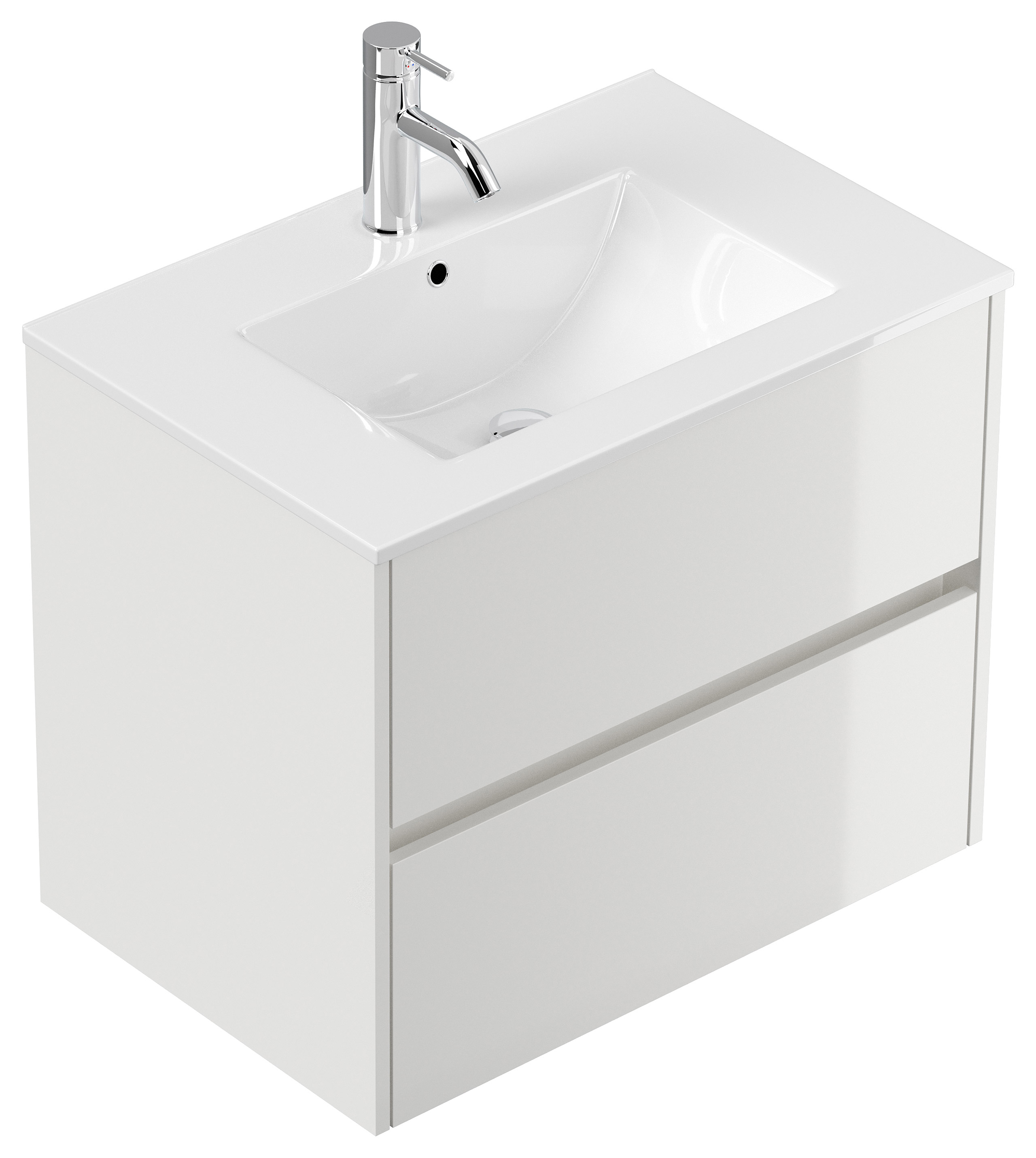 Badmöbel-Unterschrank Taifum mit 2 Softclose Schubladen und Waschbecken Keramik mit Überlauf. Maße Unterschrank mit Waschbecken (B/H/T) 71/58,7/46,5 cmUnterschrank (B/H/T) 70/56,9/46 cm