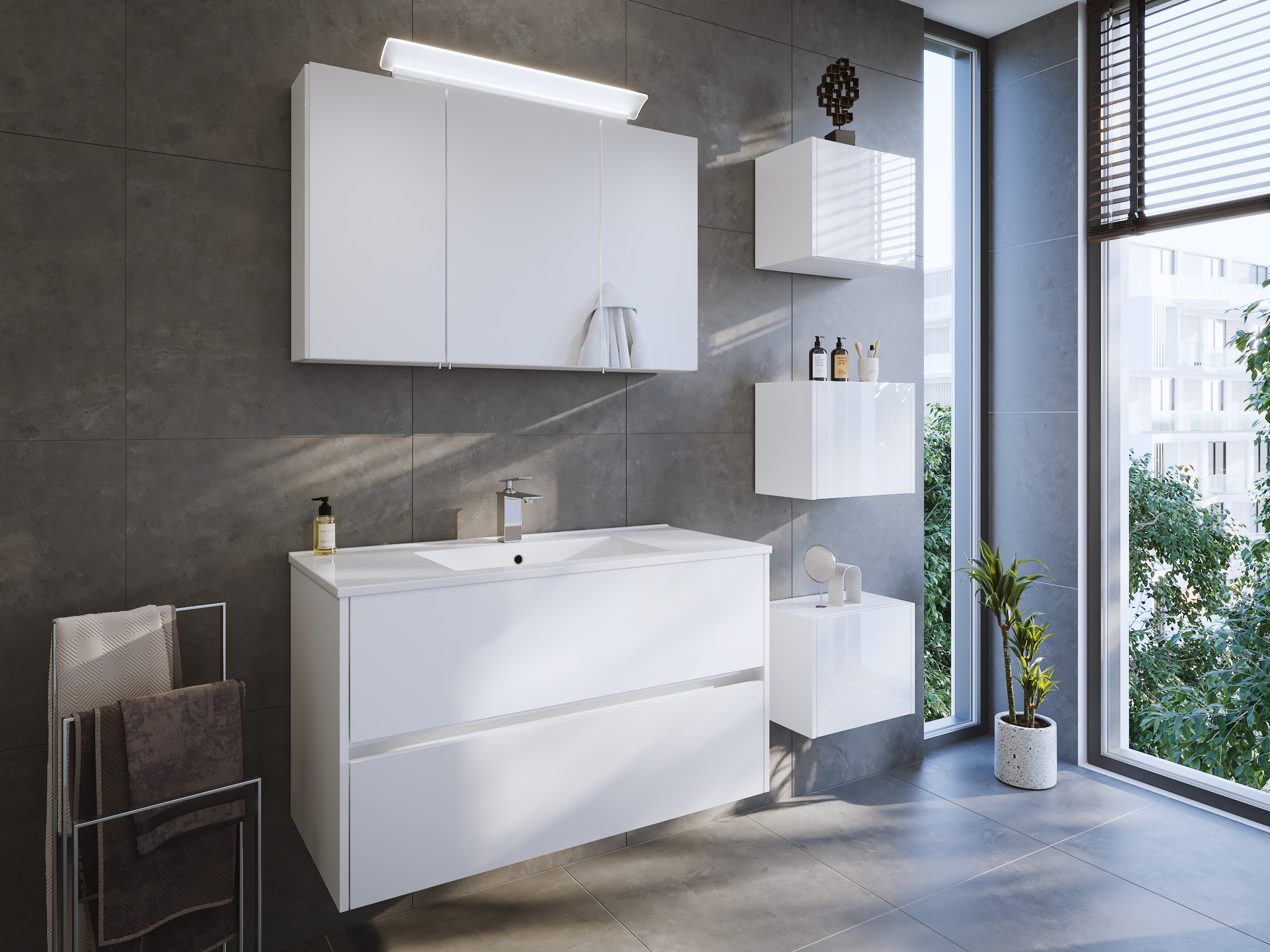 Badmöbel Set Taifun 3tlg. 100 cm mit Spiegelschrank & 3er Boxen weiß Hgl