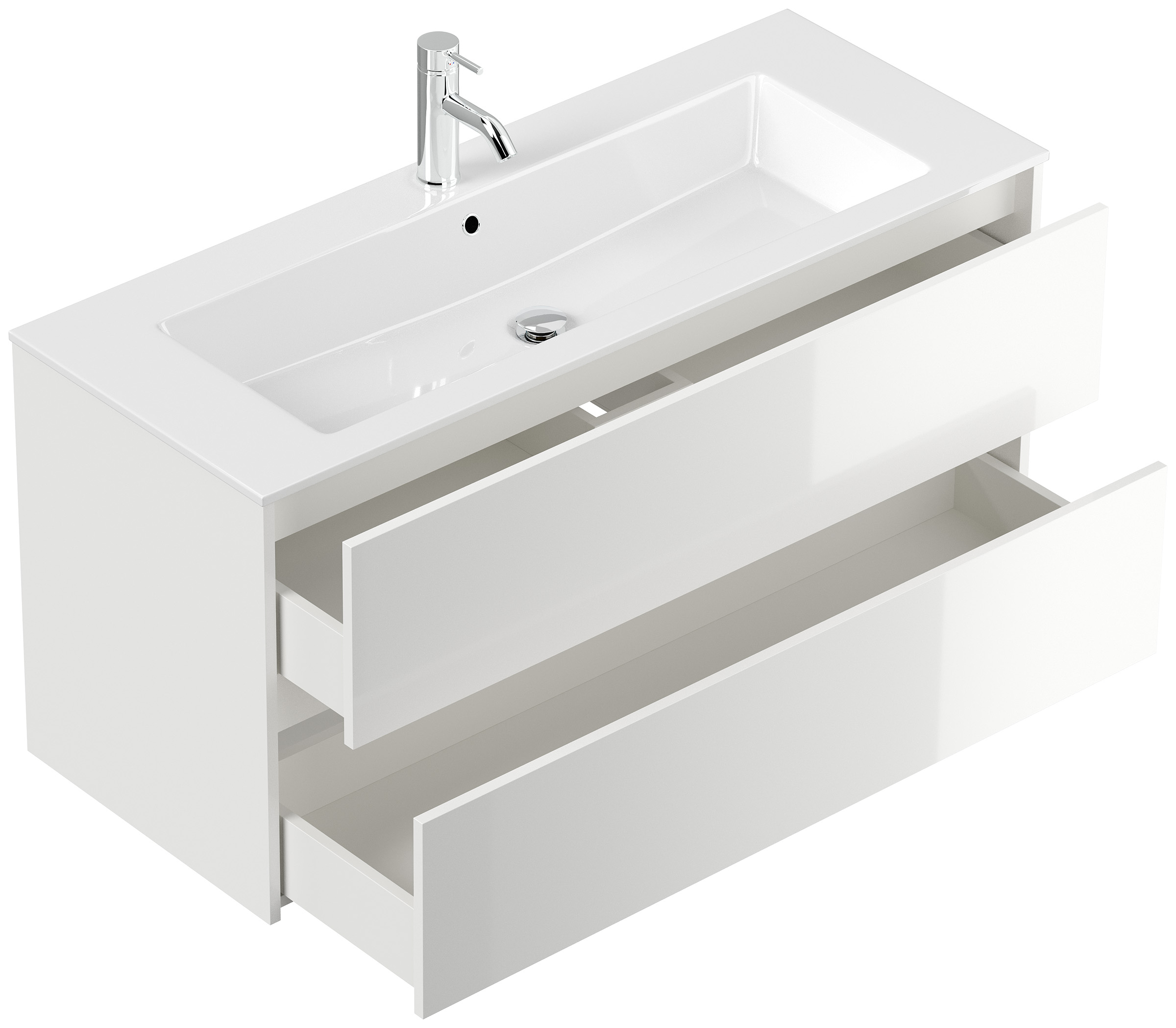 Badmöbel-Unterschrank Taifum mit 2 Softclose Schubladen und Waschbecken Mineralguss mit Überlauf und einem Hahnloch (B/H/T) 120/58,5/46,5 cmUnterschrank (B/H/T) 119/56,9/46 cm