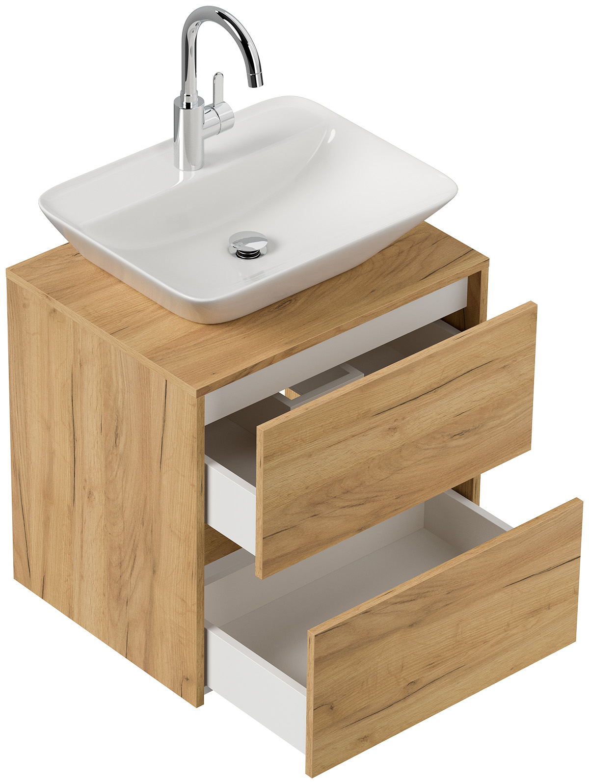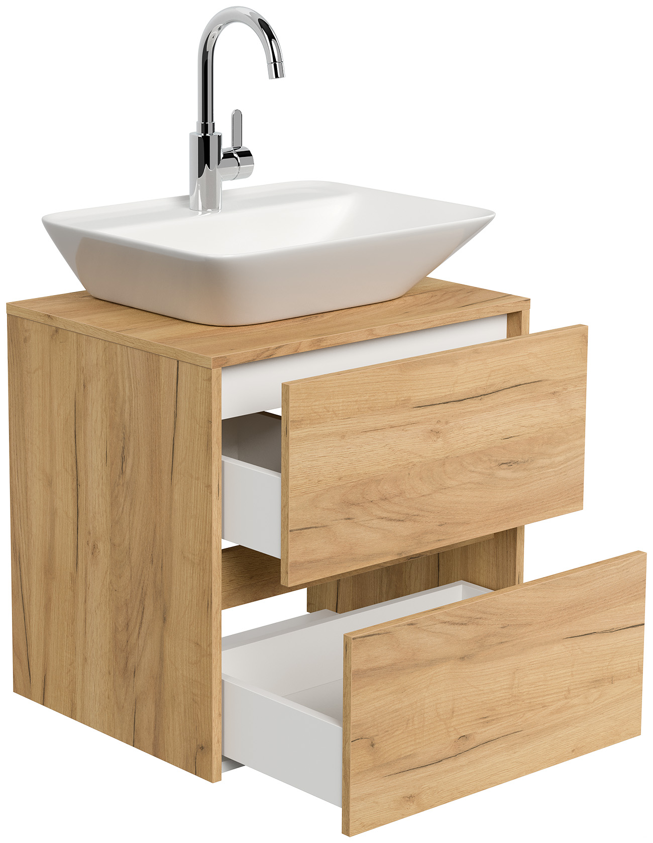 Badmöbel-Unterschrank Taifum mit 2 Softclose Schubladen (B/H/T) 59,5/56,9/46 cmKeramik Aufsatzwaschbecken (B/H/T) 55 x 13,4 x 42,5 cm