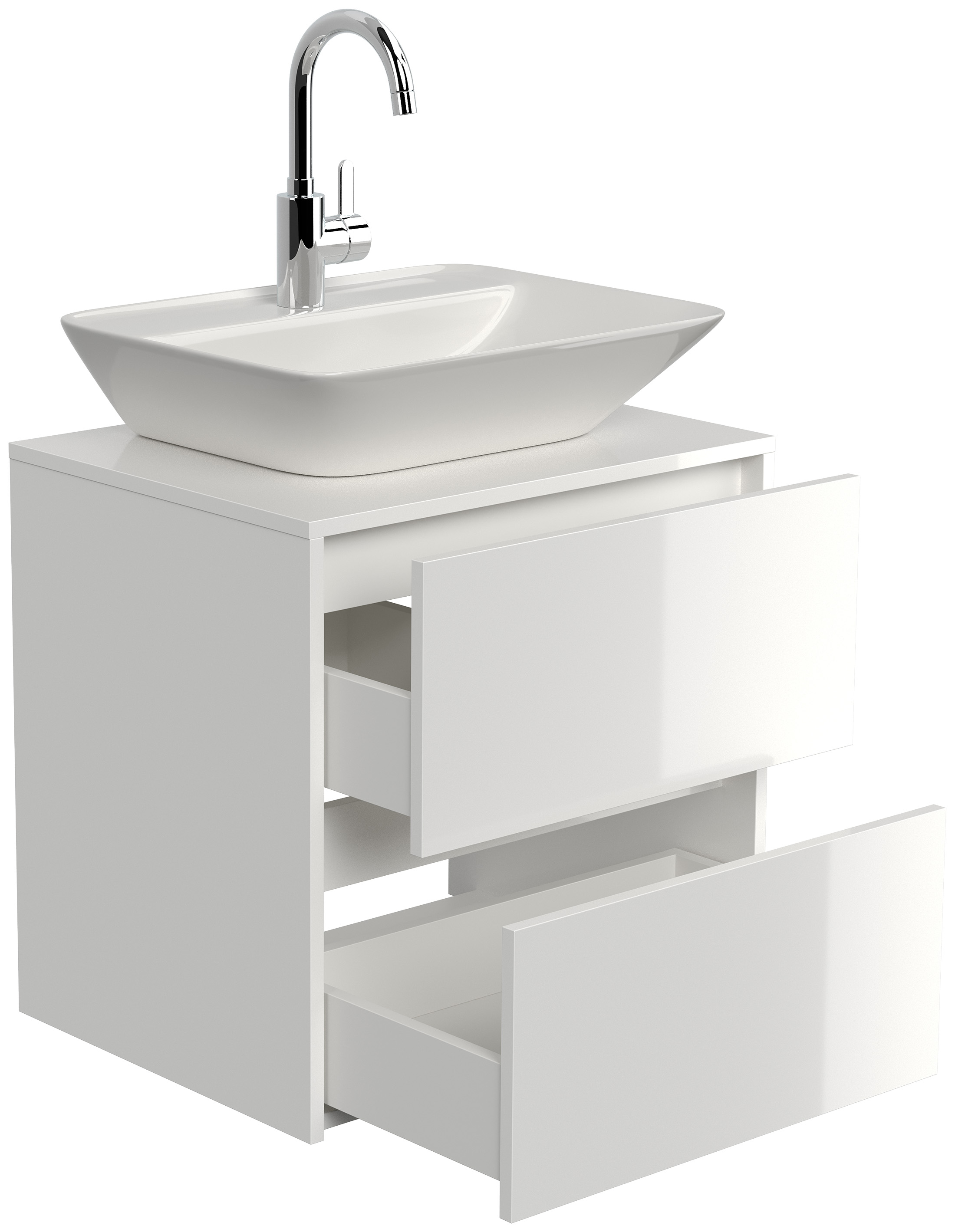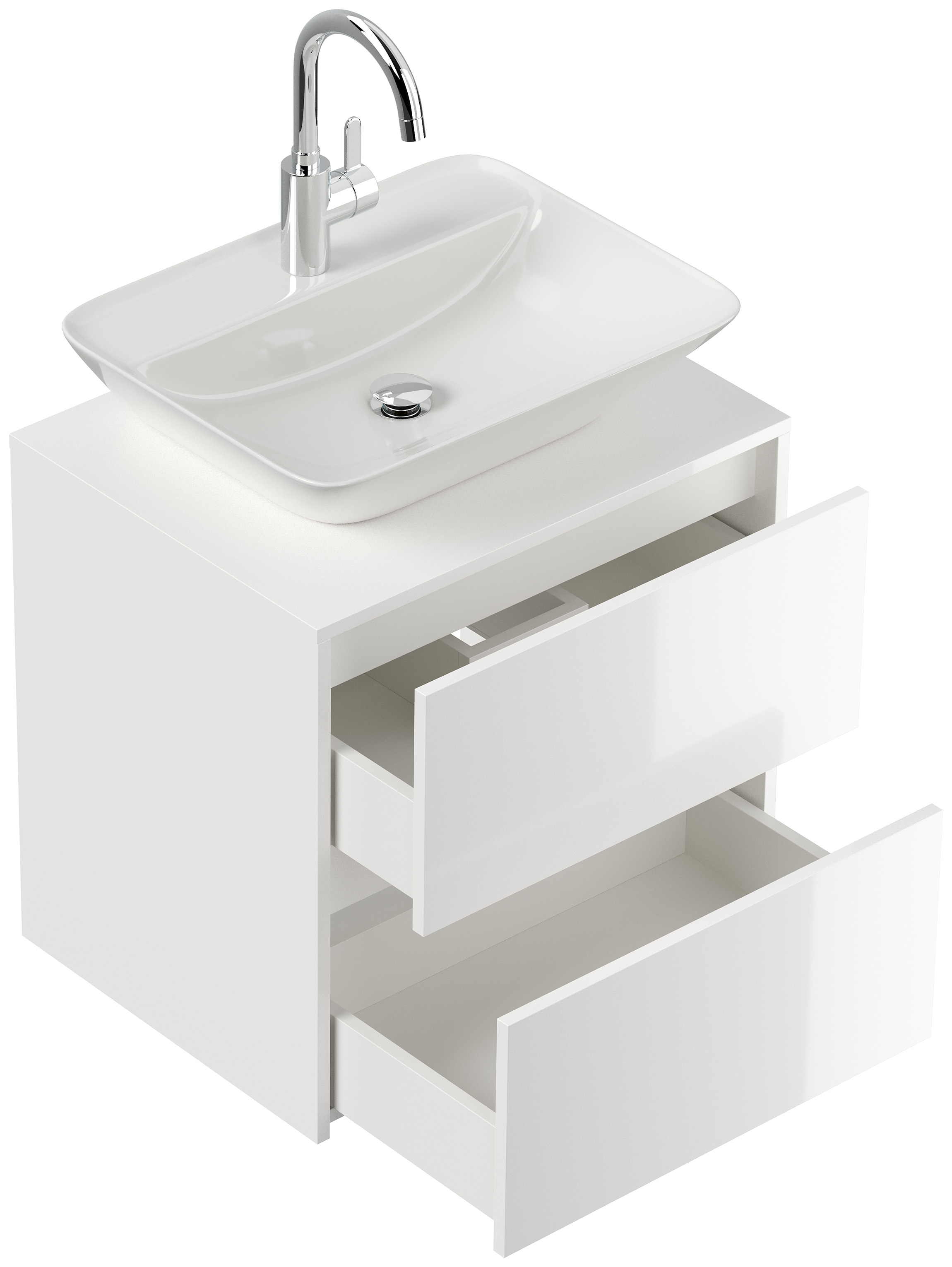 Badmöbel Taifun 60cm mit modernem Aufsatzwaschbecken weiß Hgl