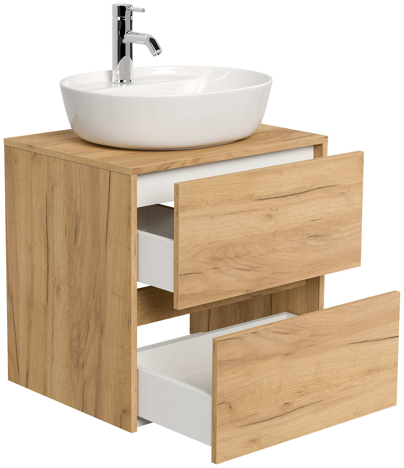 Badmöbel-Unterschrank Taifum mit 2 Softclose Schubladen (B/H/T) 59,5/56,9/46 cmKeramik Aufsatzwaschbecken (B/H/T) 52 x 14,6 x 40 cm