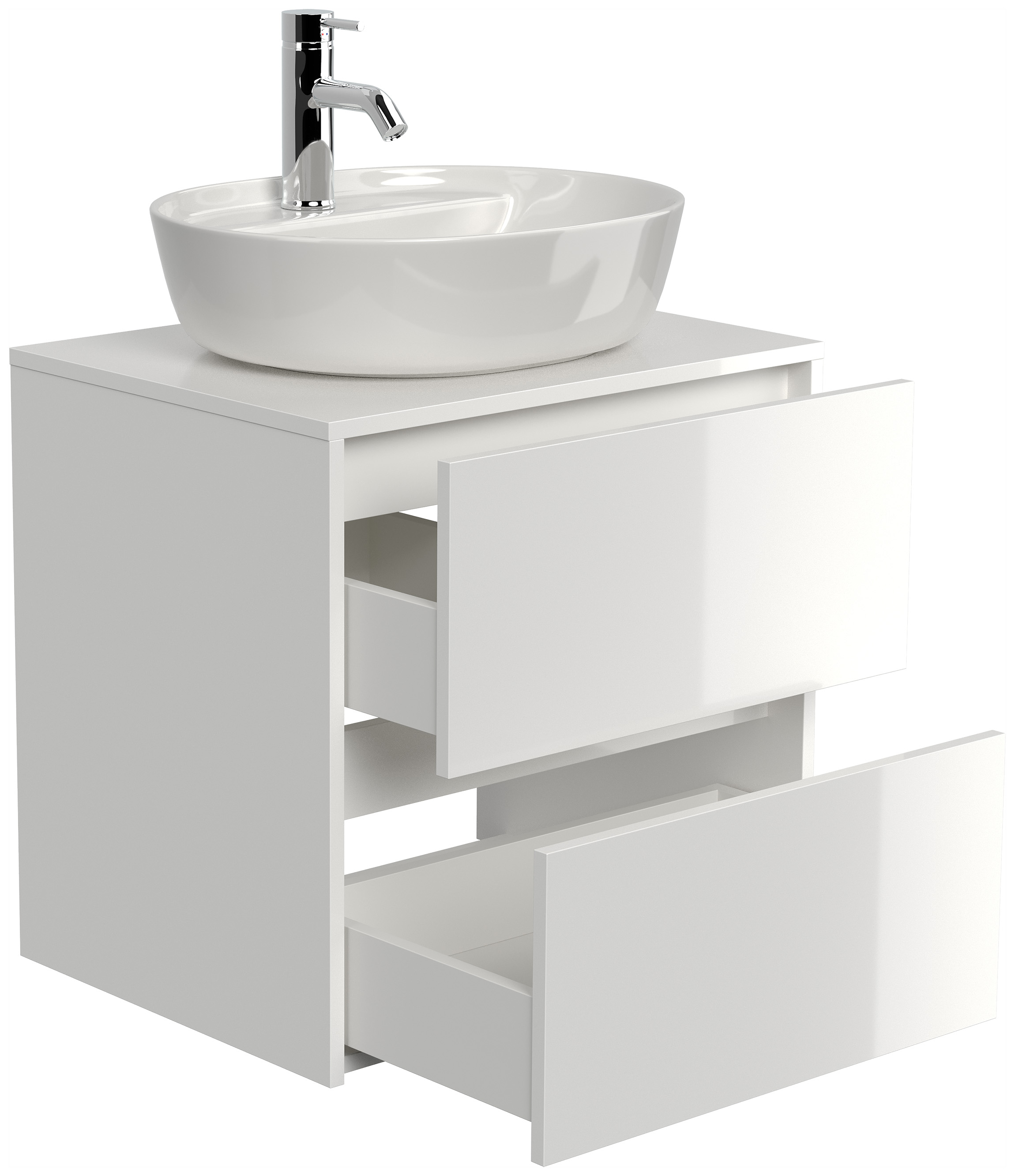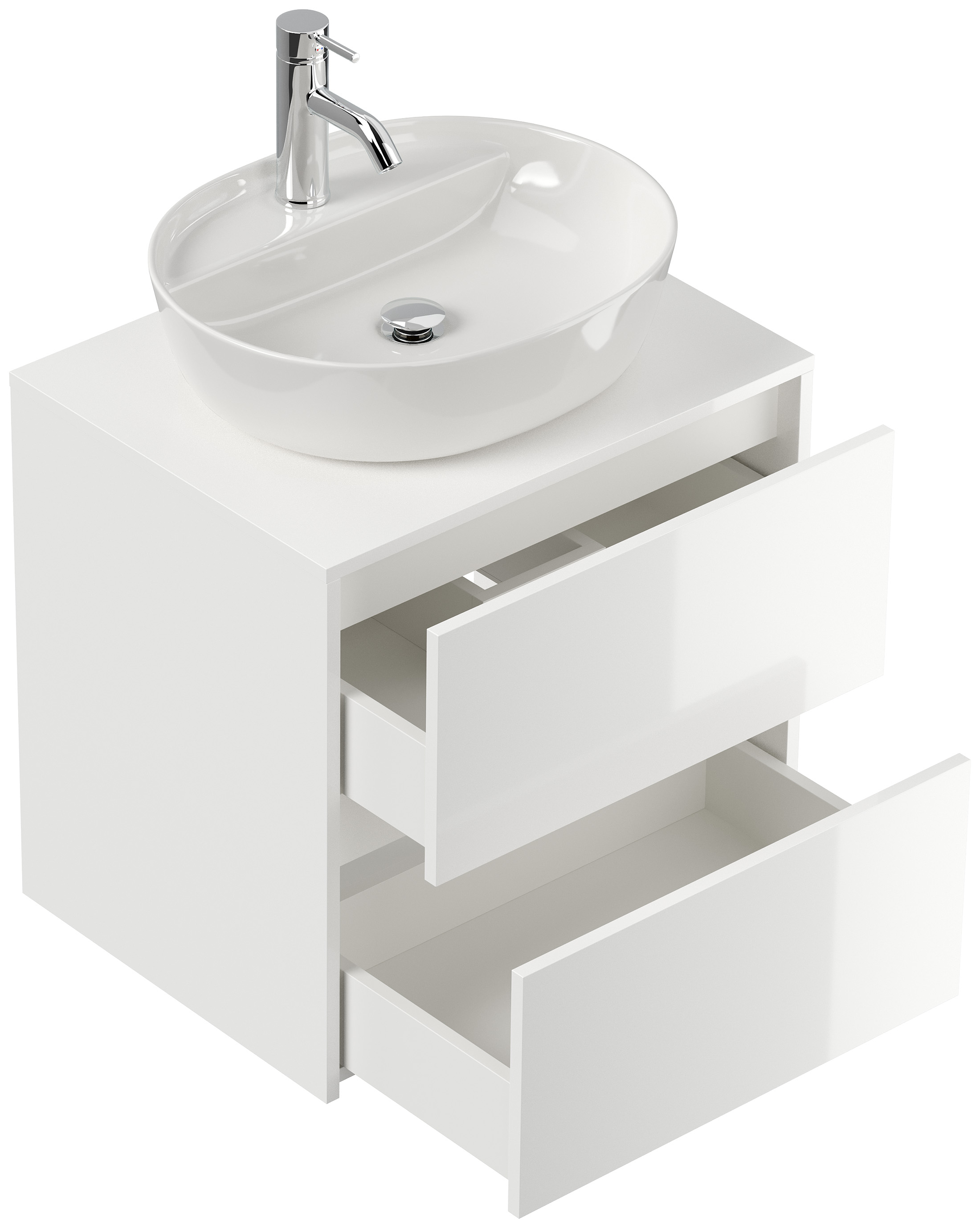 Badmöbel Taifun 60cm mit ovalem Aufsatzwaschbecken weiß Hgl